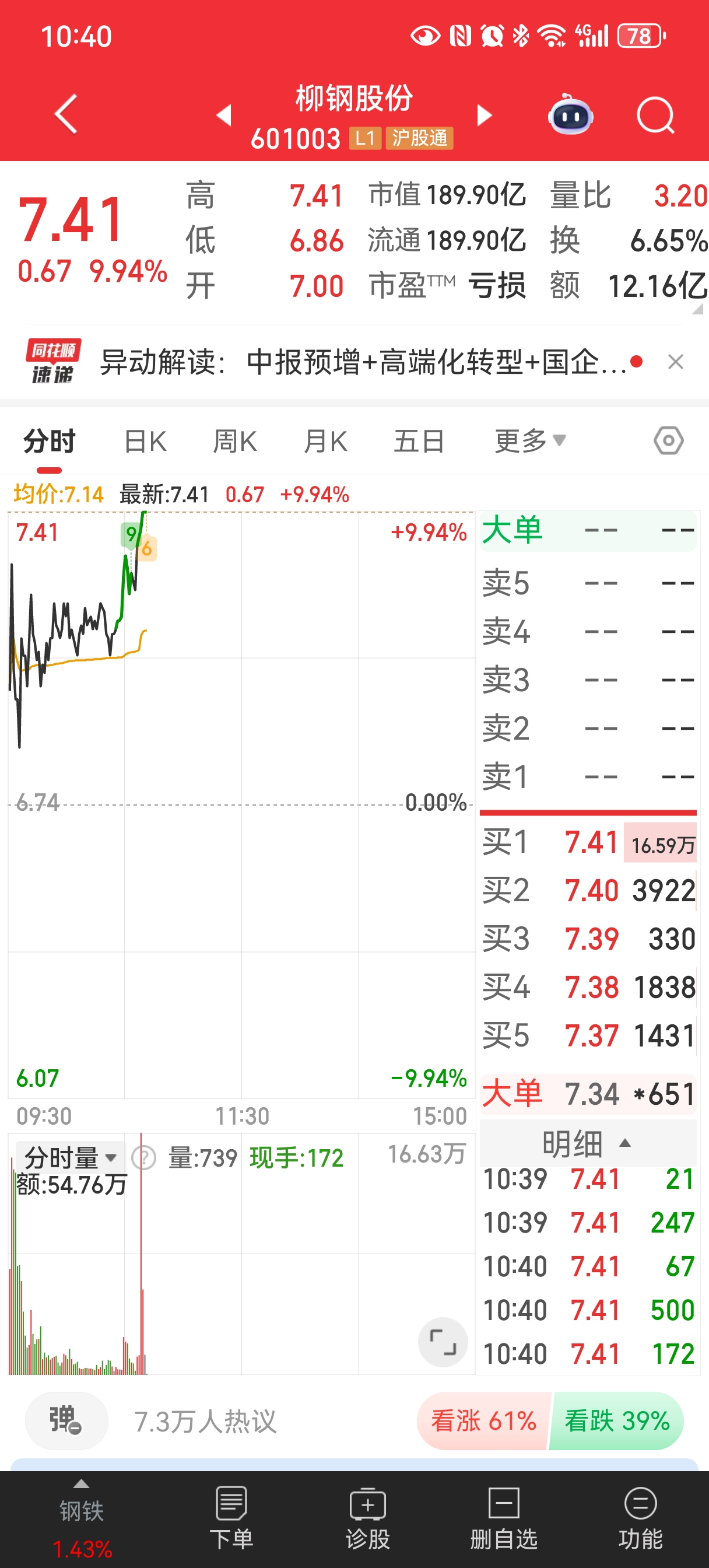 2025年第41个涨停板,柳钢股份涨停板截图留影纪念!