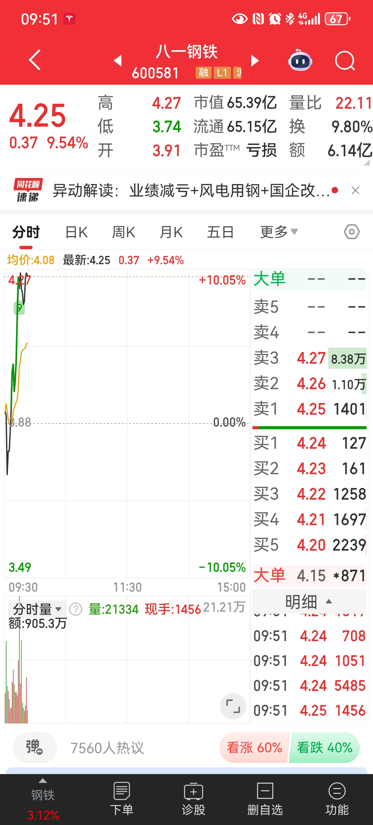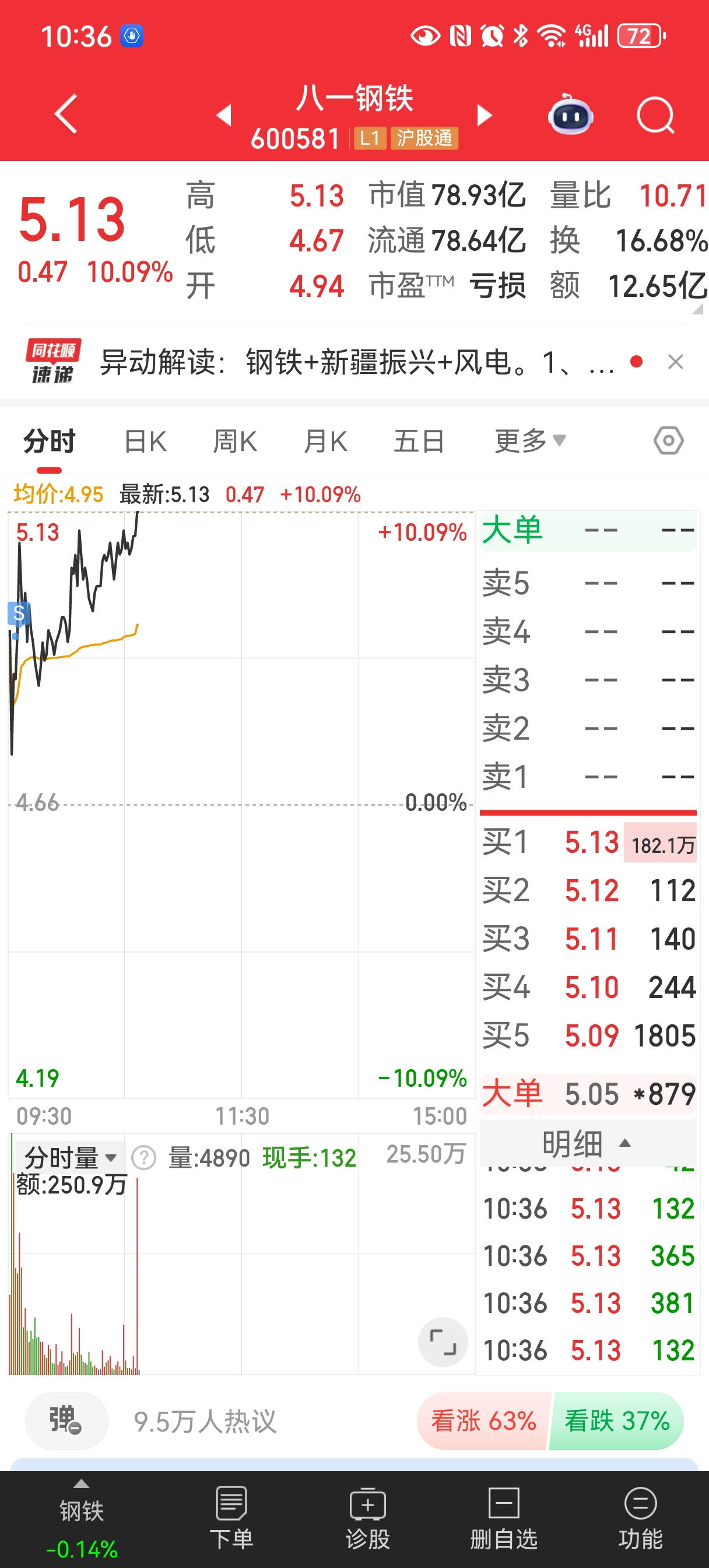 2025年第51个涨停板,八一钢铁,涨停板截图留影纪念!