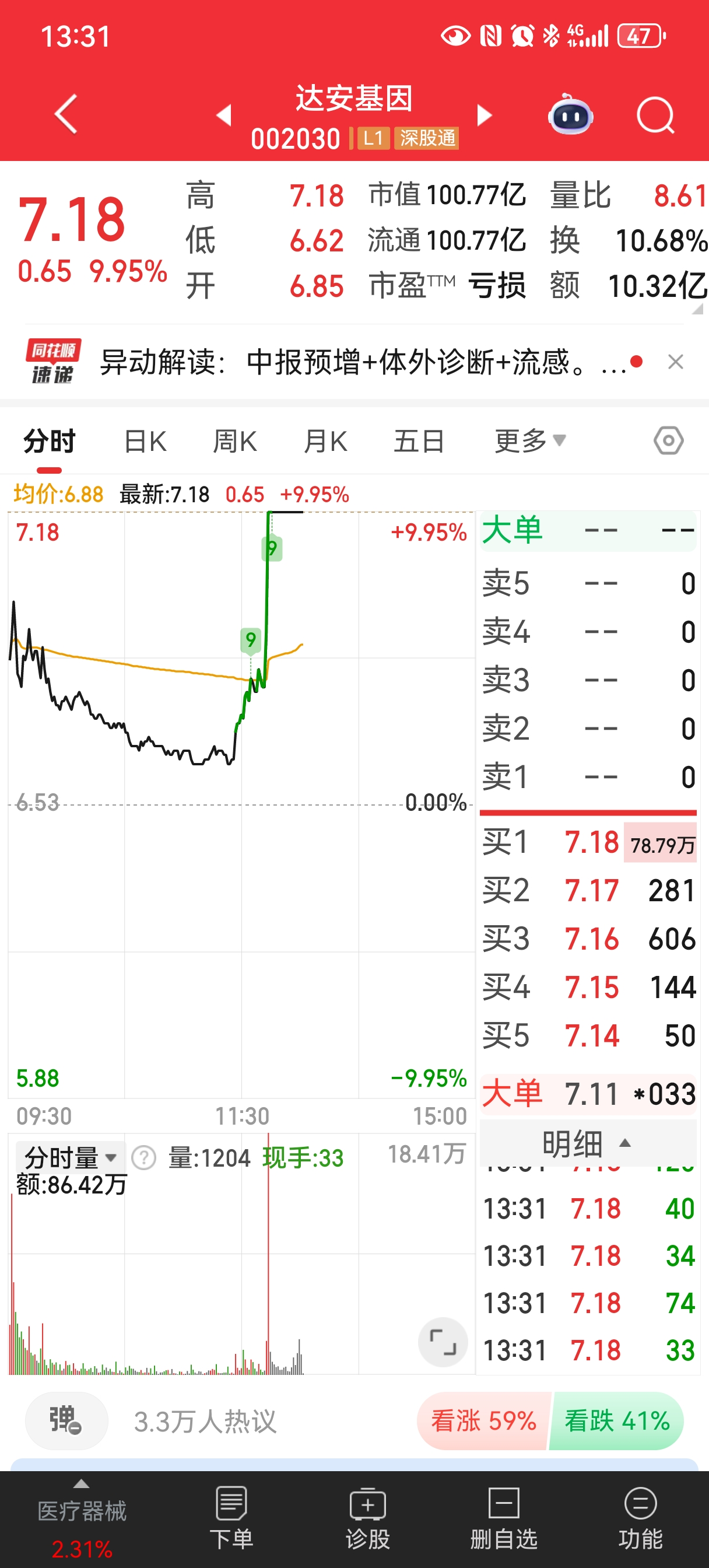 2025年第50个涨停板,达安基因涨停板截图留影纪念!