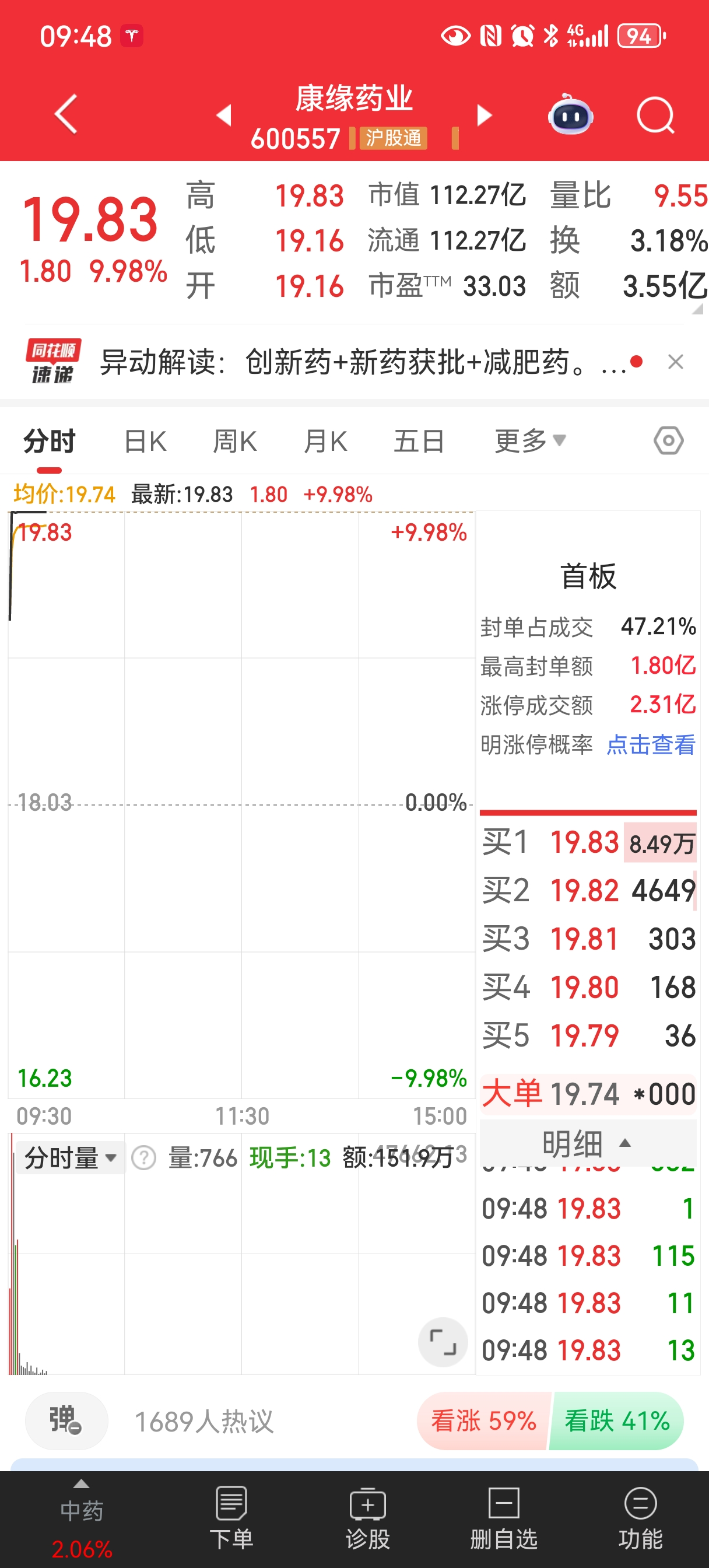2025年第57个涨停板,康缘药业,涨停板截图留影纪念!