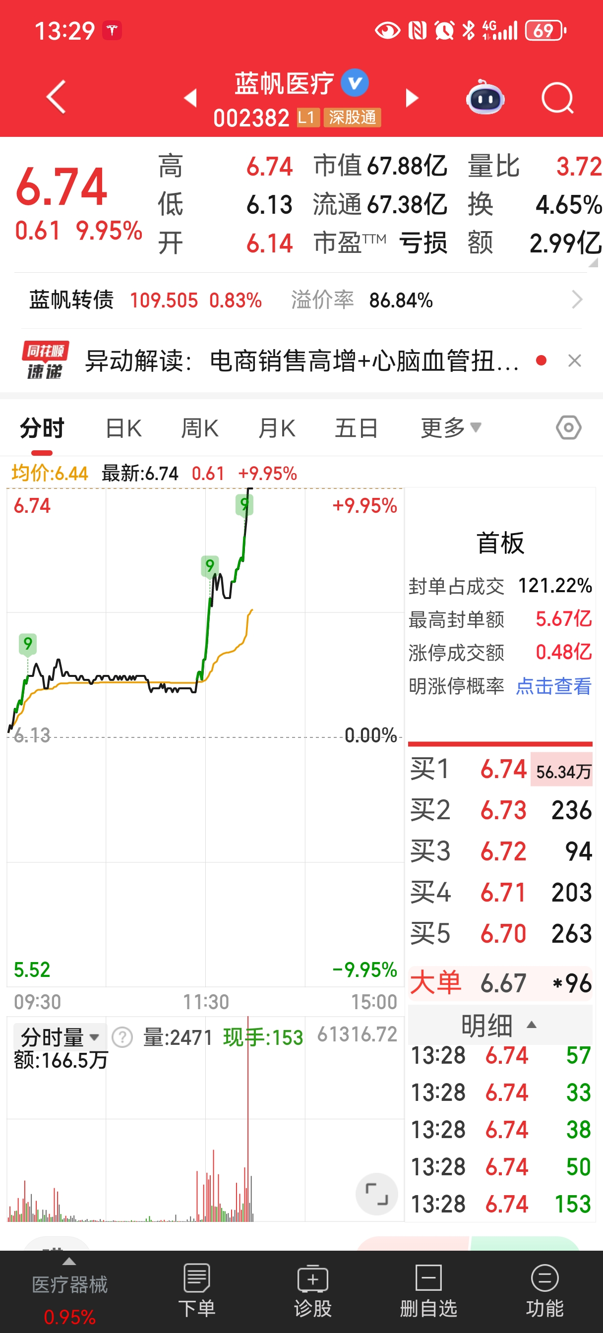 2025年第58个涨停板,蓝帆医疗,涨停板截图留影纪念!