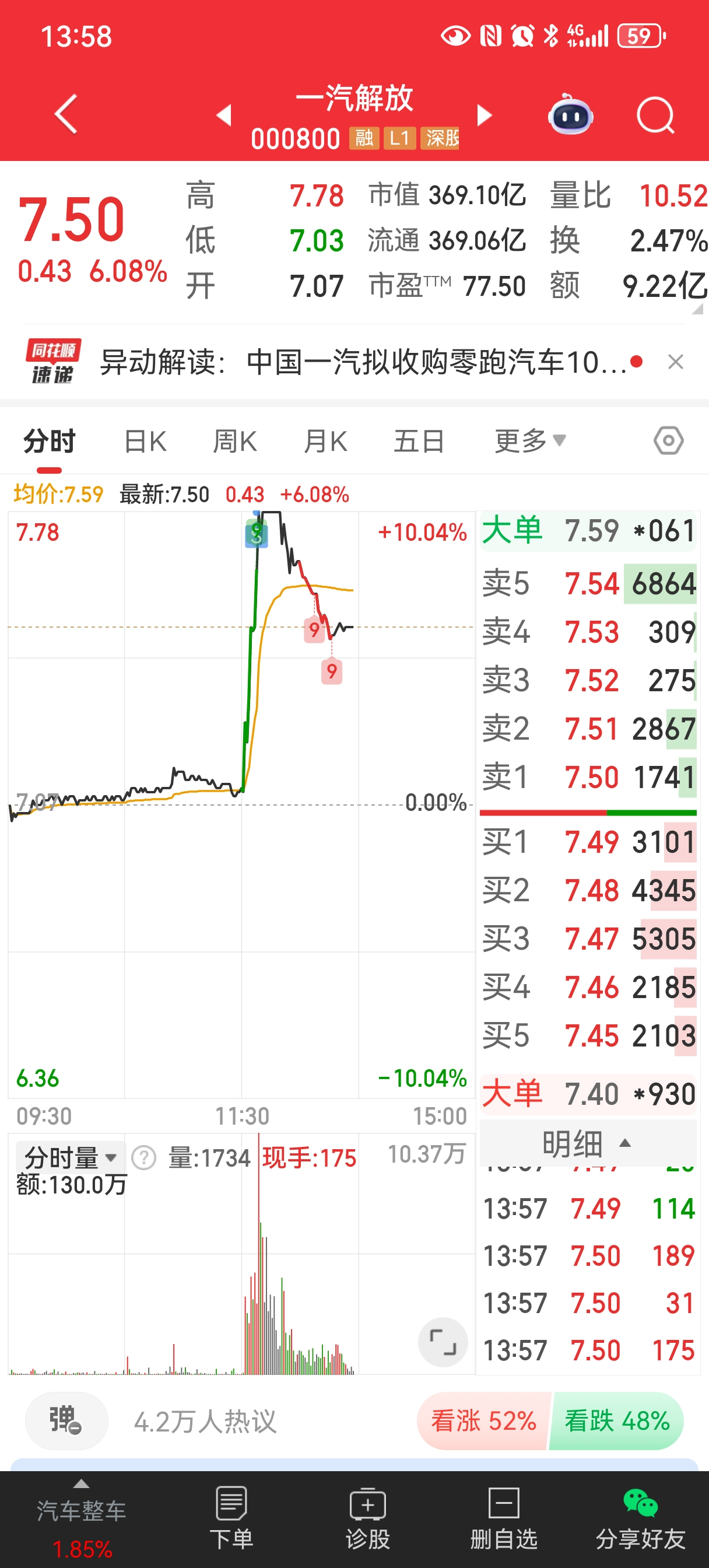 2025年第59个涨停板,一汽解放,涨停板截图留影纪念!