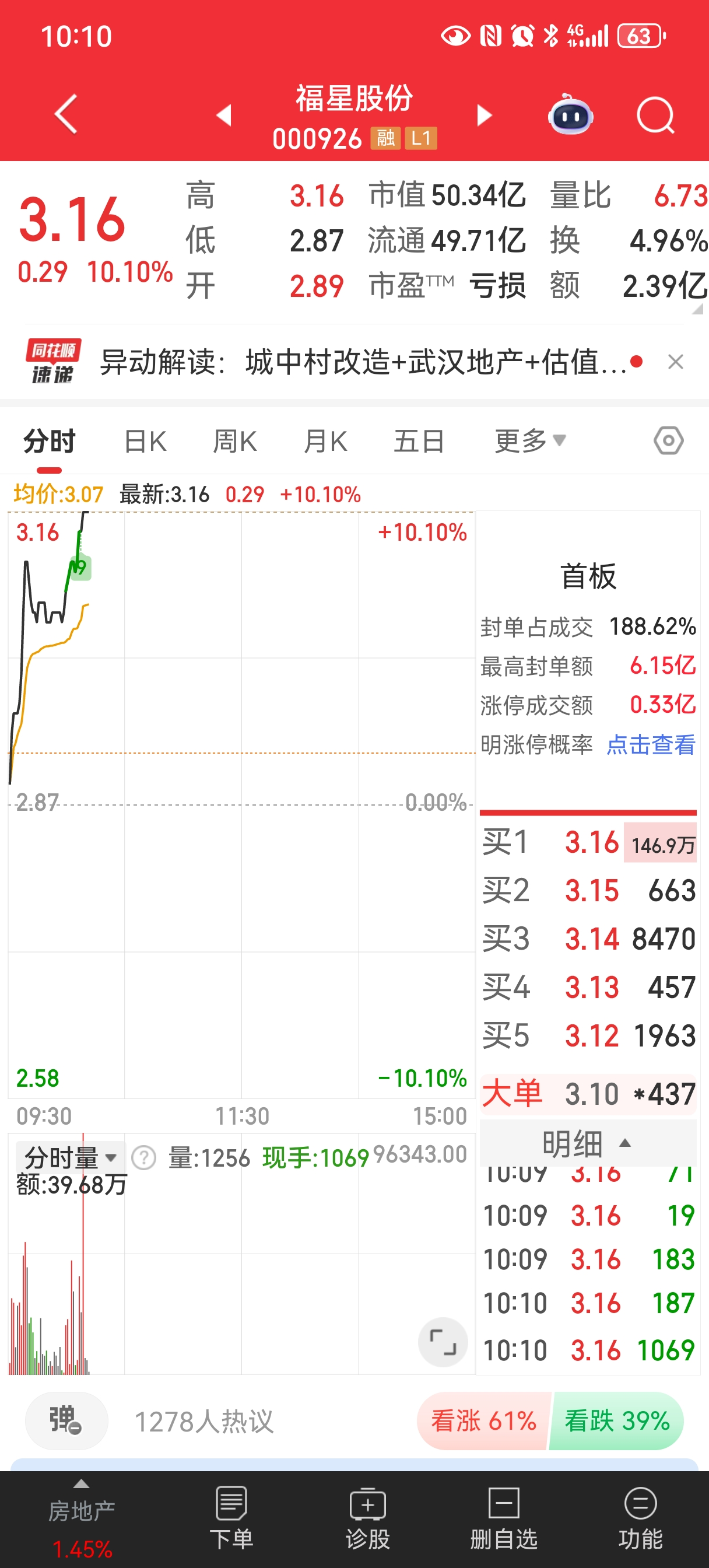 2025年第175涨停板,福星股份涨停截图留影纪念!