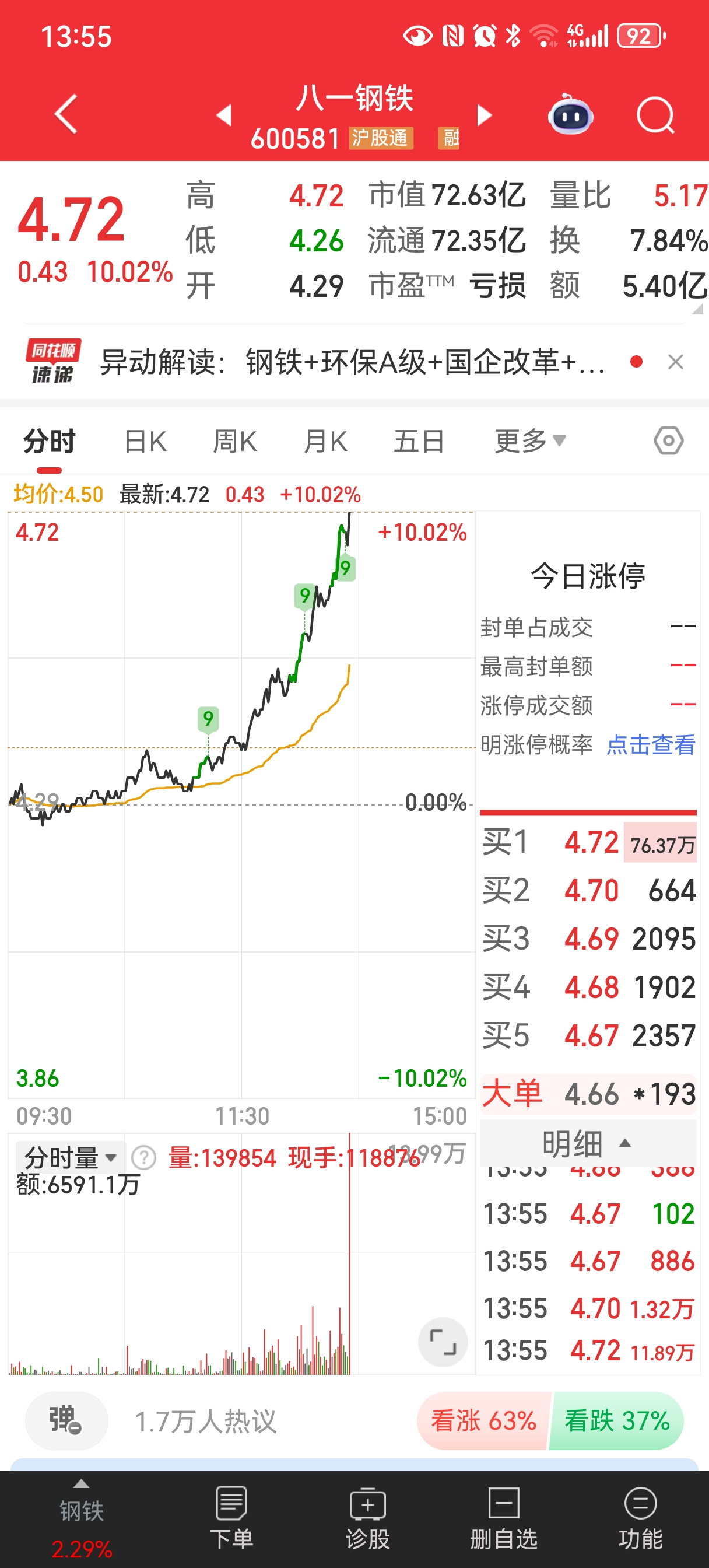 2025年第55个涨停板,八一钢铁,涨停板截图留影纪念!