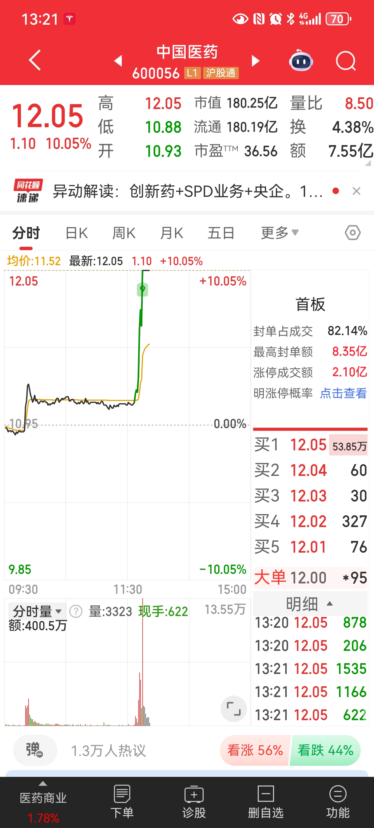 2025年第63个涨停板,中国医药,涨停板截图留影纪念!
