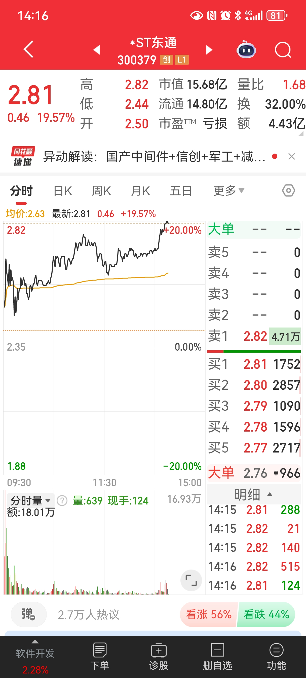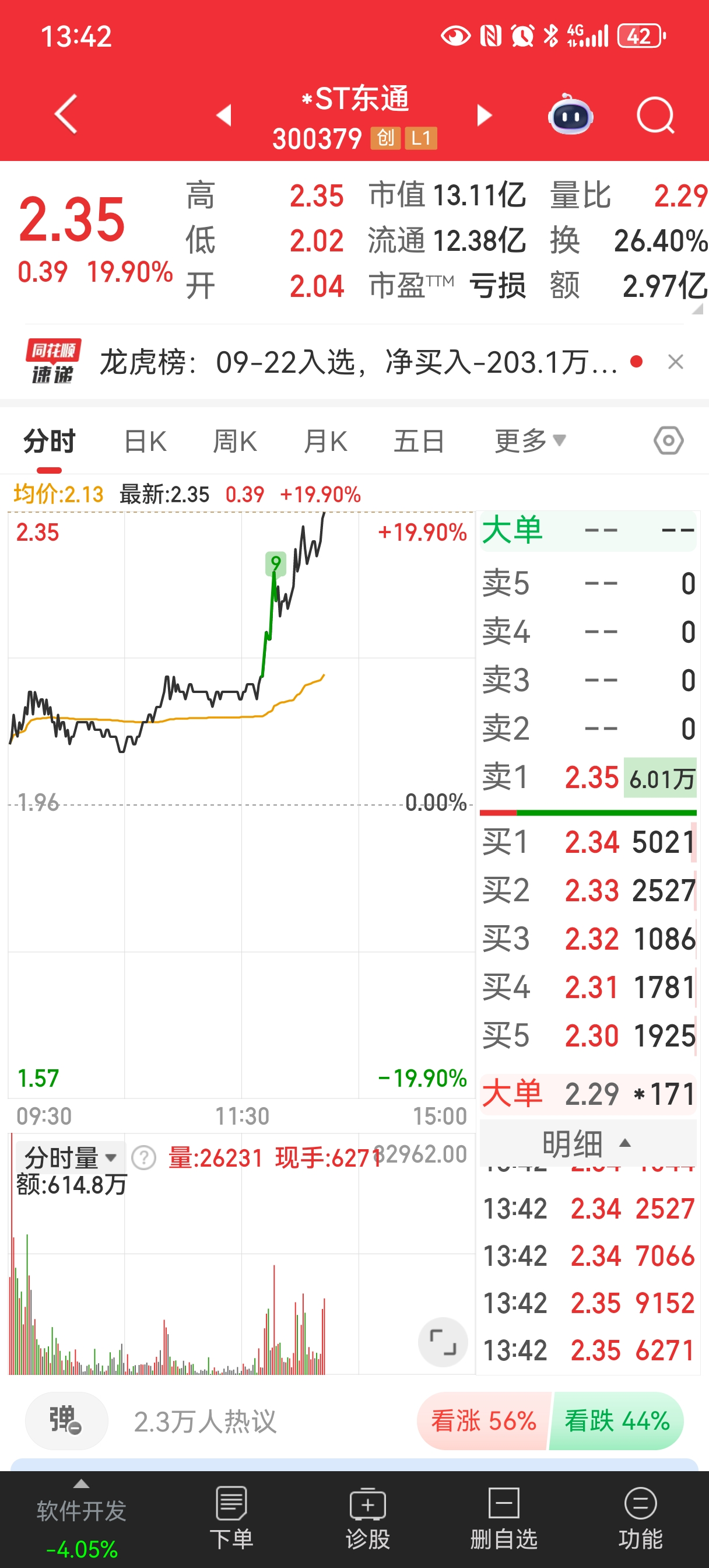 2025年第173涨停板,st东通20%涨停截图留影纪念!
