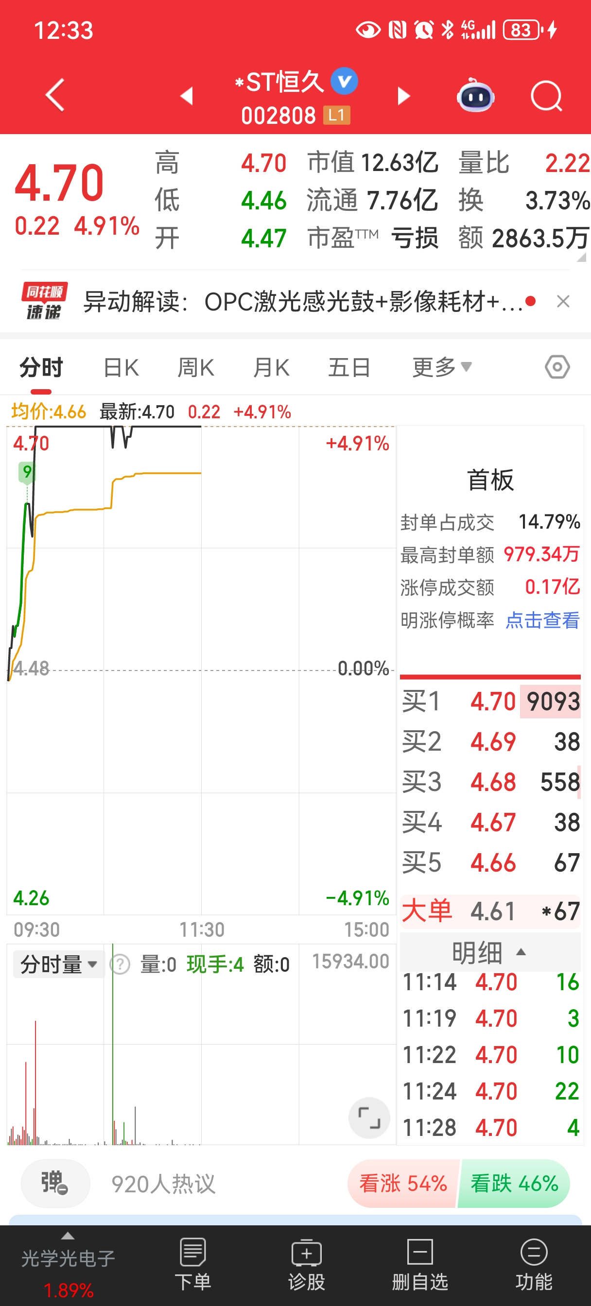 2025年第122、123个涨停板,ST万方、ST恒久截图留影纪念!