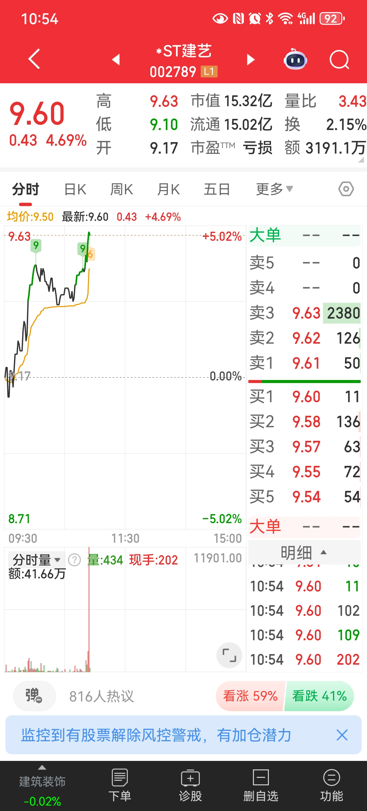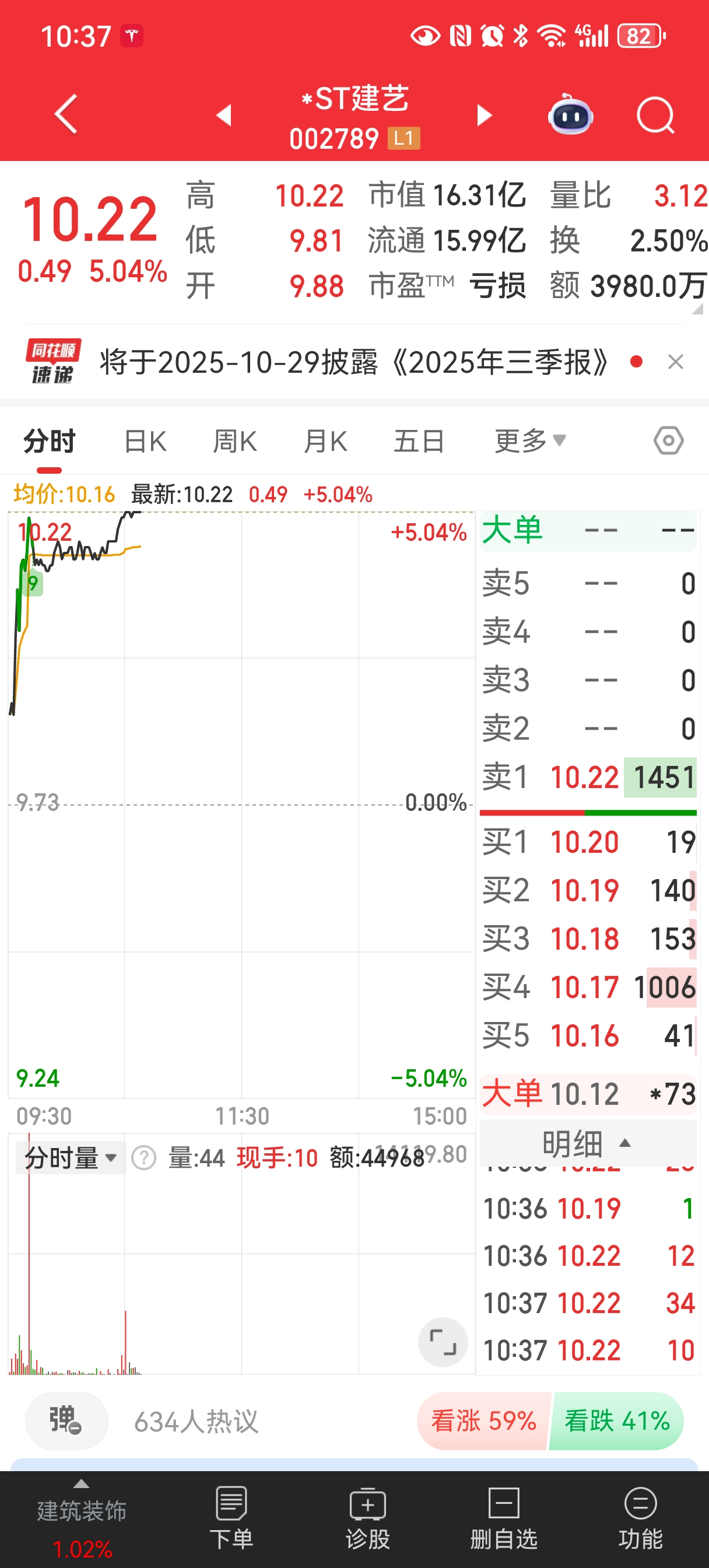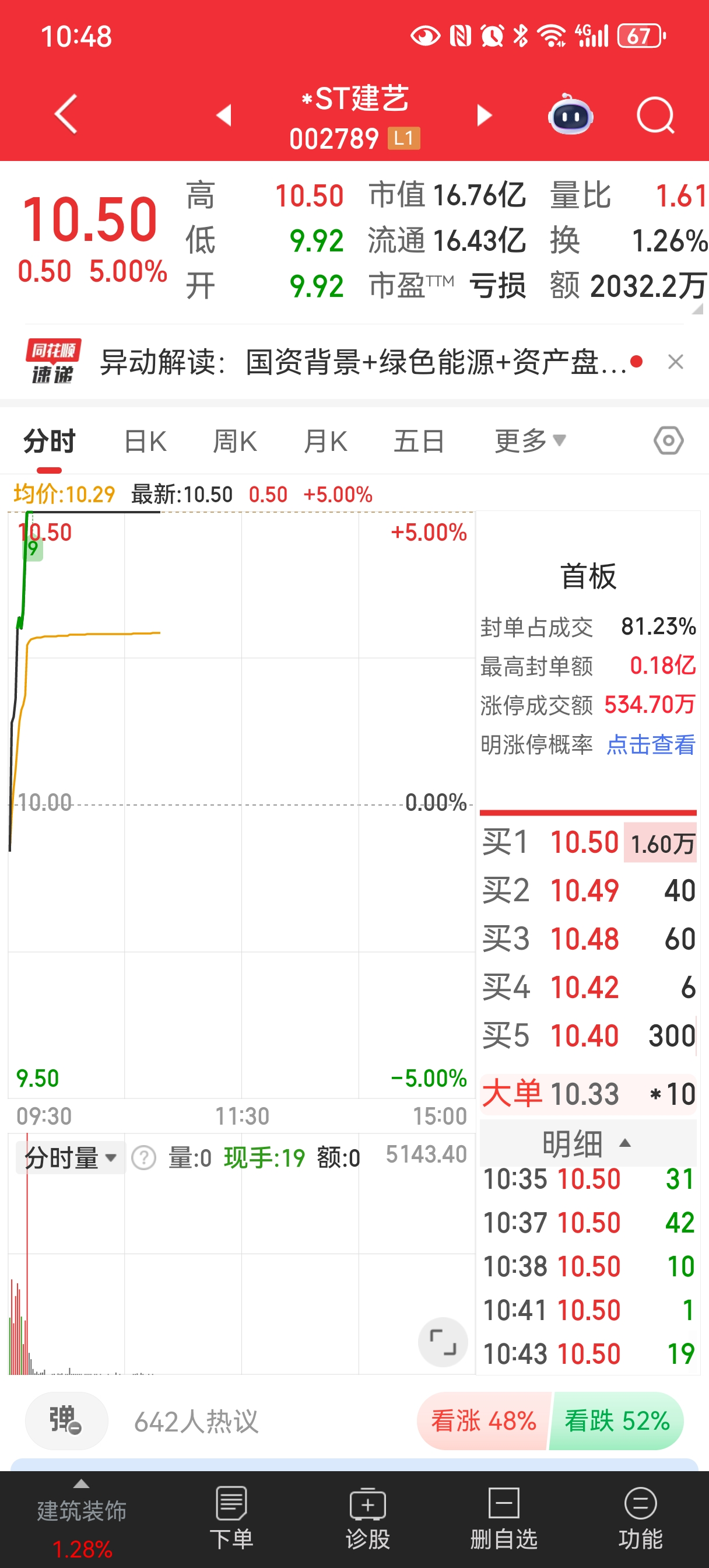 2025年第181涨停板,st建艺涨停截图留影纪念!