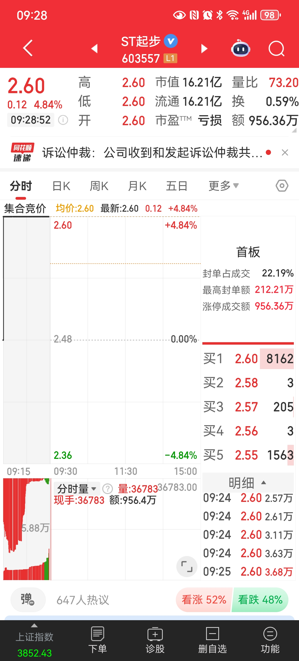 2025年第195、196涨停板,st阳光、st起步涨停截图留影纪念!