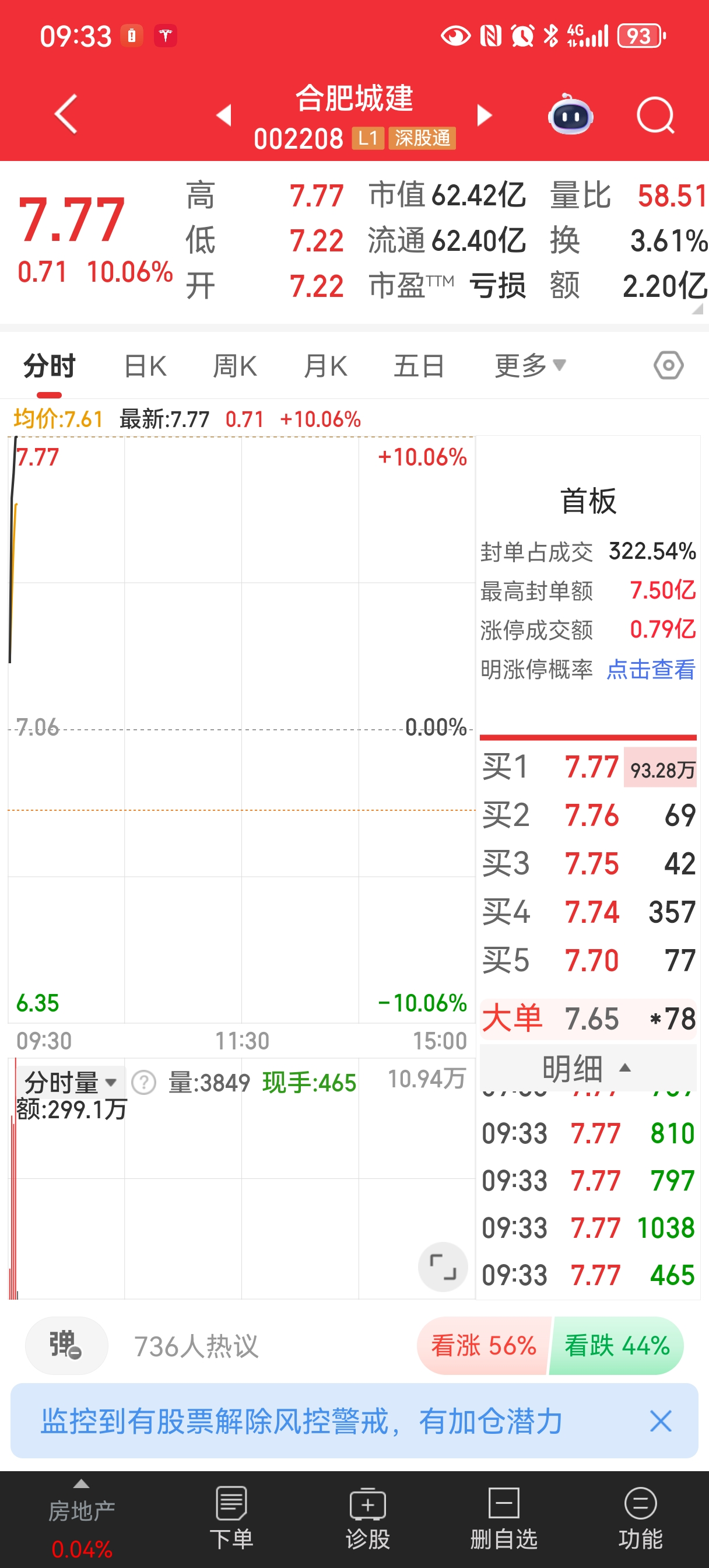 2025年第76个涨停板,合肥城建涨停板截图留影纪念!