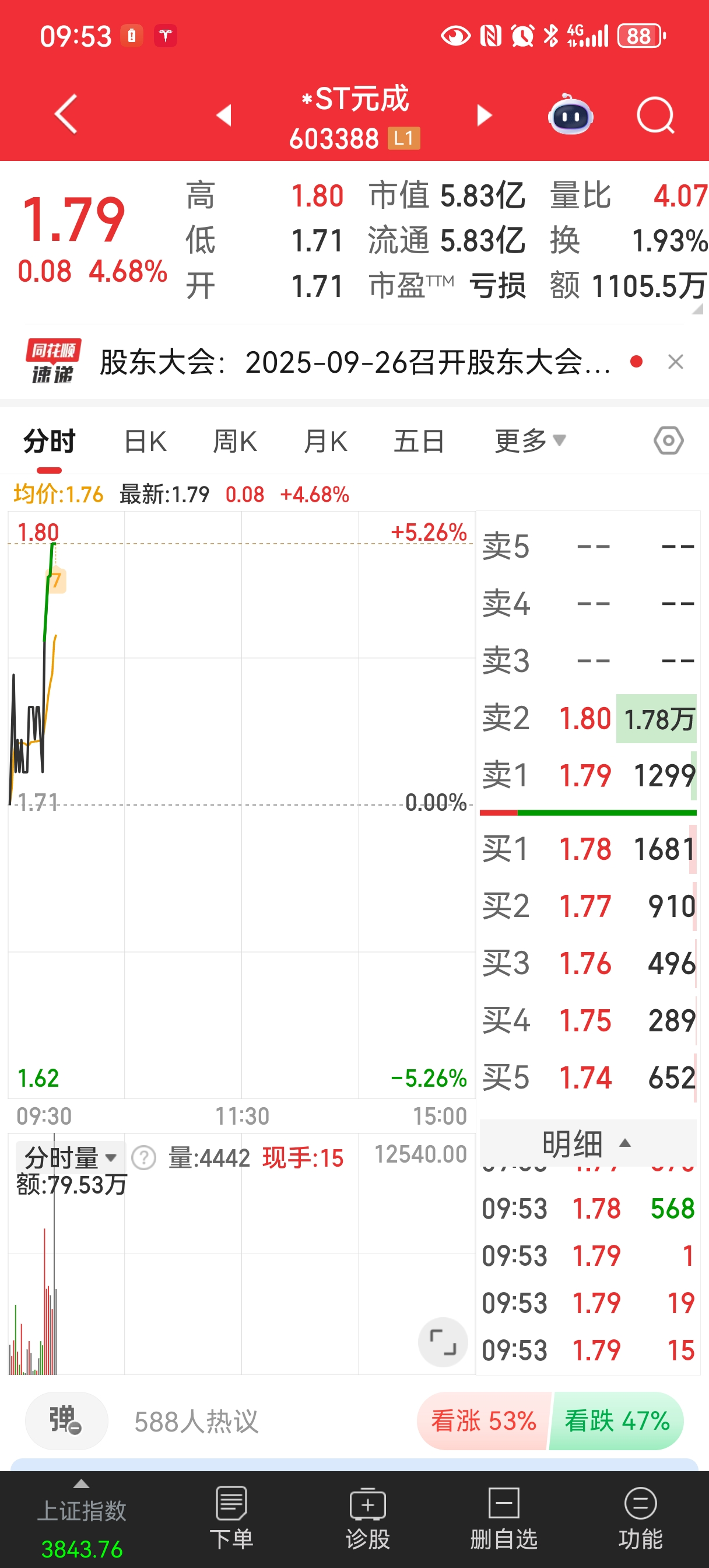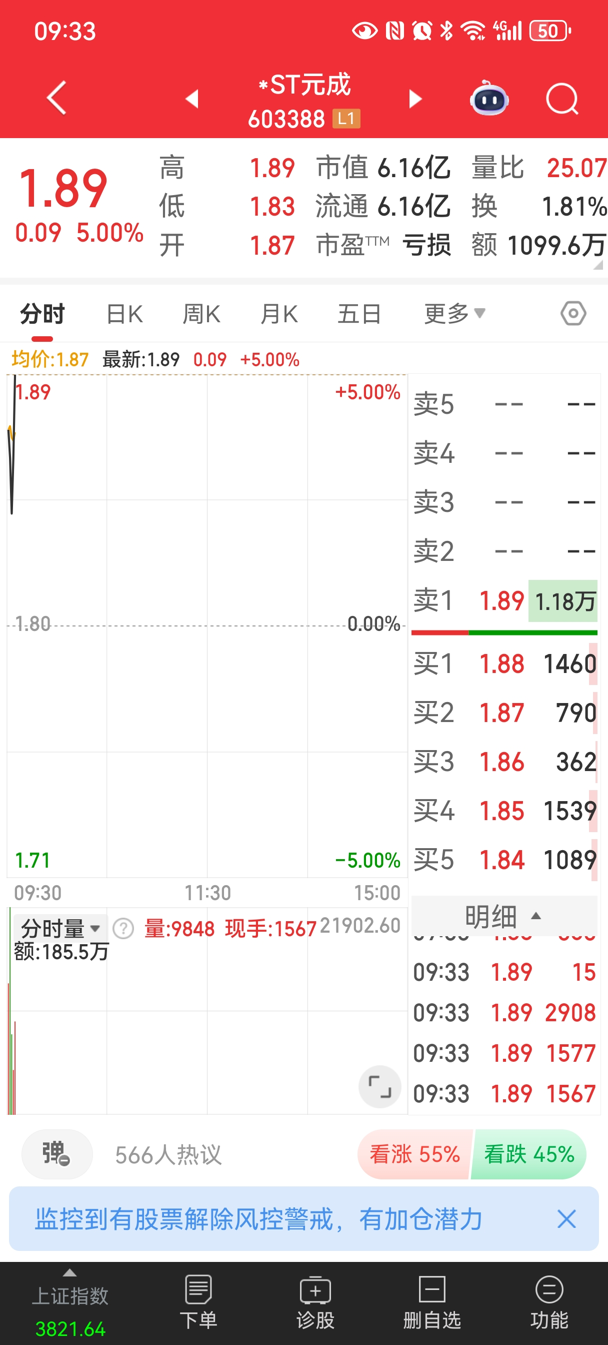 2025年第72个涨停板,ST元成涨停板截图留影纪念!