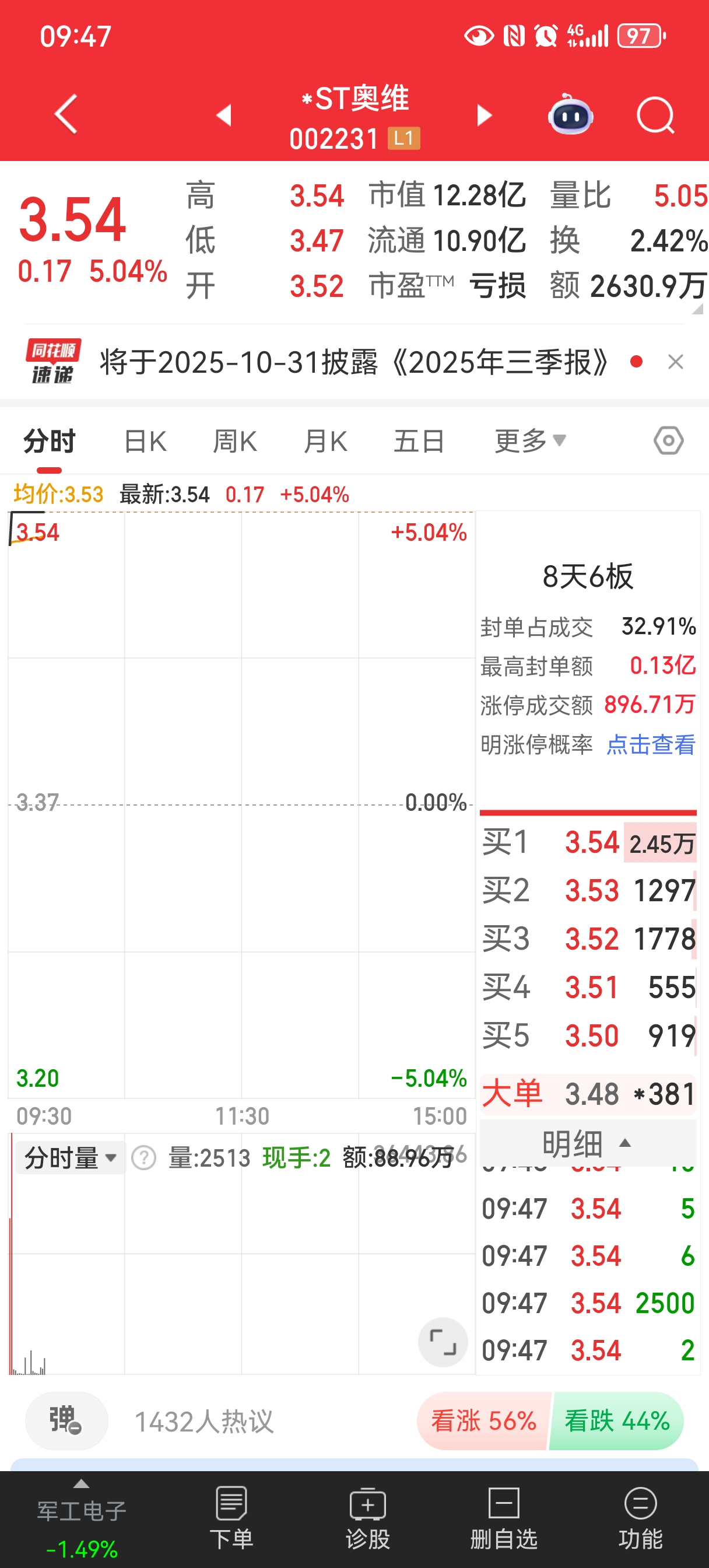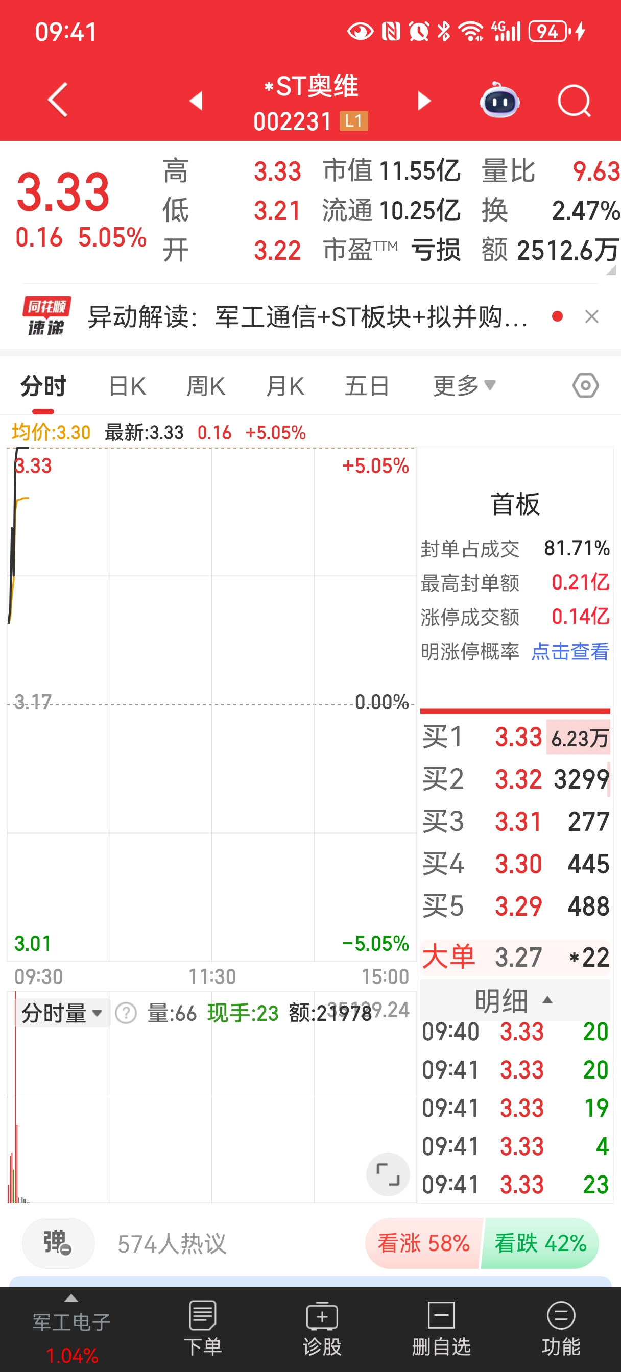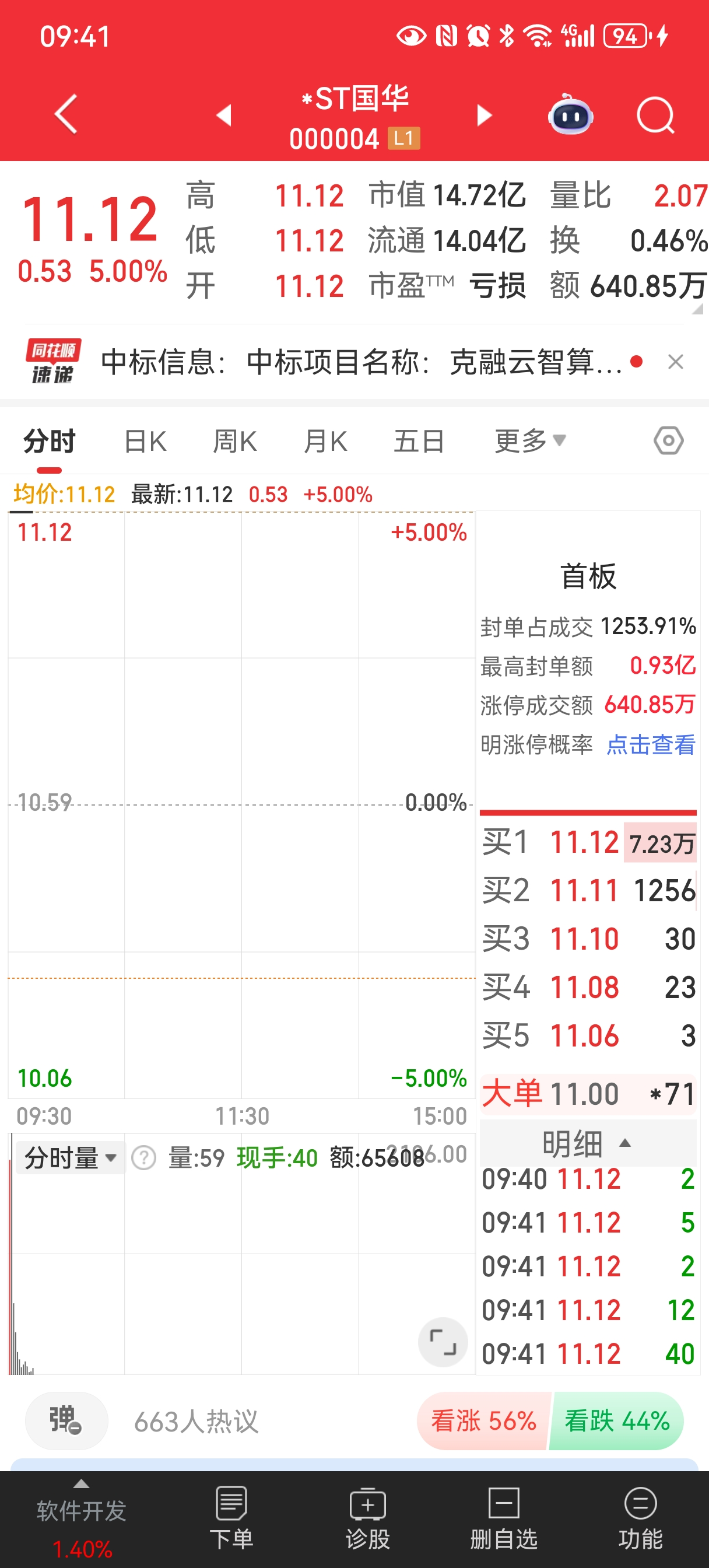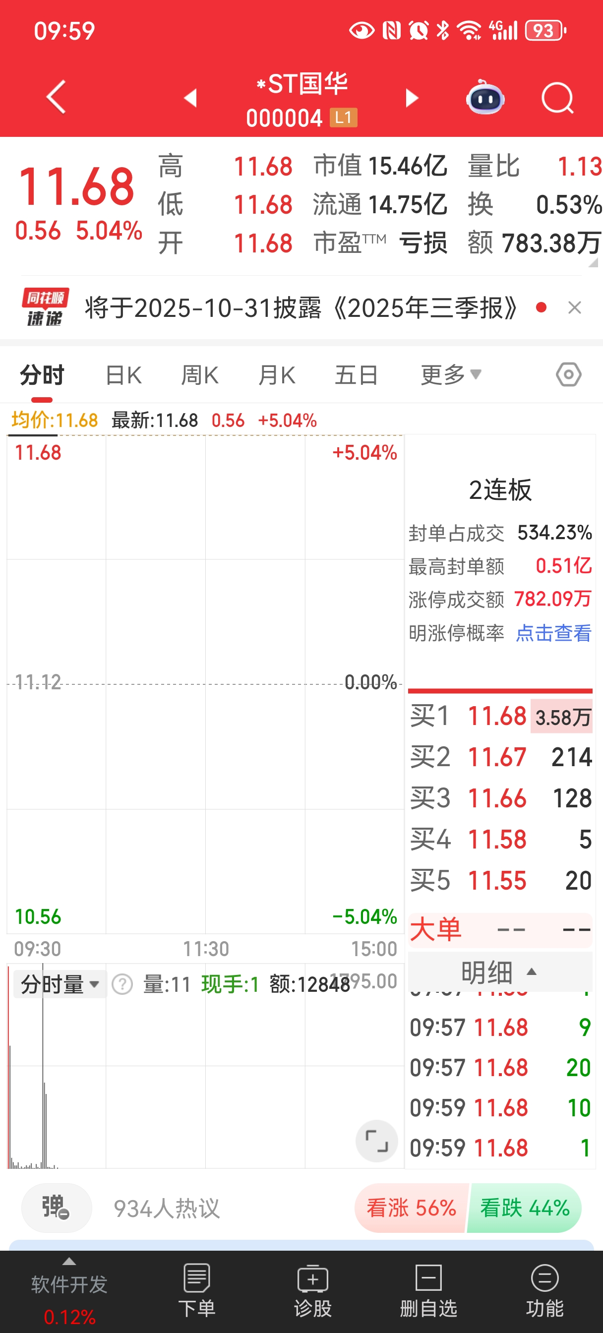 2025年第74、75个涨停板,ST国华、ST奥维涨停板截图留影纪念!