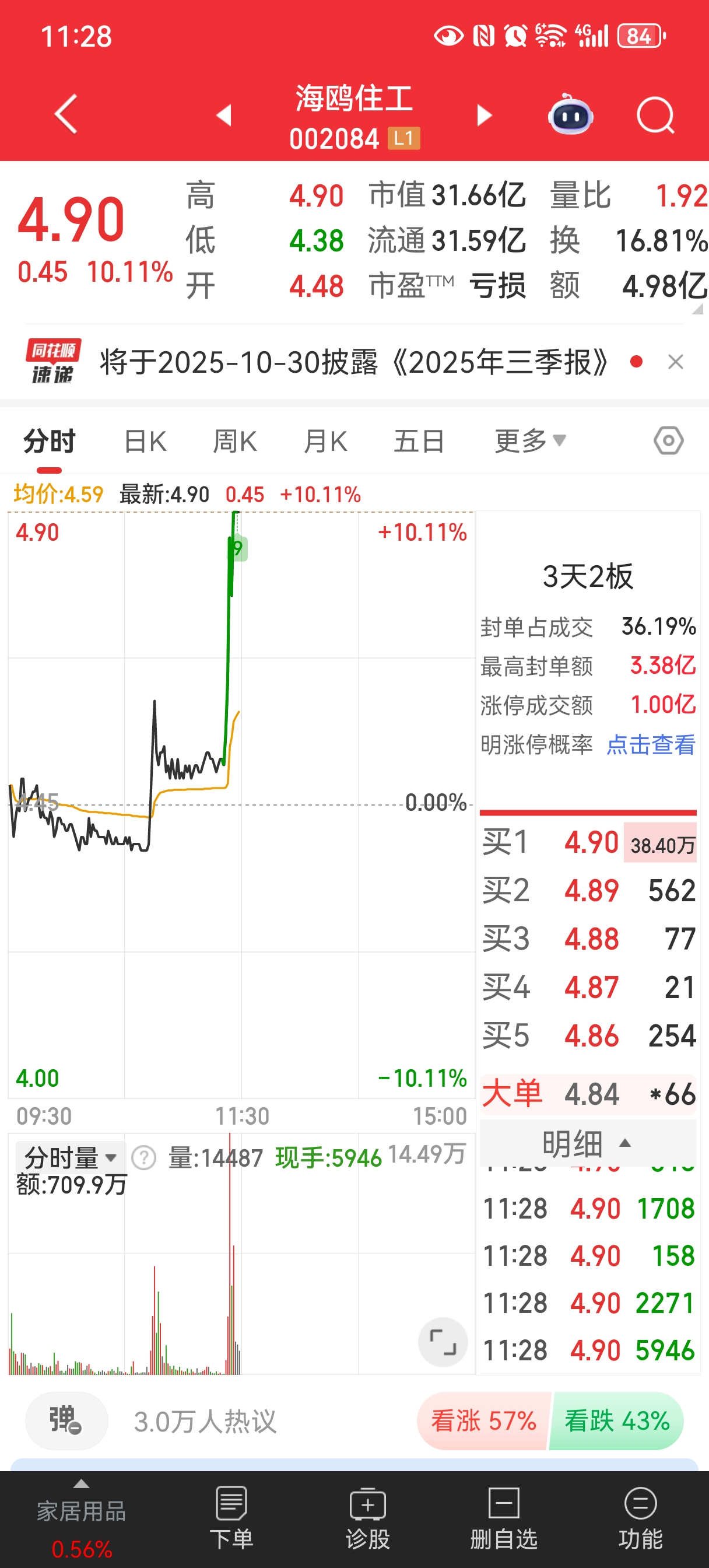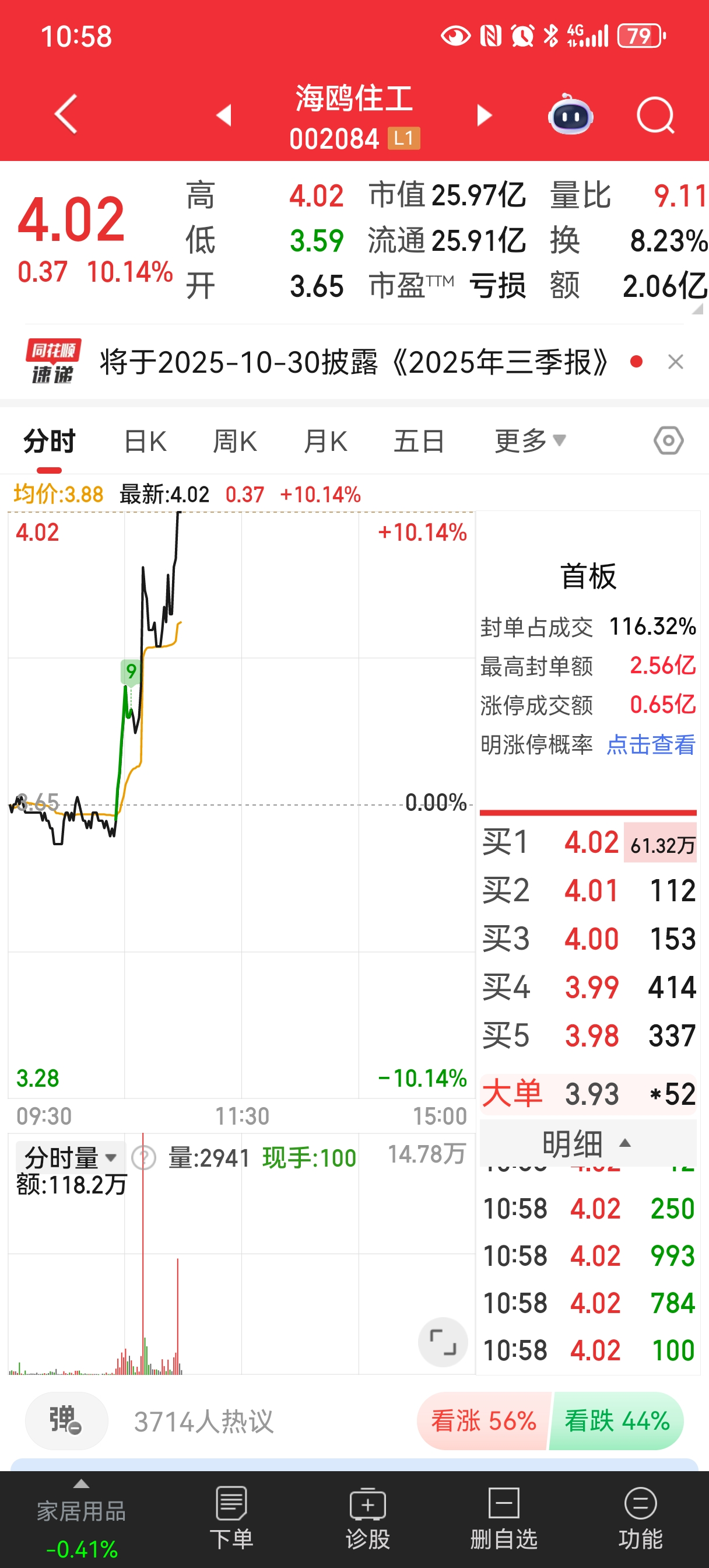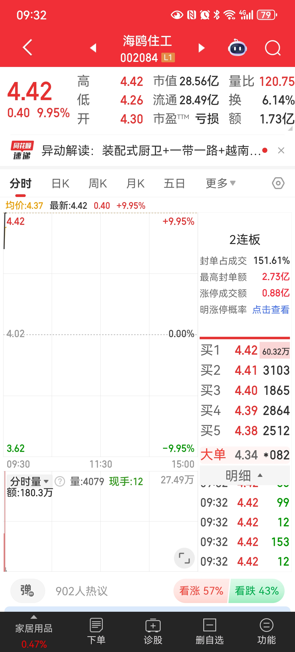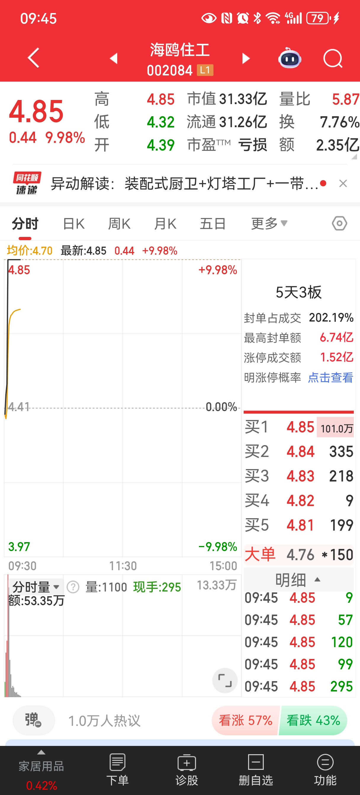 2025年第79个涨停板,海鸥住工截图留影纪念!