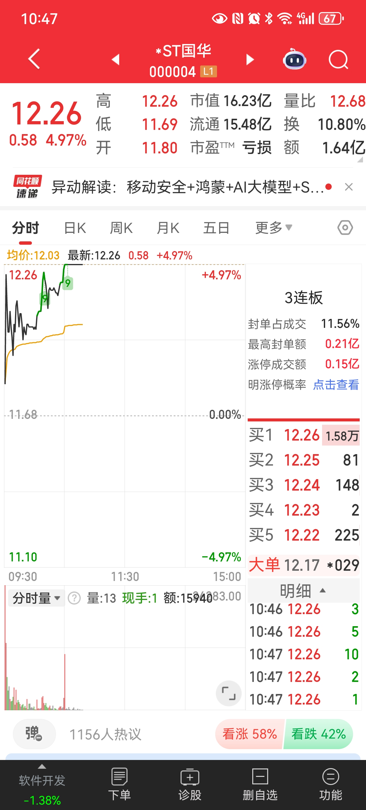 2025年第81,82个涨停板,ST国华、ST建艺截图留影纪念!