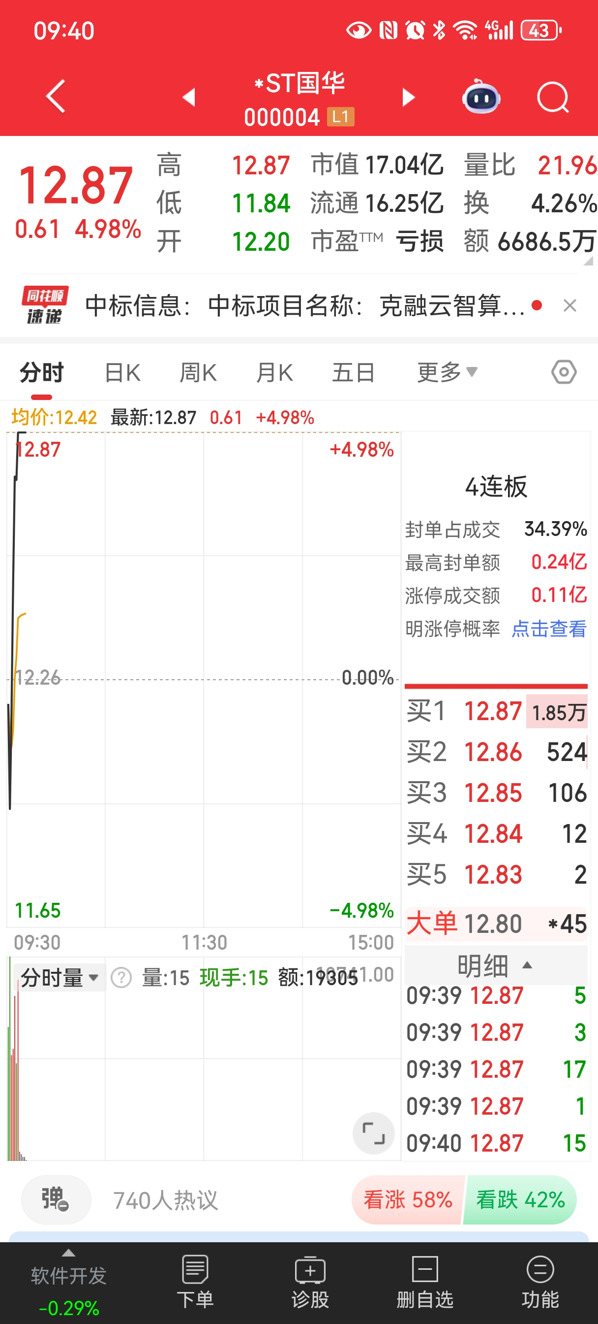 2025年第176涨停板,st华嵘涨停截图留影纪念!