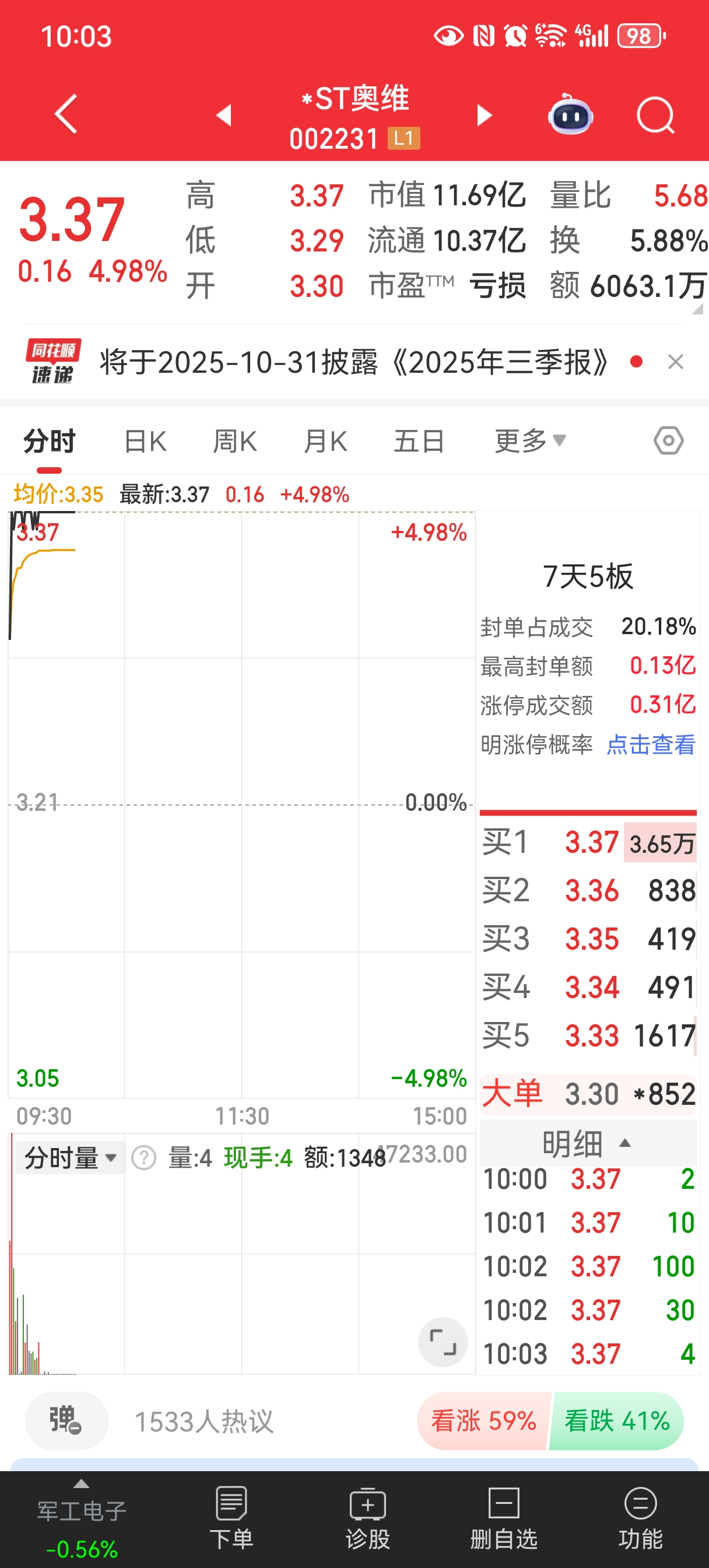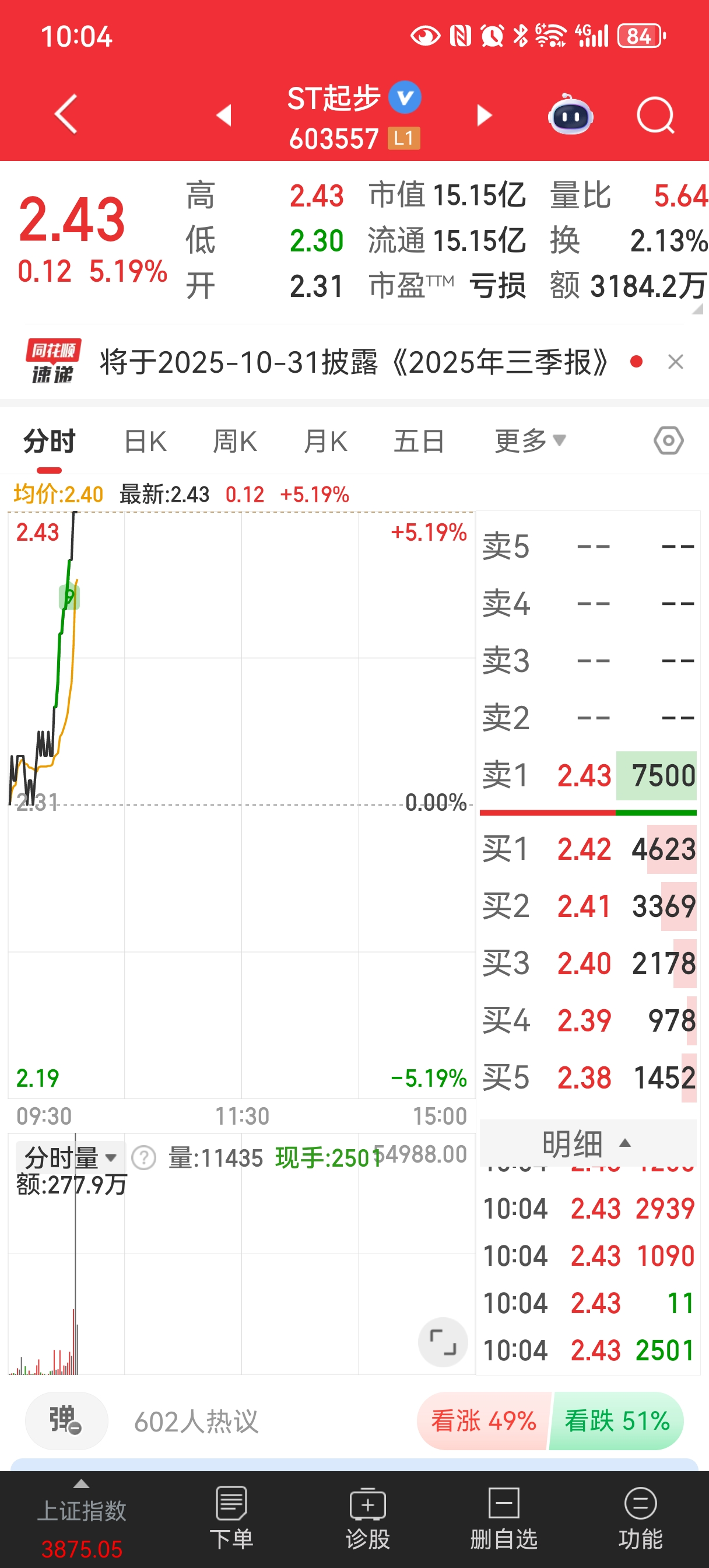 2025年第177涨停板,st熊猫涨停截图留影纪念!