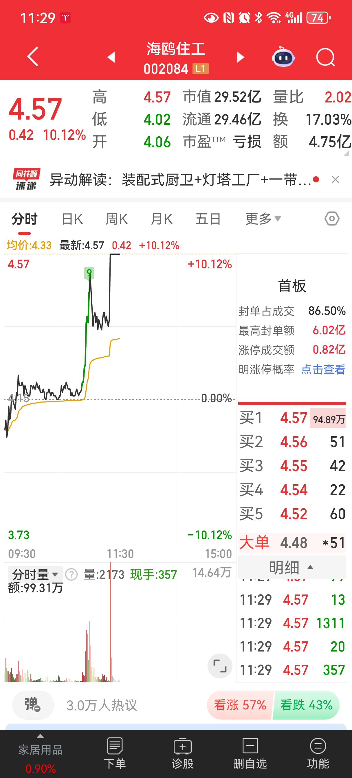 2025年第78个涨停板,海鸥住工截图留影纪念!