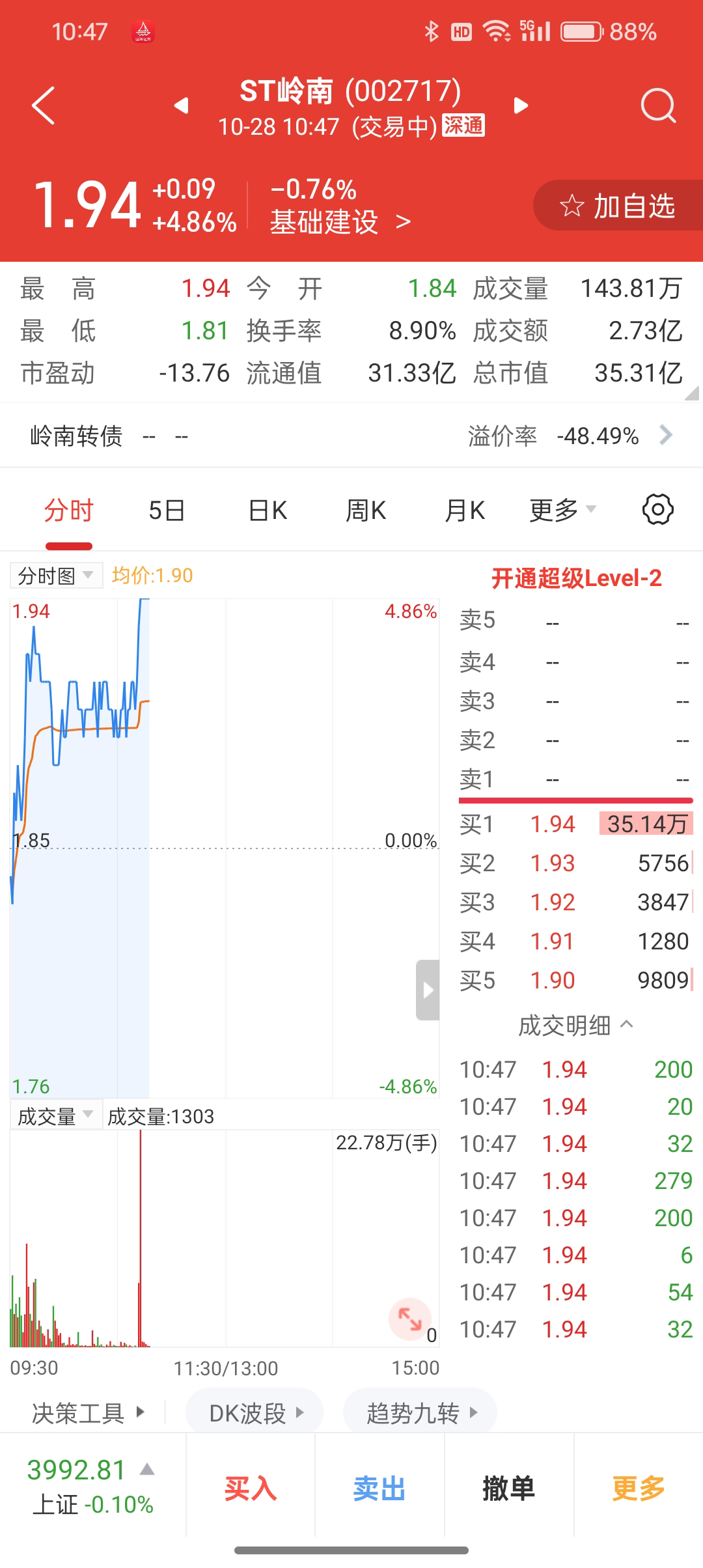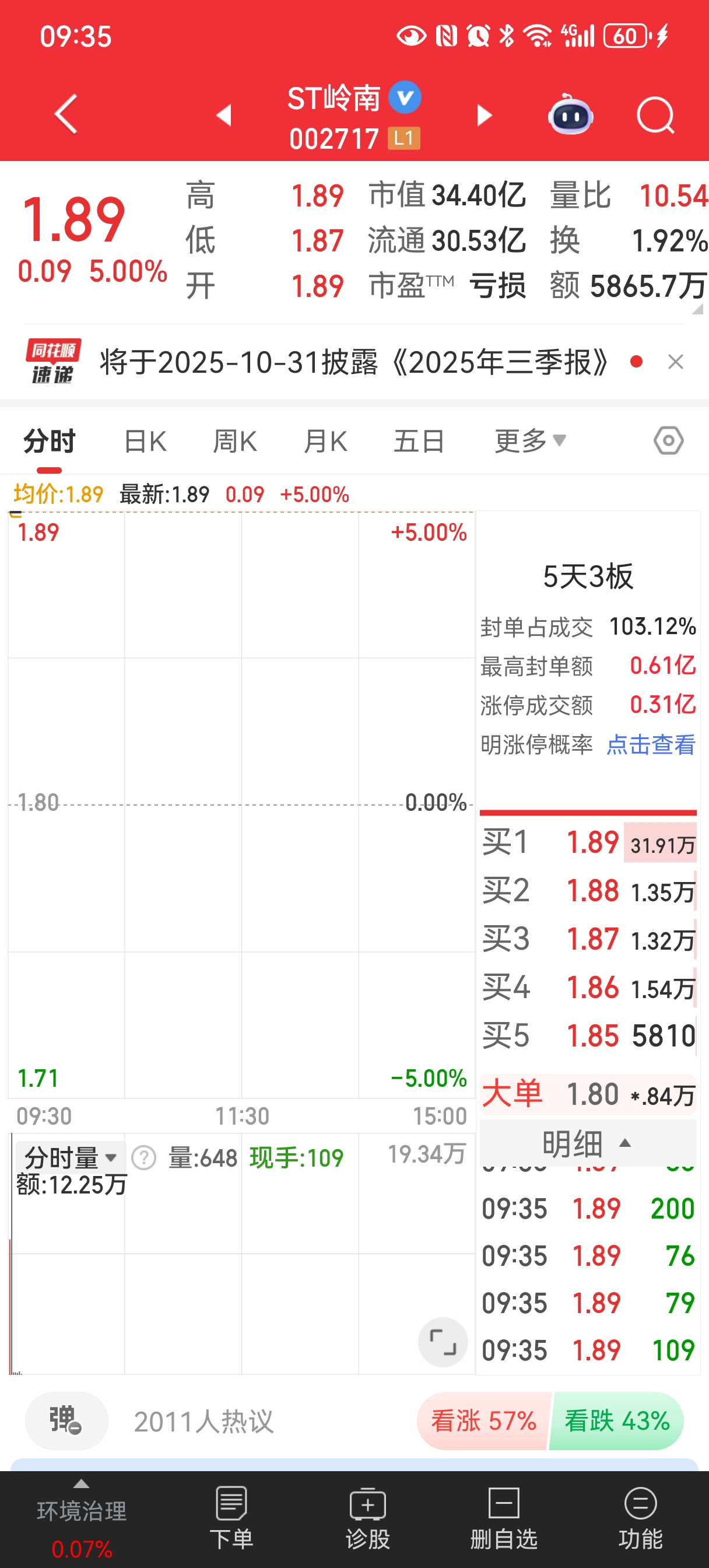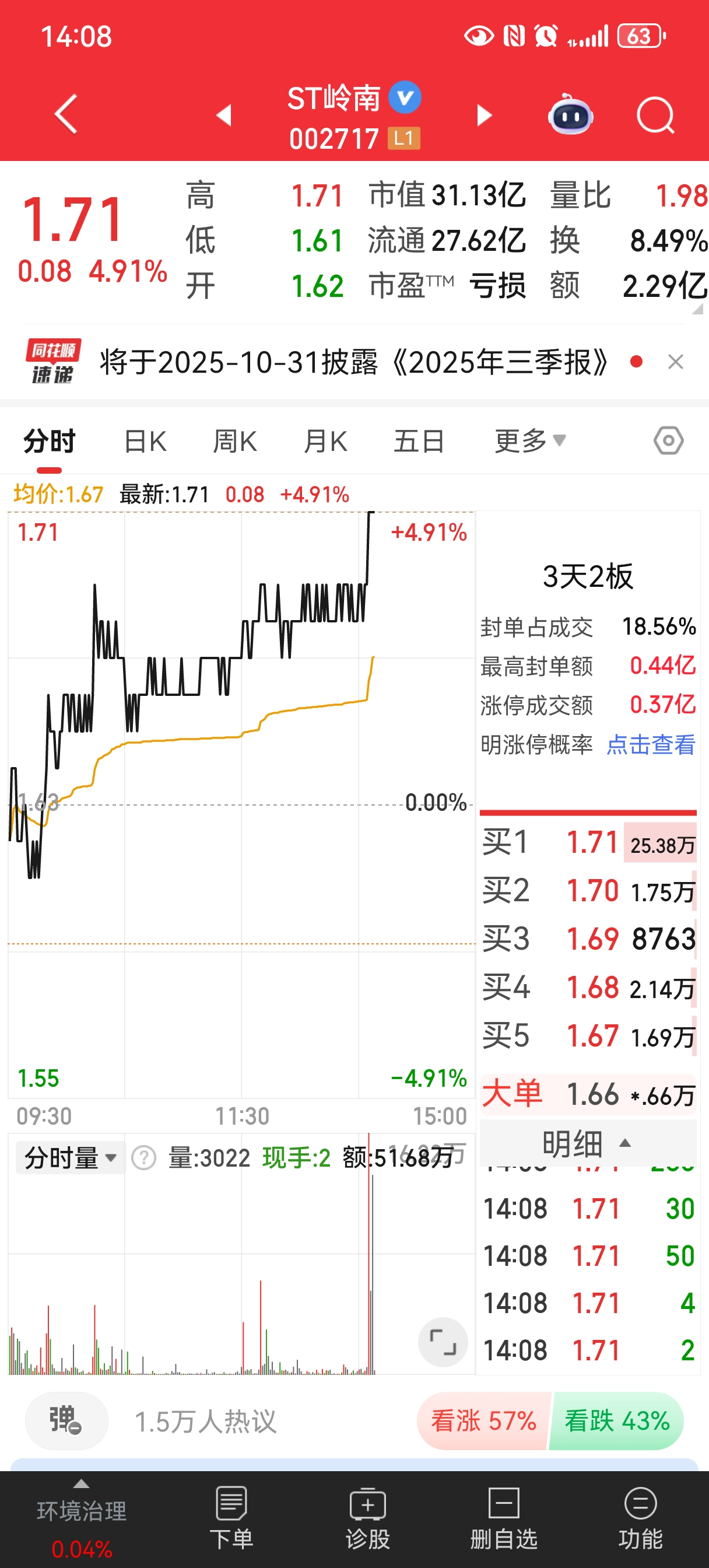 2025年第120个涨停板,ST岭南截图留影纪念!