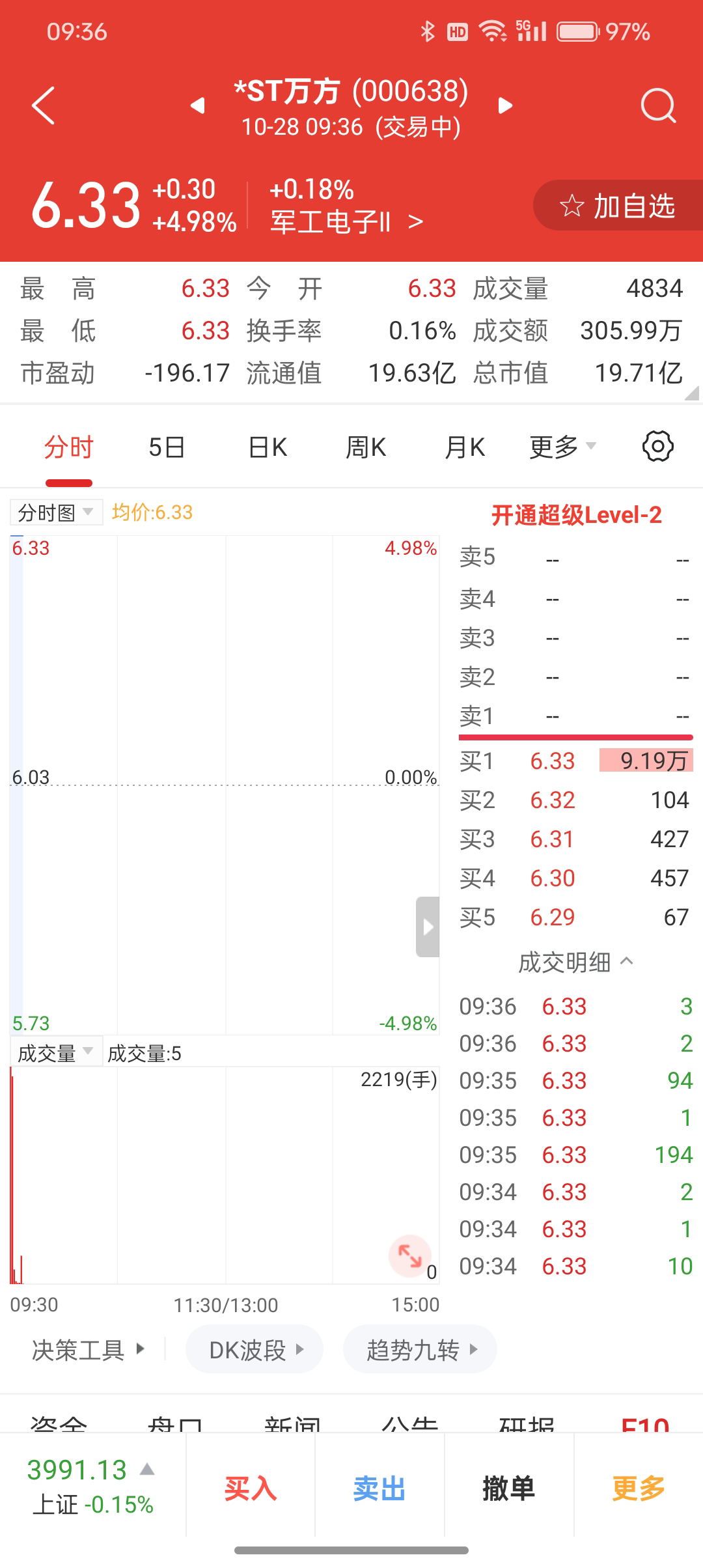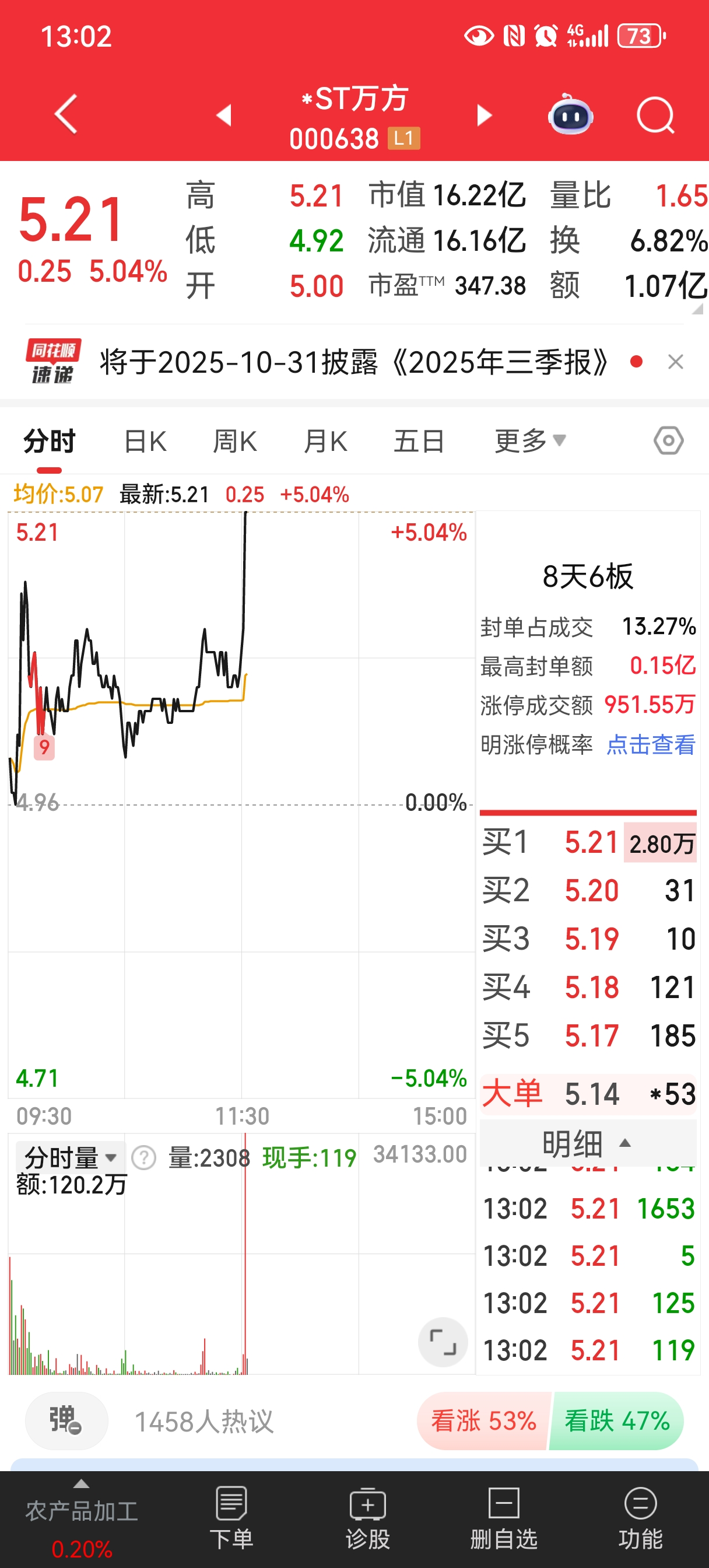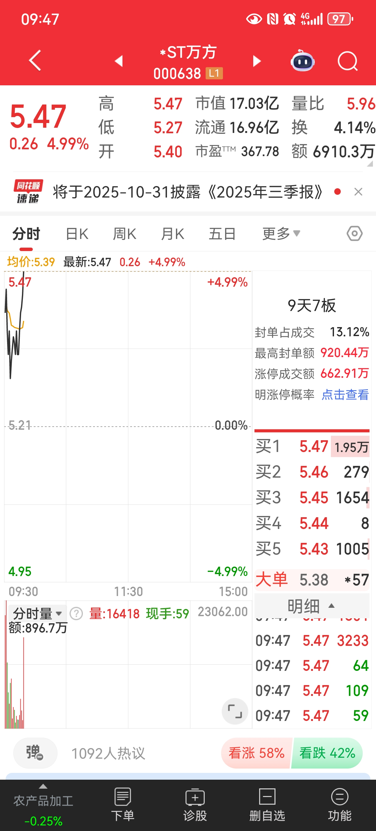 2025年第64个涨停板,ST万方,涨停板截图留影纪念!