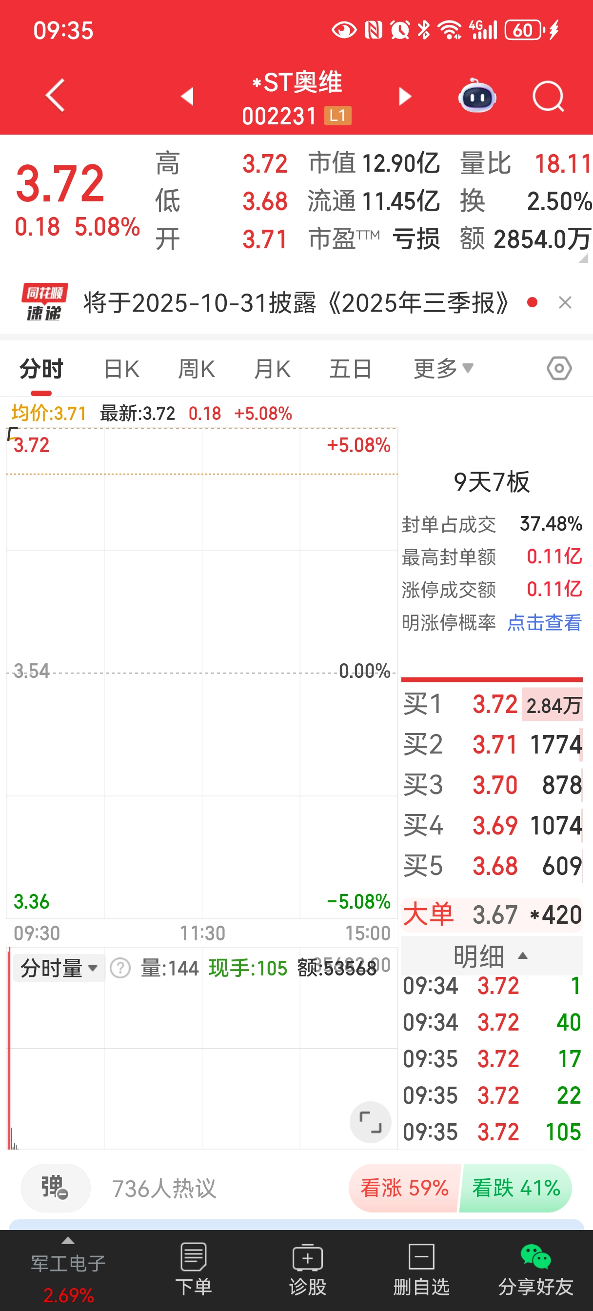 2025年第93、94、95个涨停板,ST奥维、ST万方、ST恒久截图留影纪念!