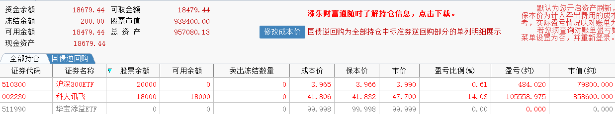 买入靠耐心,卖出靠决心,今天开始减仓了科大讯飞7%左右的仓位,当前仓位93%+,后面继续上涨做T。今年收益11.5%,仅仅和沪深300指数涨幅持平,看对行情,标的不行,十分惭愧。