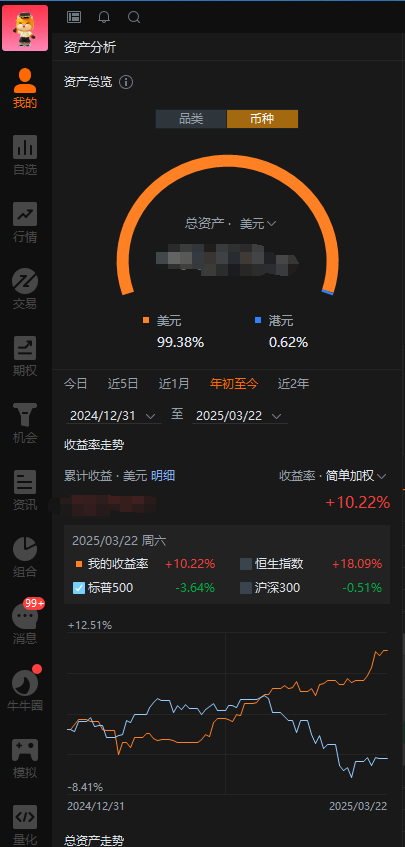 3月份继续做sell put,目前卖出的权利金收益2.2%左右,等最后10天再找一些虚值个股卖虚值增厚收益。3月份重点做A50指数和领展,中石化。