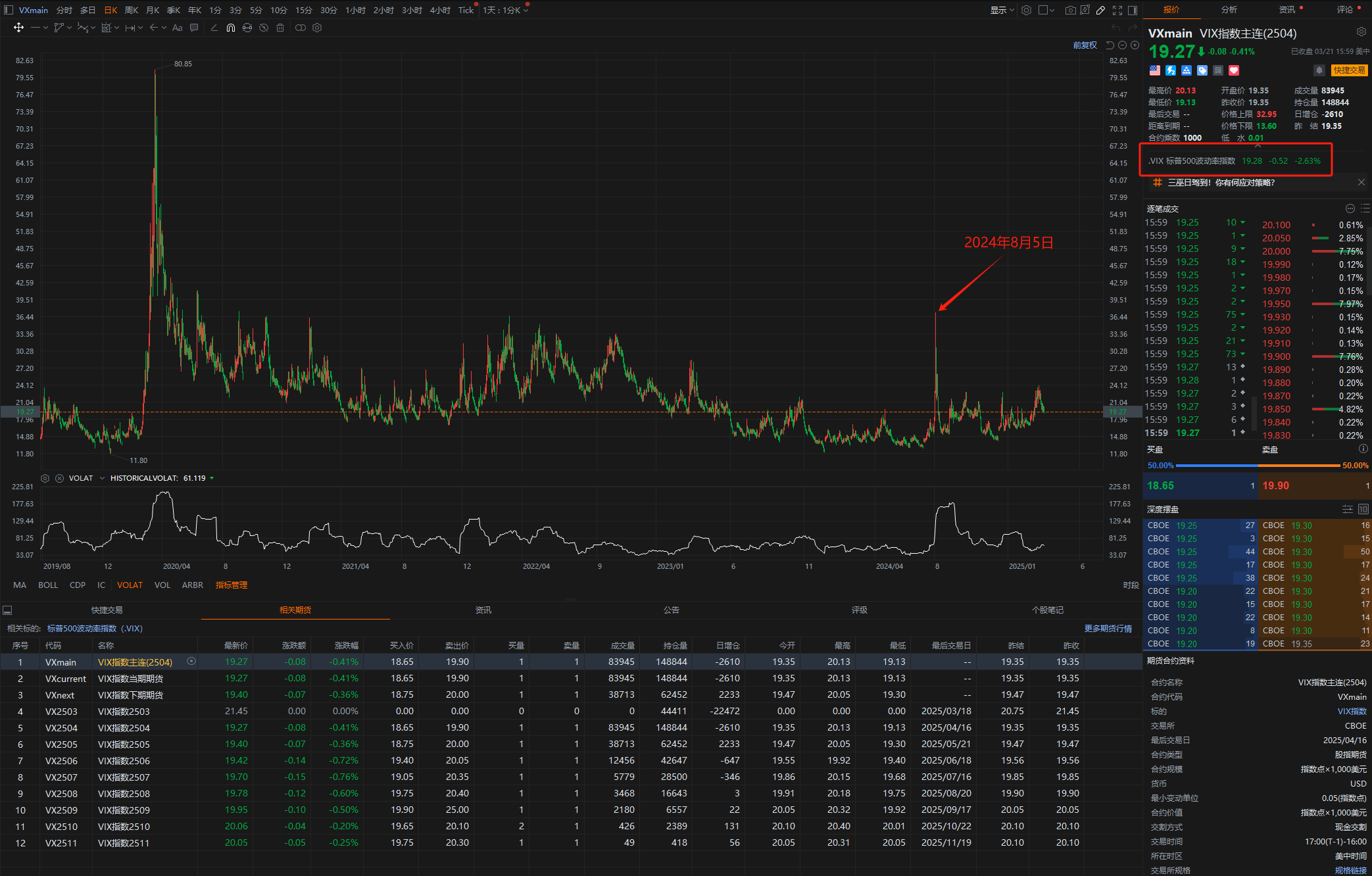 用VIX恐慌指数期货对冲标普500指数期权卖沽的效果怎样呢?经过测算:做多1张VIX指数期货合约对冲1张1个月到期的标普500指数期权(名义金额大约54万美金),假设遇到去年7月中旬到8月5日的剧烈下跌行情(IV上升11%,指数下跌10%),VIX指数期货合约盈利(38-14)*1000=2.4万美元,标普500期权合约大约亏损2.6万美元,基本上可以实现对冲掉全部Vega和大部分Delta的目的。