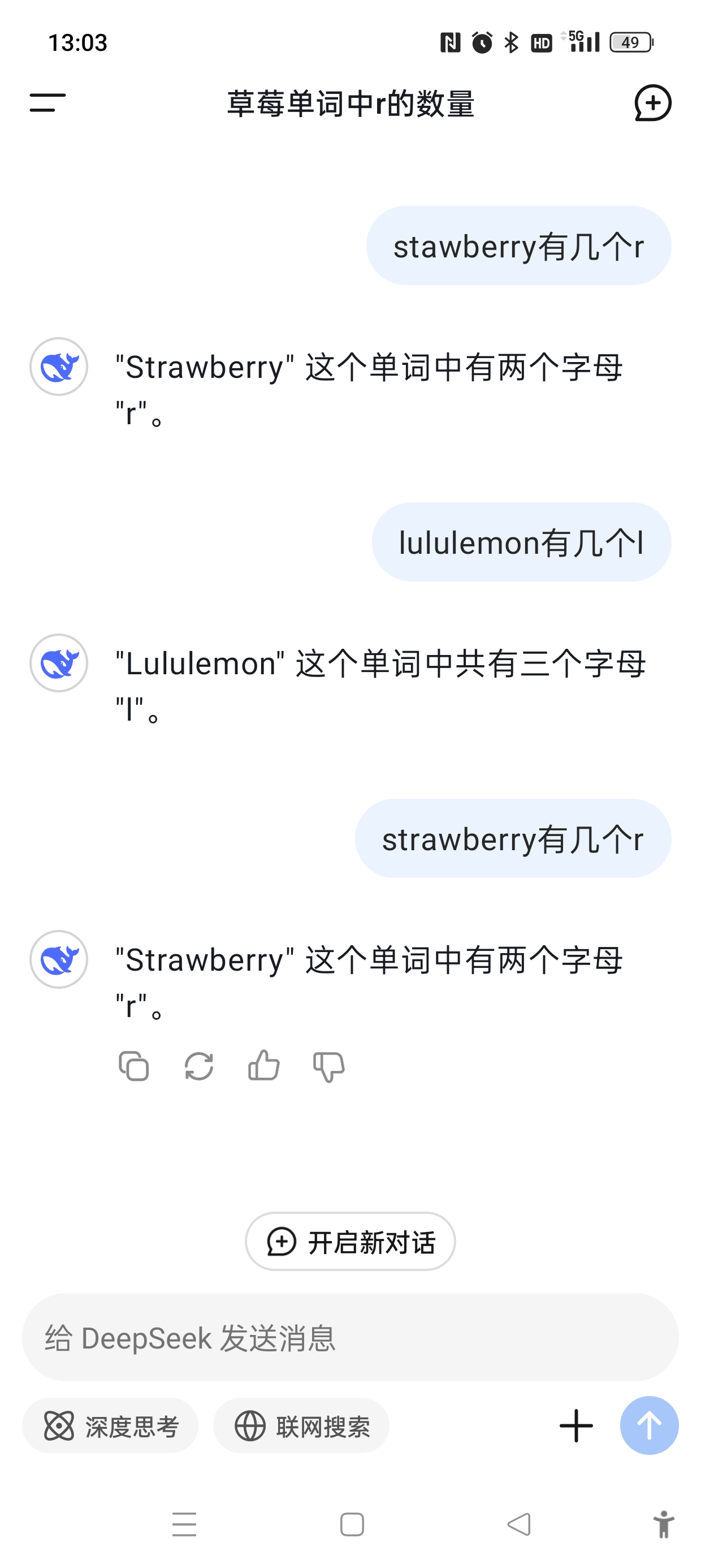 我是拼错了,但是它也答错了,后来又试了一次,答案还是错的。在单词“strwberry”中,共有 3个r。