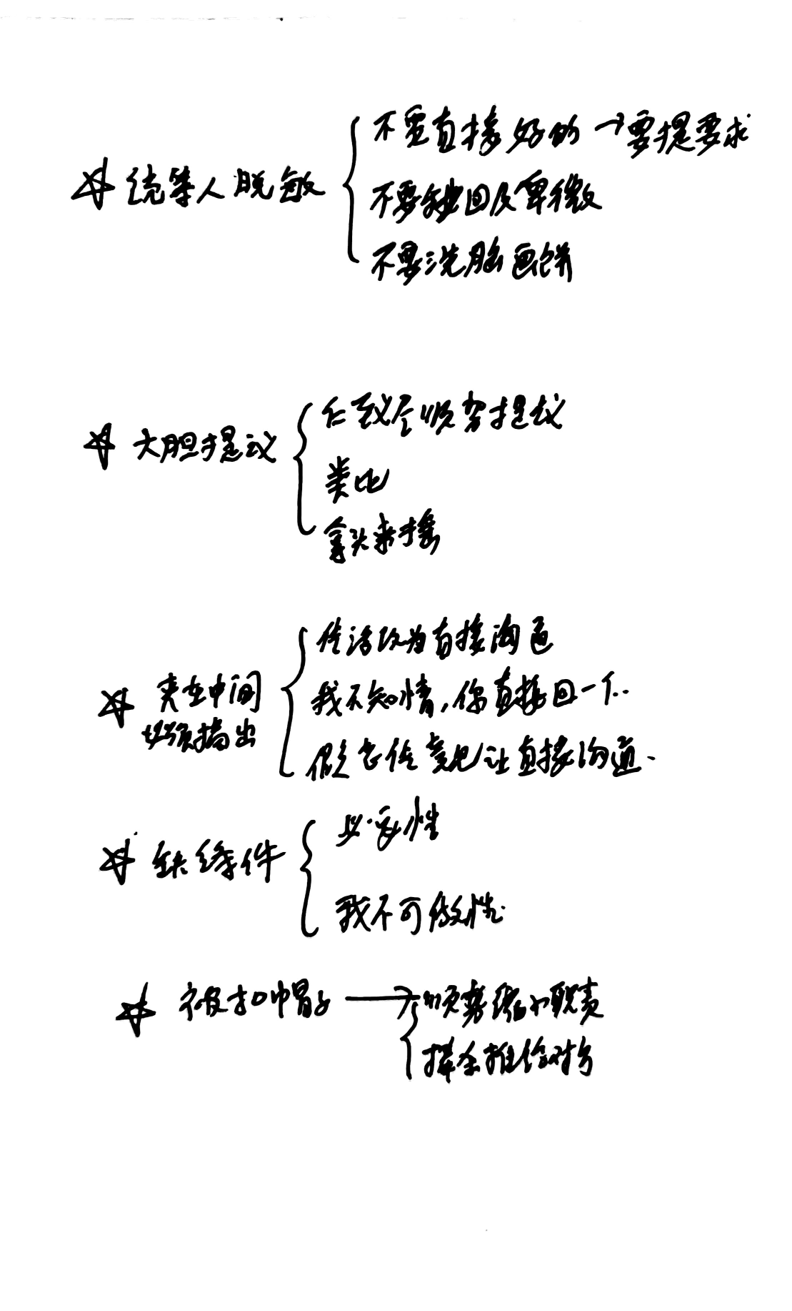 1.引导别人多说,自己多倾听,打断和抢话适得其反,抢答双方无法深度思考使聊天浮于表面。(嗯~然后呢+微微点头)