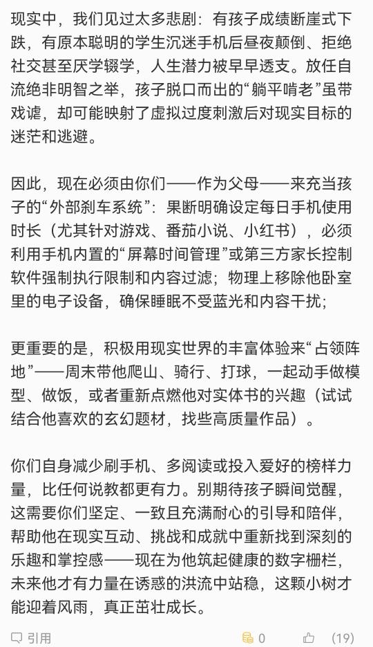 2. 戒毒不如远离毒品:手机短视频和游戏就是为了摧毁人的意志力而设计,成年人都无法抵御手机的诱惑。何况小孩子,欲成大事必然要先管住手机。手机比毒品还可怕,因为人们对毒品还多了一份防范,而对手机过于司空见惯习以为常,这份掉以轻心不知不觉中消磨生命。怎么管手机:一个是家庭成员交换手机。二个是手机自律盒,每天把手机锁起来。