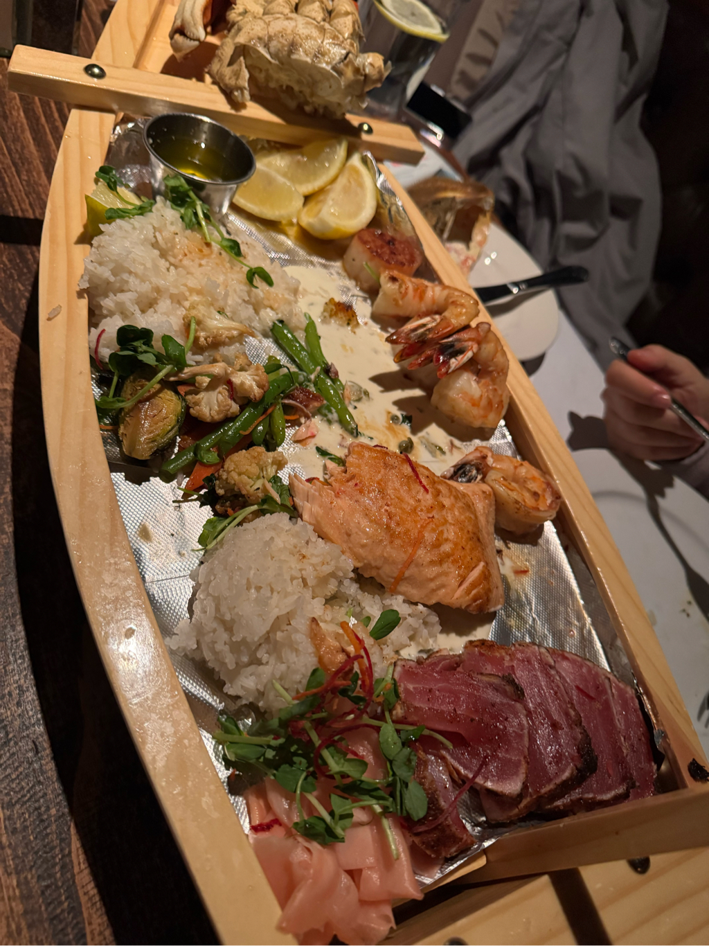 海鲜拼盘 两个龙虾尾被一抢而空