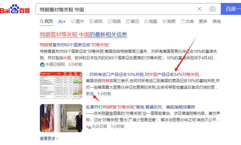 4月10日12时01分起,对原产于美国的所有进口商品,在现行适用关税税率基础上加征34%关税。