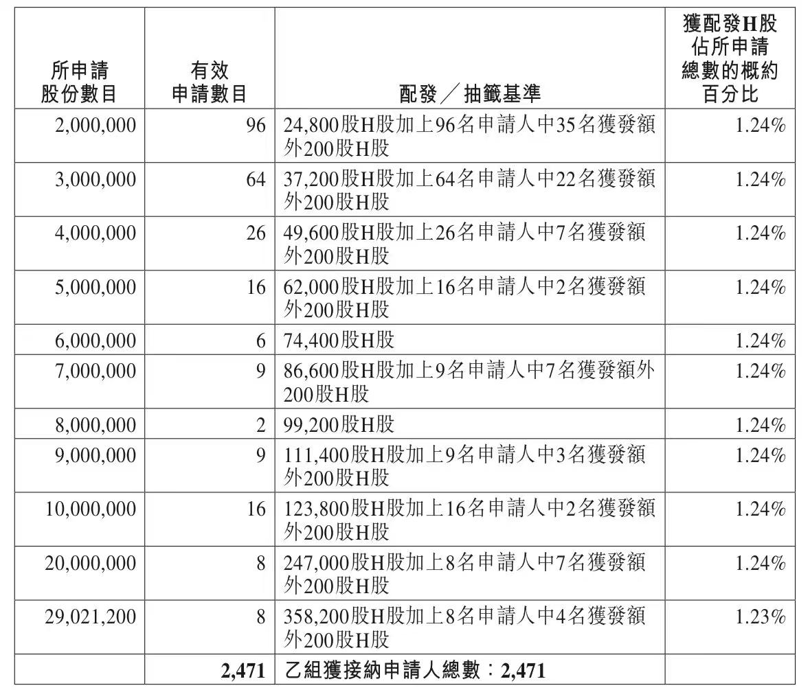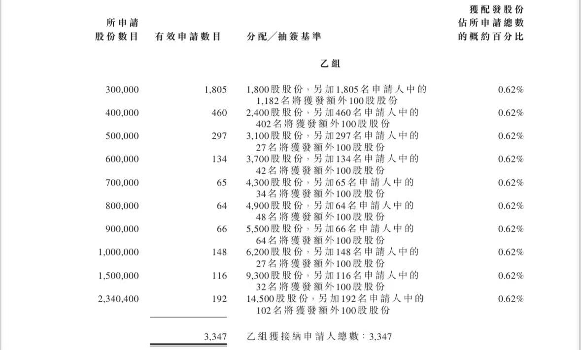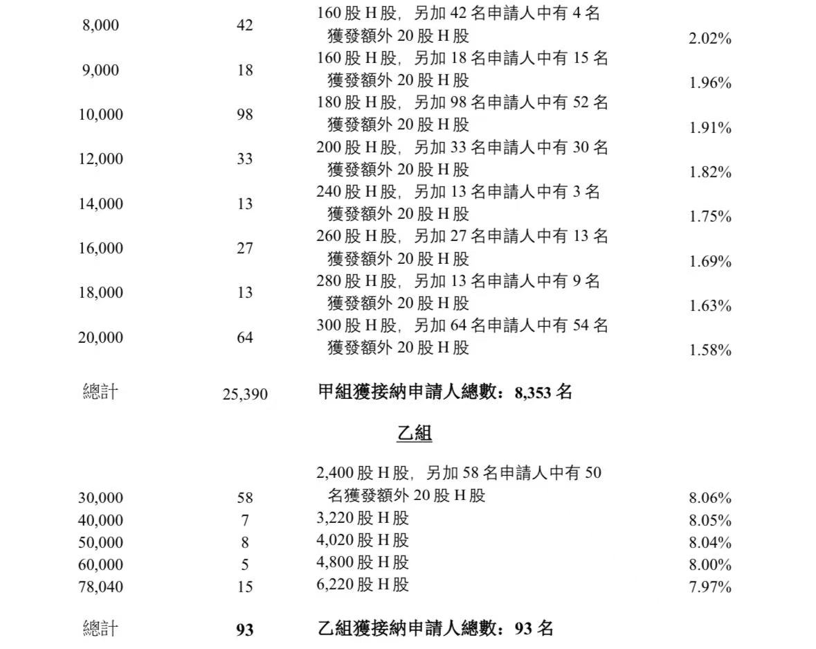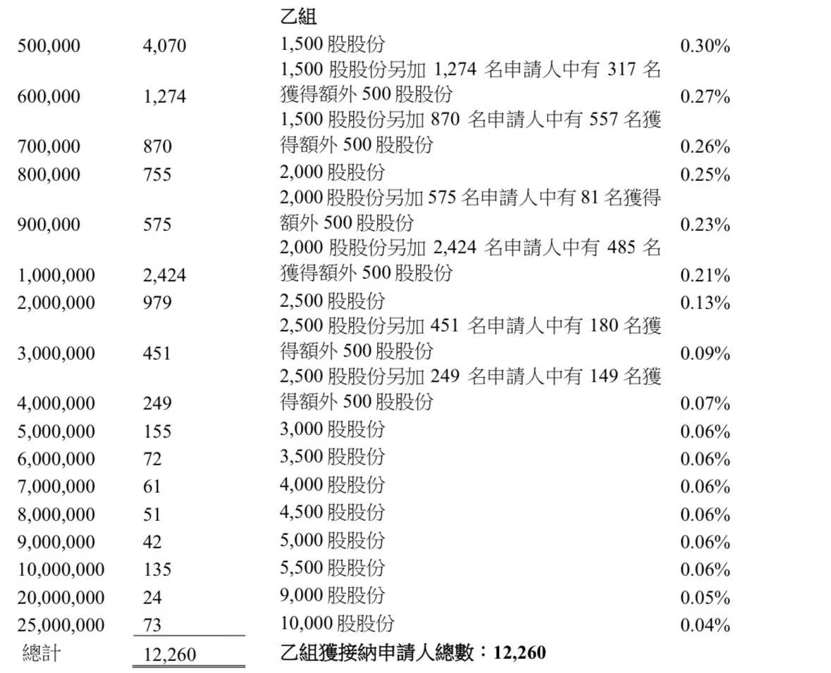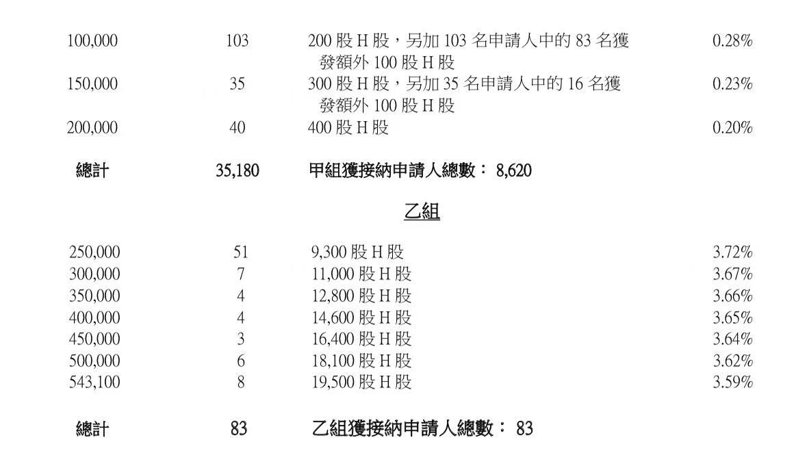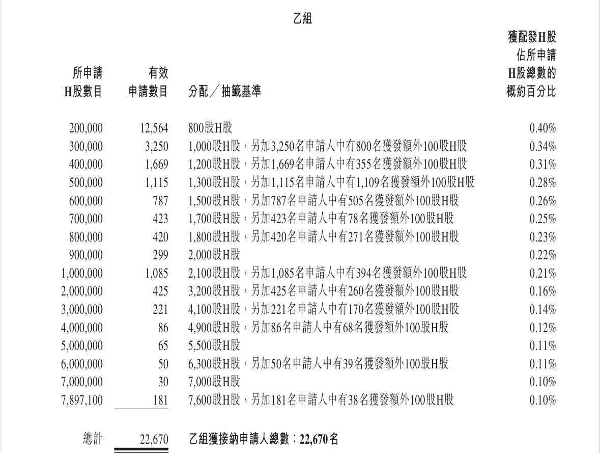 蜜雪集团打新认购人数264,992人,其中甲组226,091人,甲尾中签率70%;乙组38,901人,乙头中签率30%。