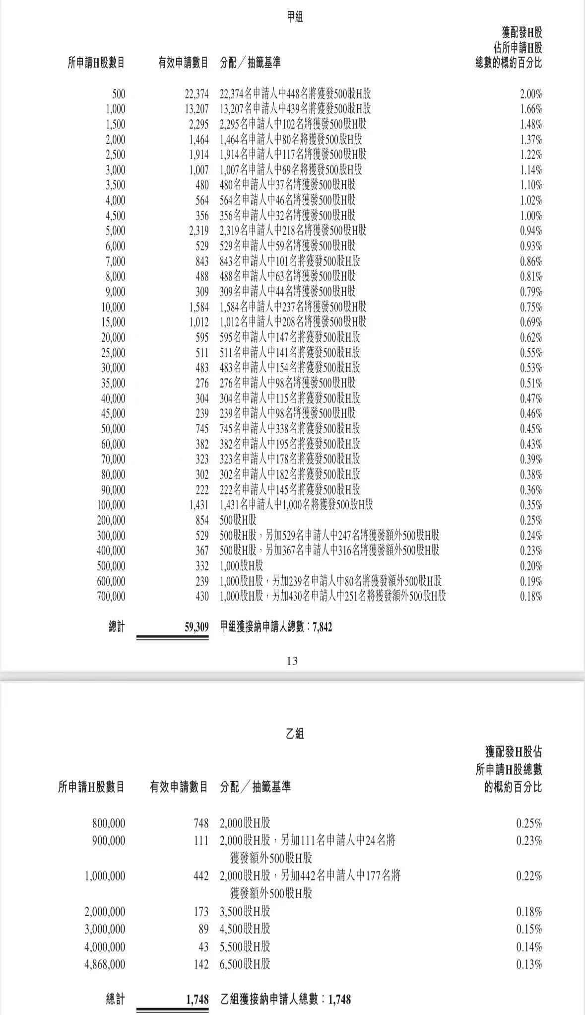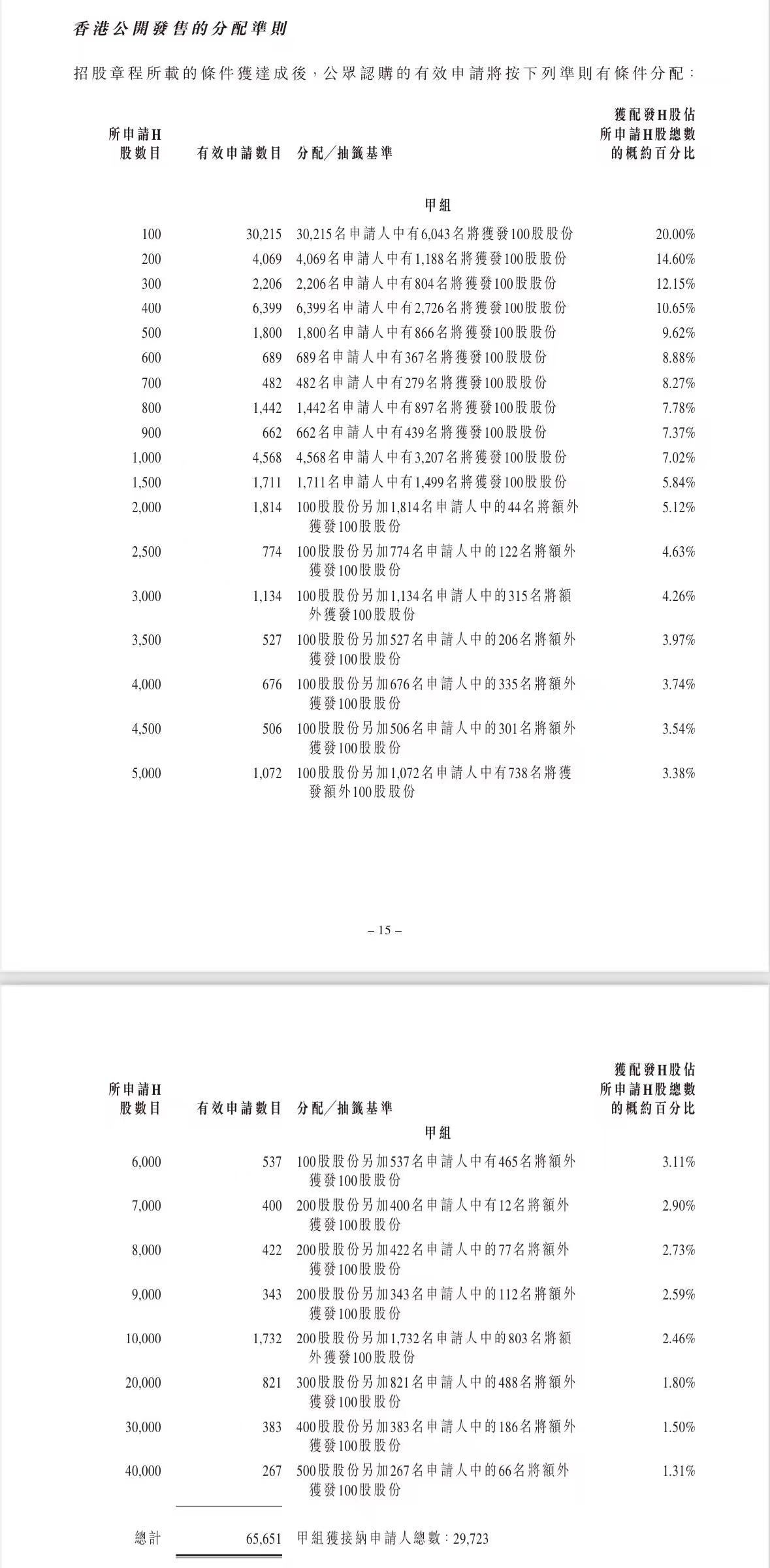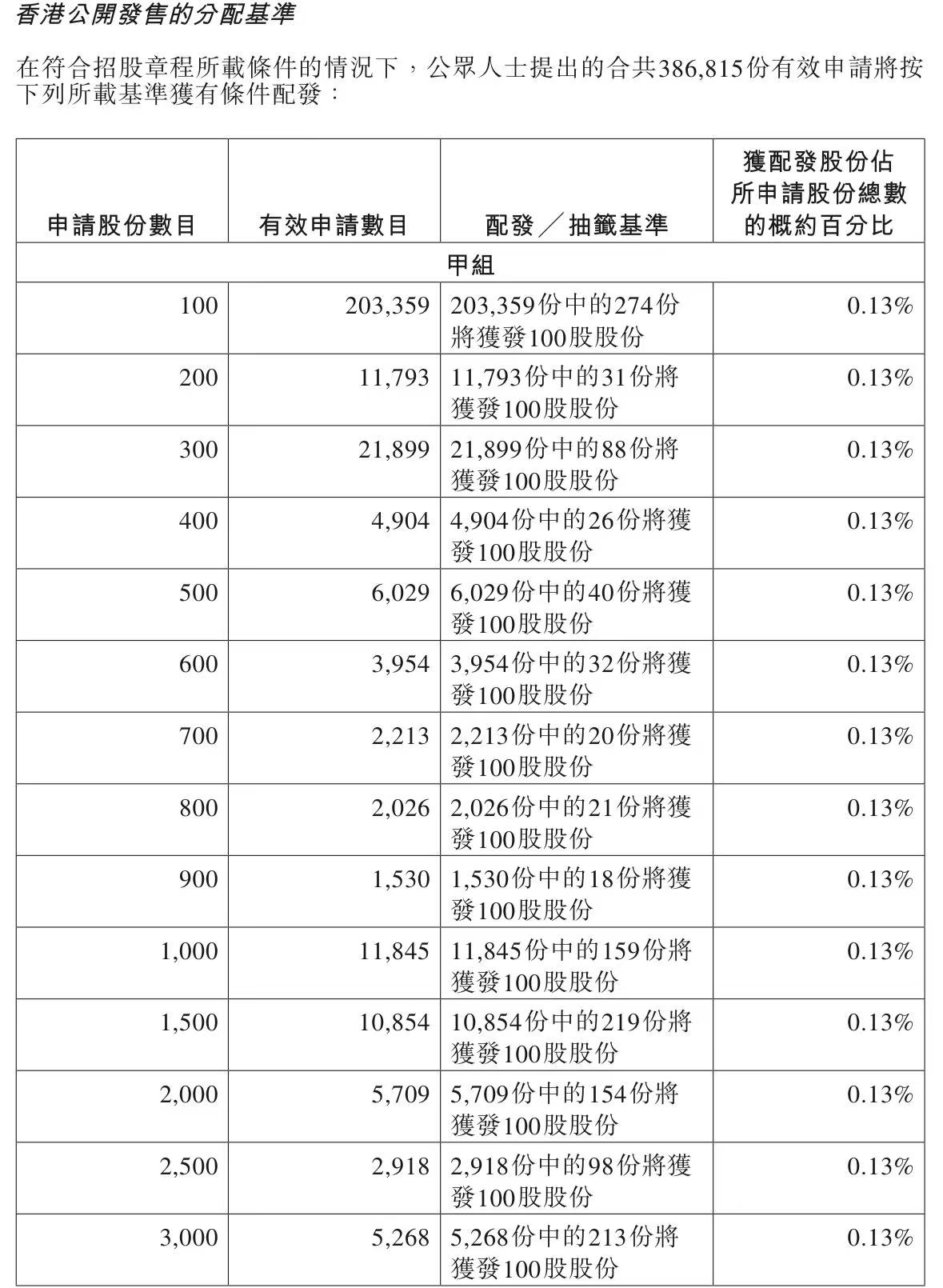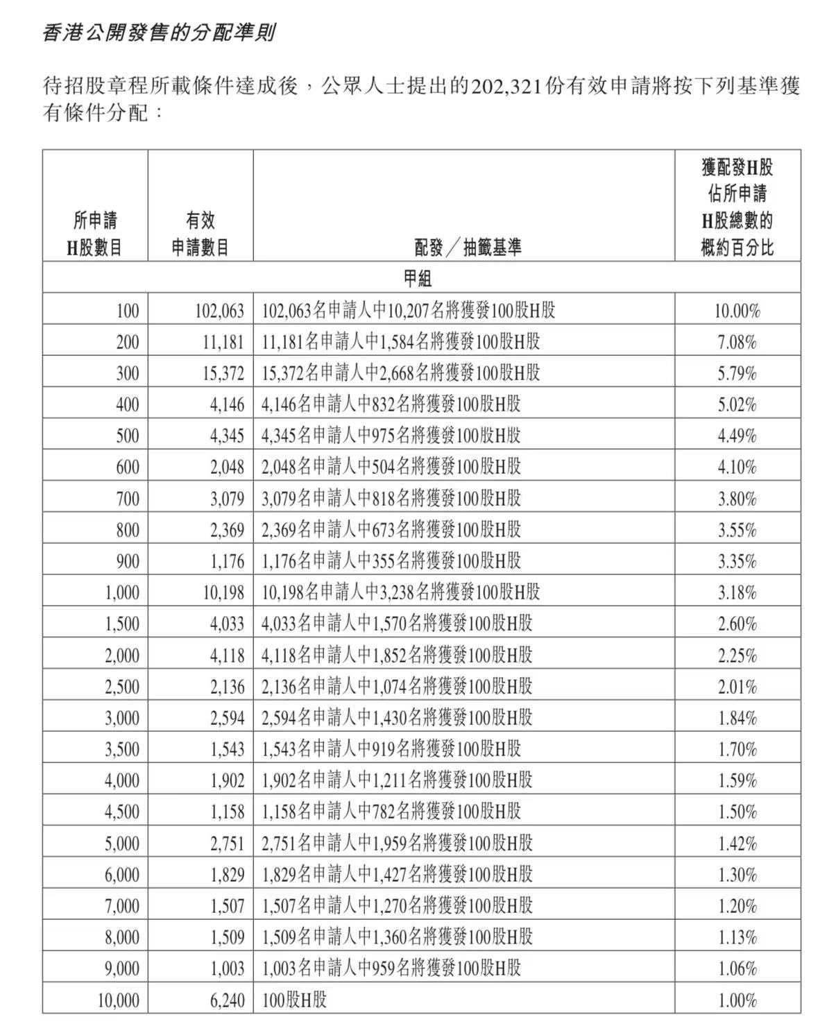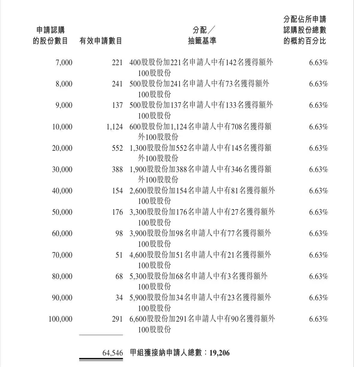 蜜雪集团打新认购人数264,992人,其中甲组226,091人,甲尾中签率70%;乙组38,901人,乙头中签率30%。