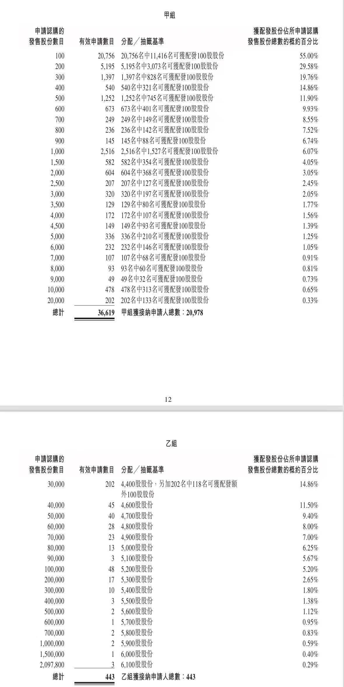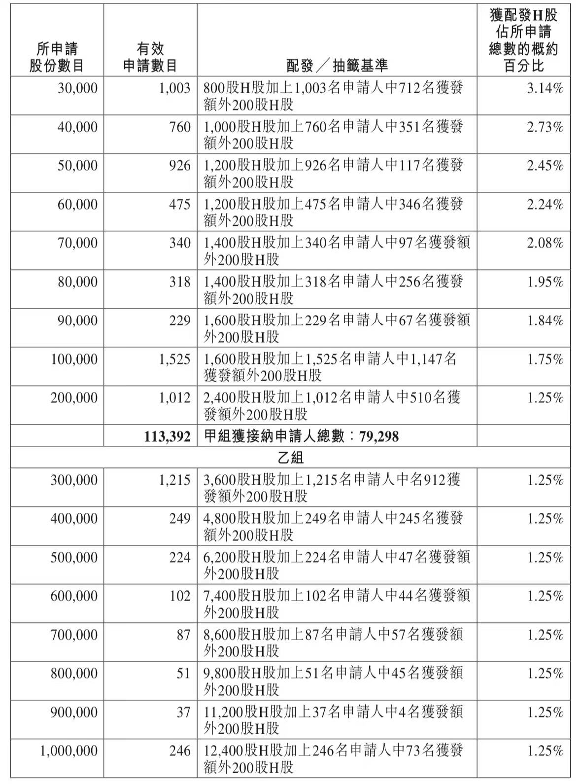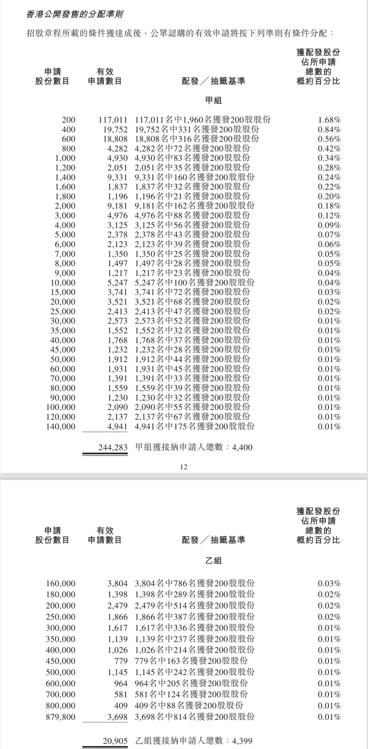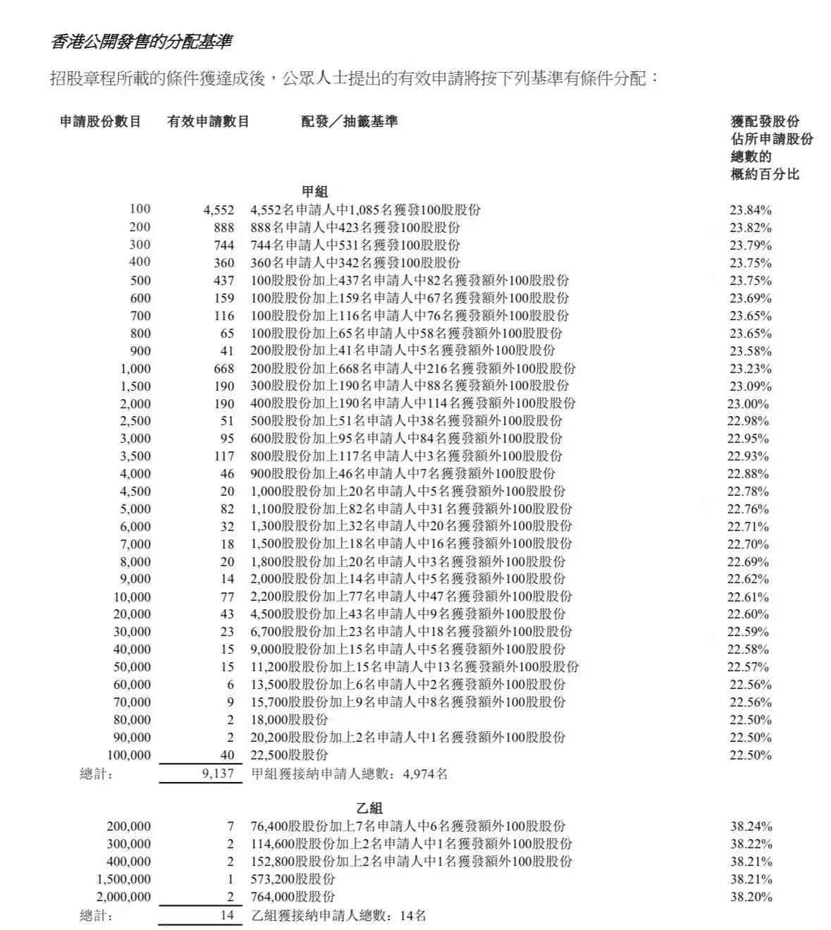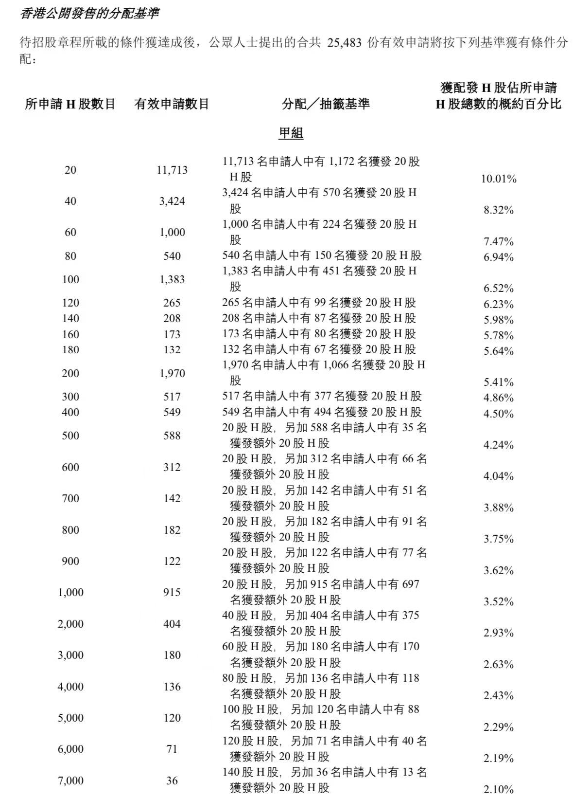 蜜雪集团打新认购人数264,992人,其中甲组226,091人,甲尾中签率70%;乙组38,901人,乙头中签率30%。
