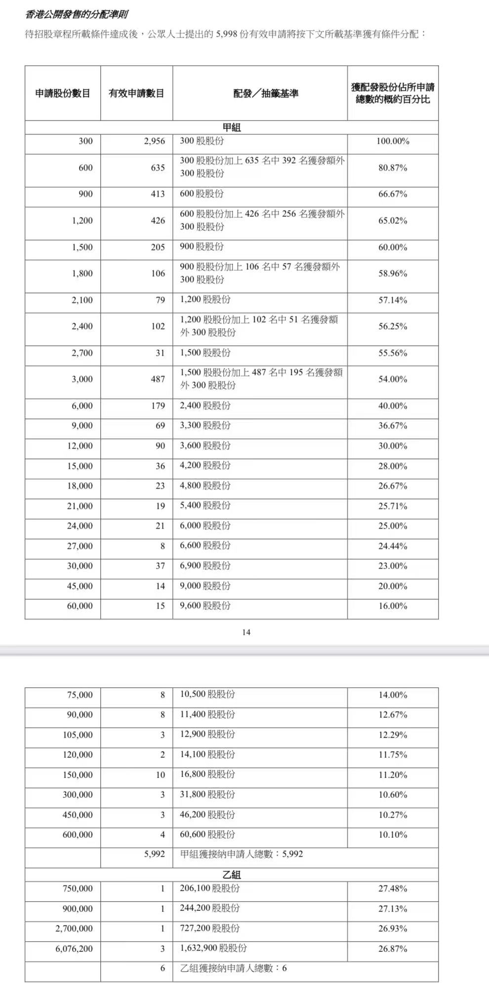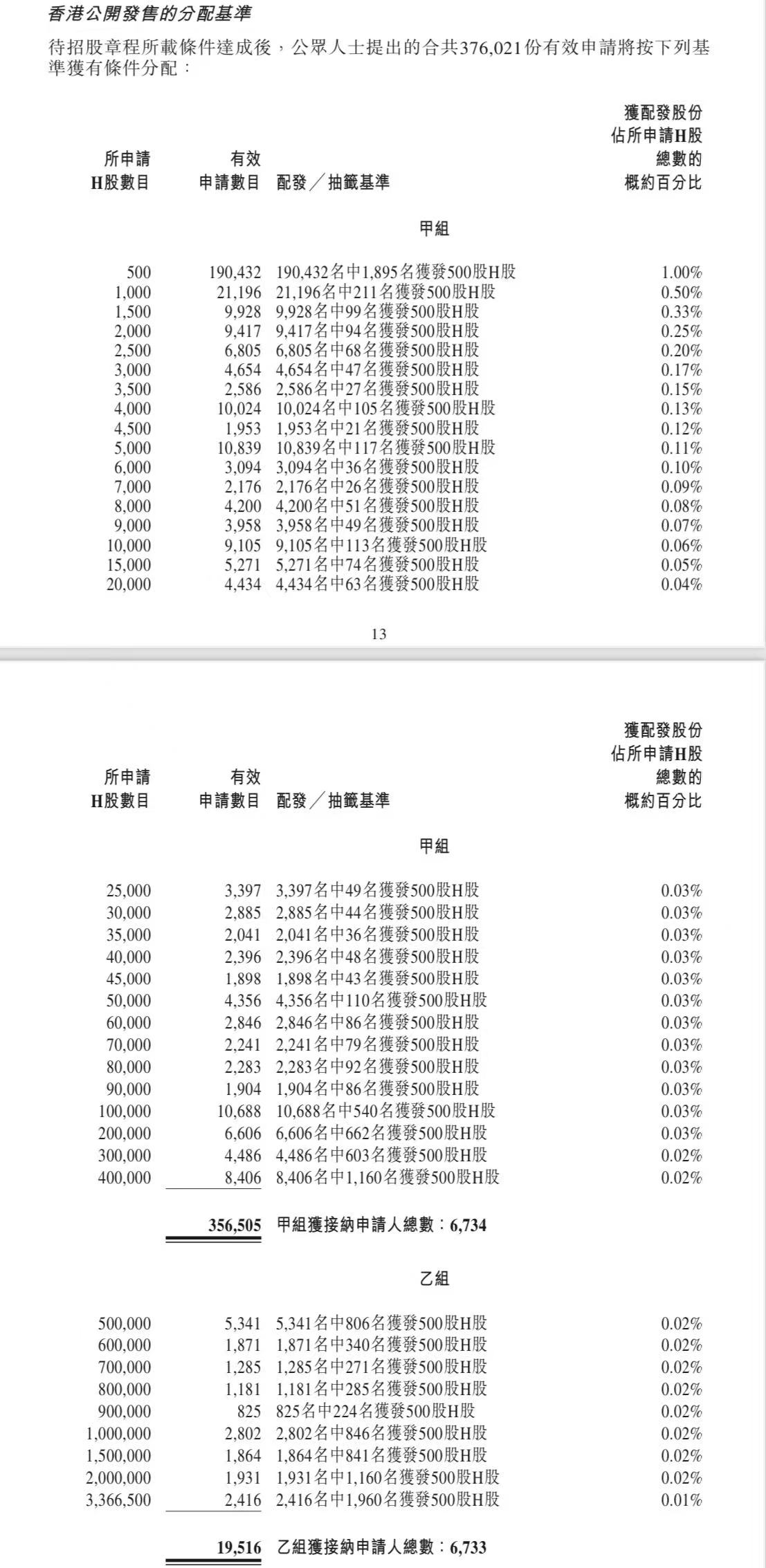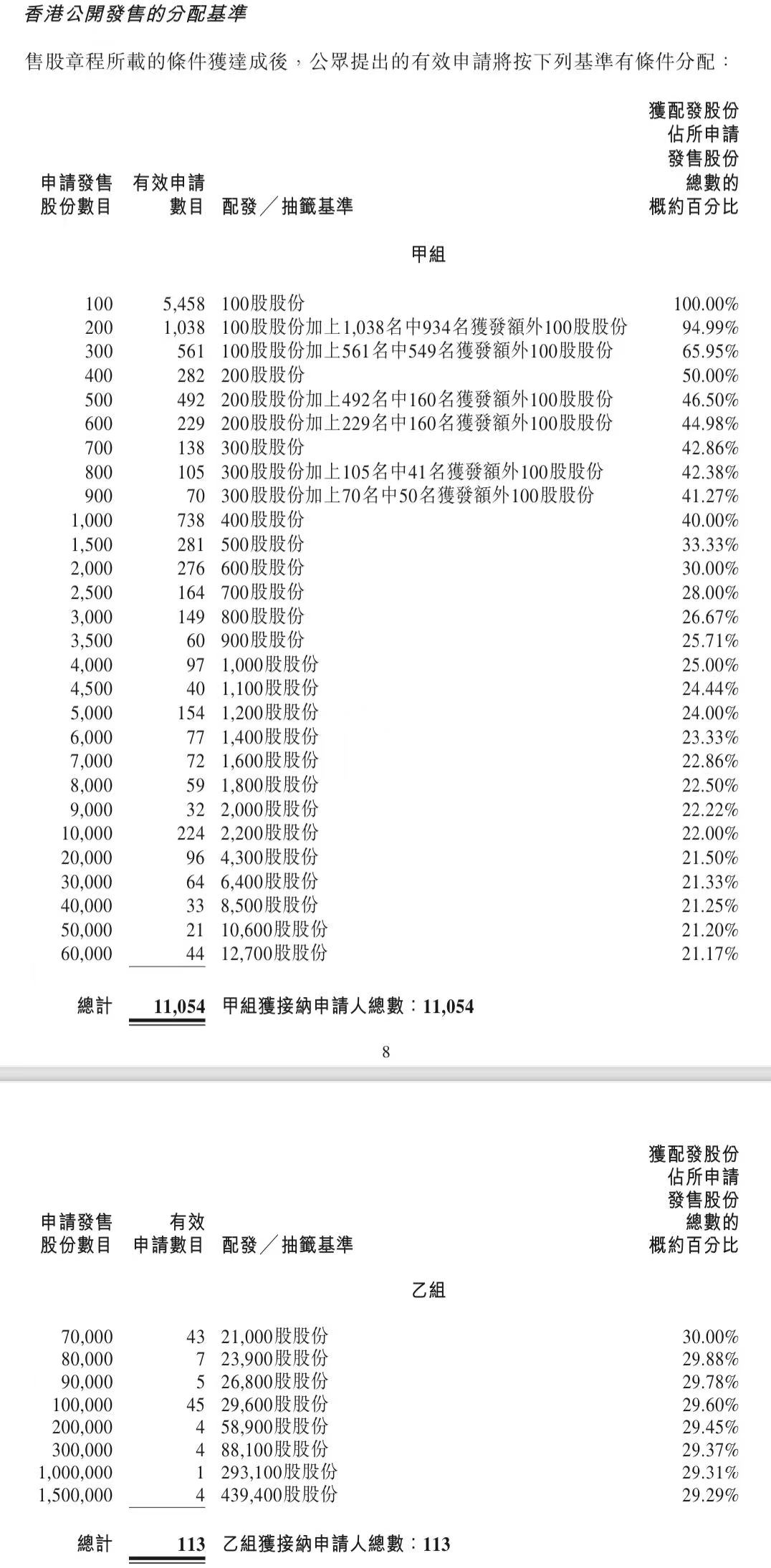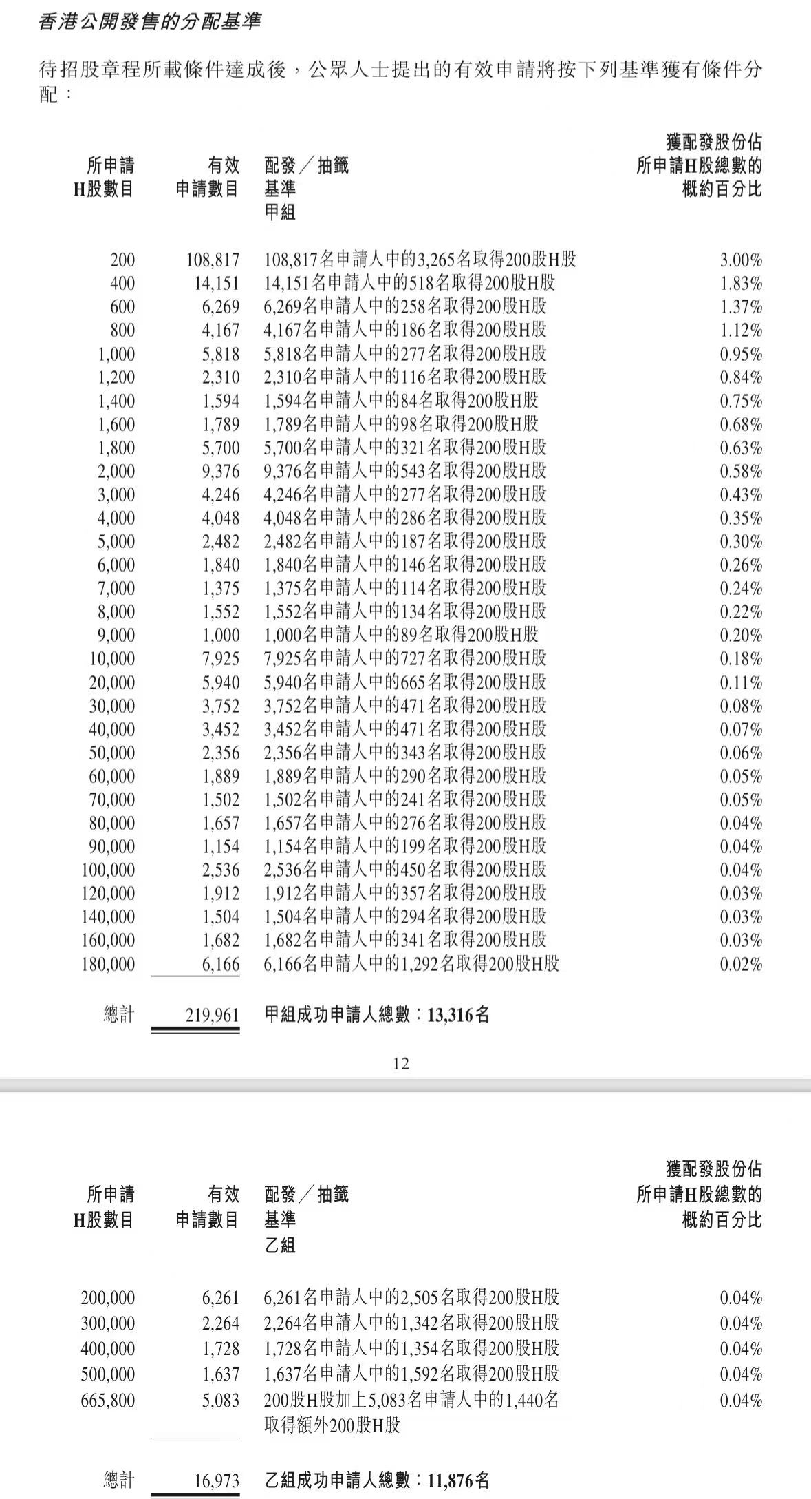 蜜雪集团打新认购人数264,992人,其中甲组226,091人,甲尾中签率70%;乙组38,901人,乙头中签率30%。