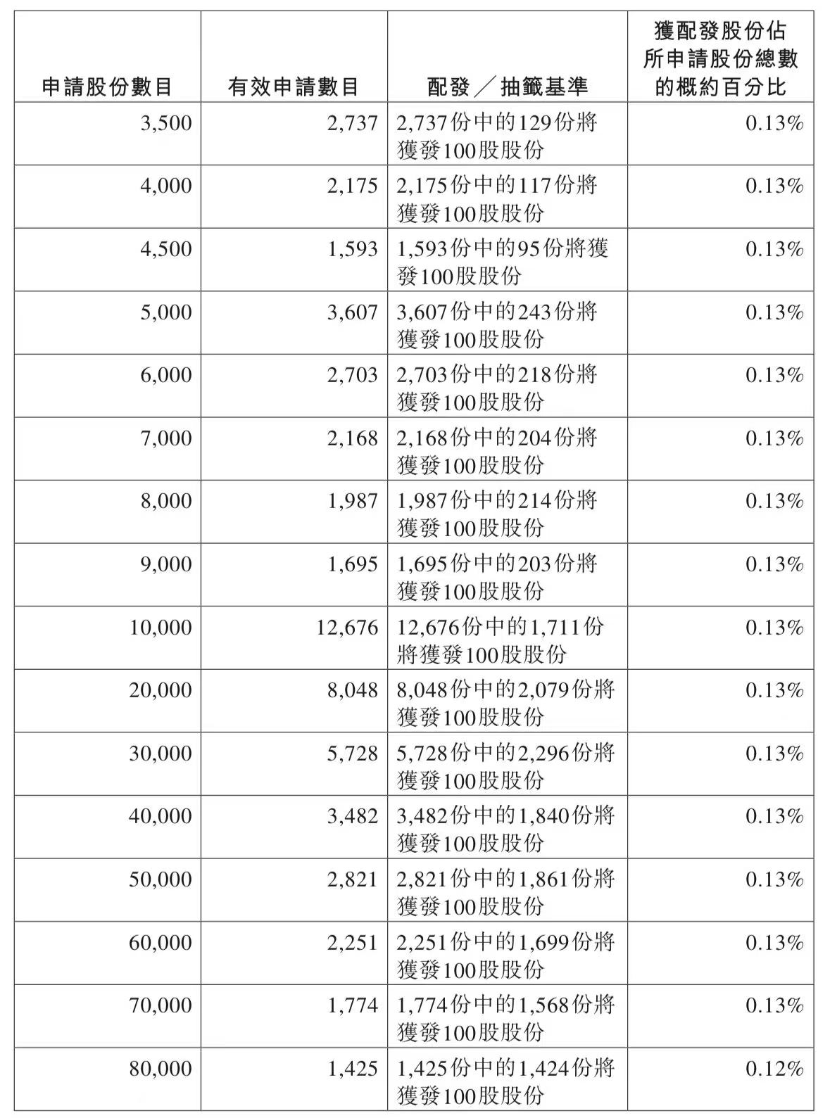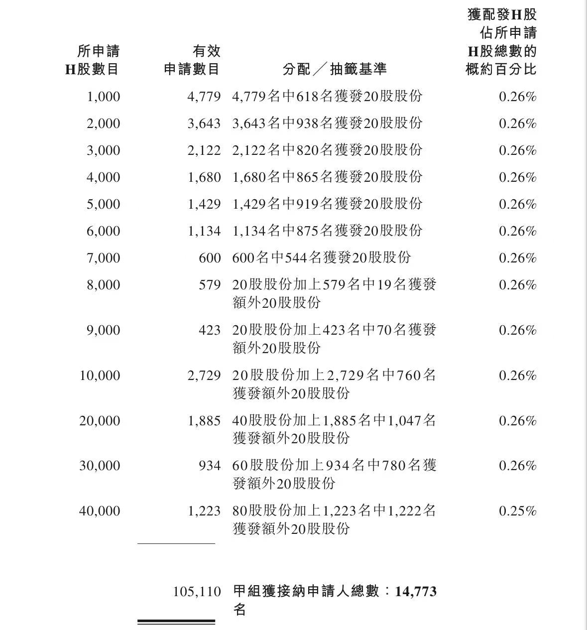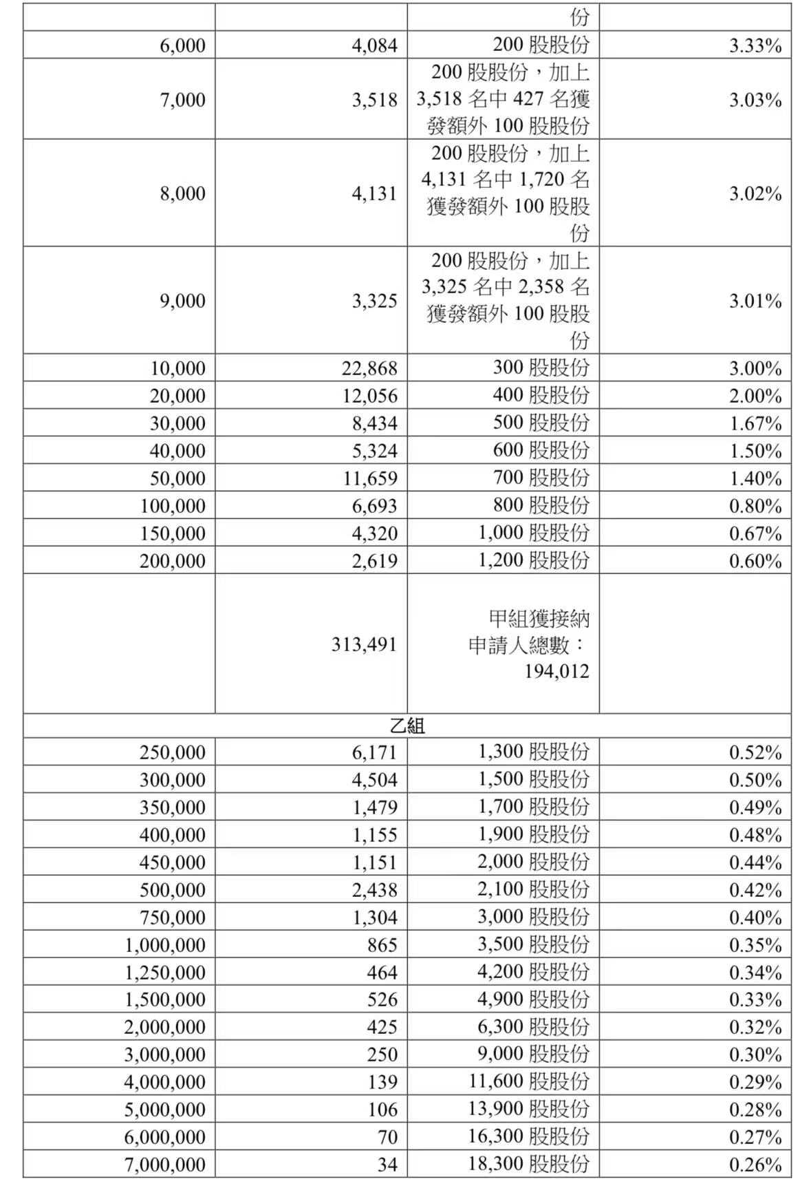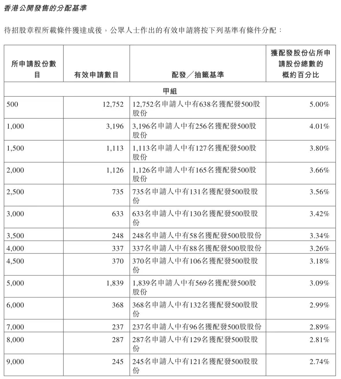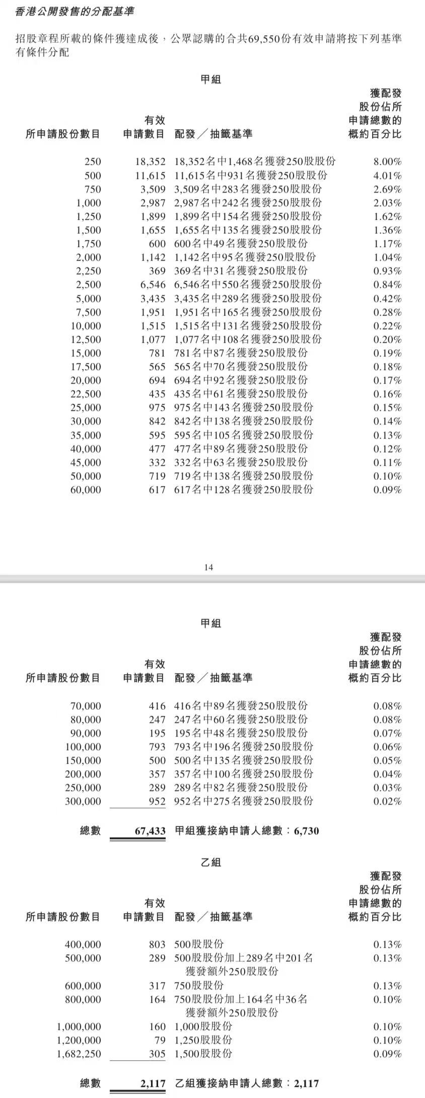 蜜雪集团打新认购人数264,992人,其中甲组226,091人,甲尾中签率70%;乙组38,901人,乙头中签率30%。