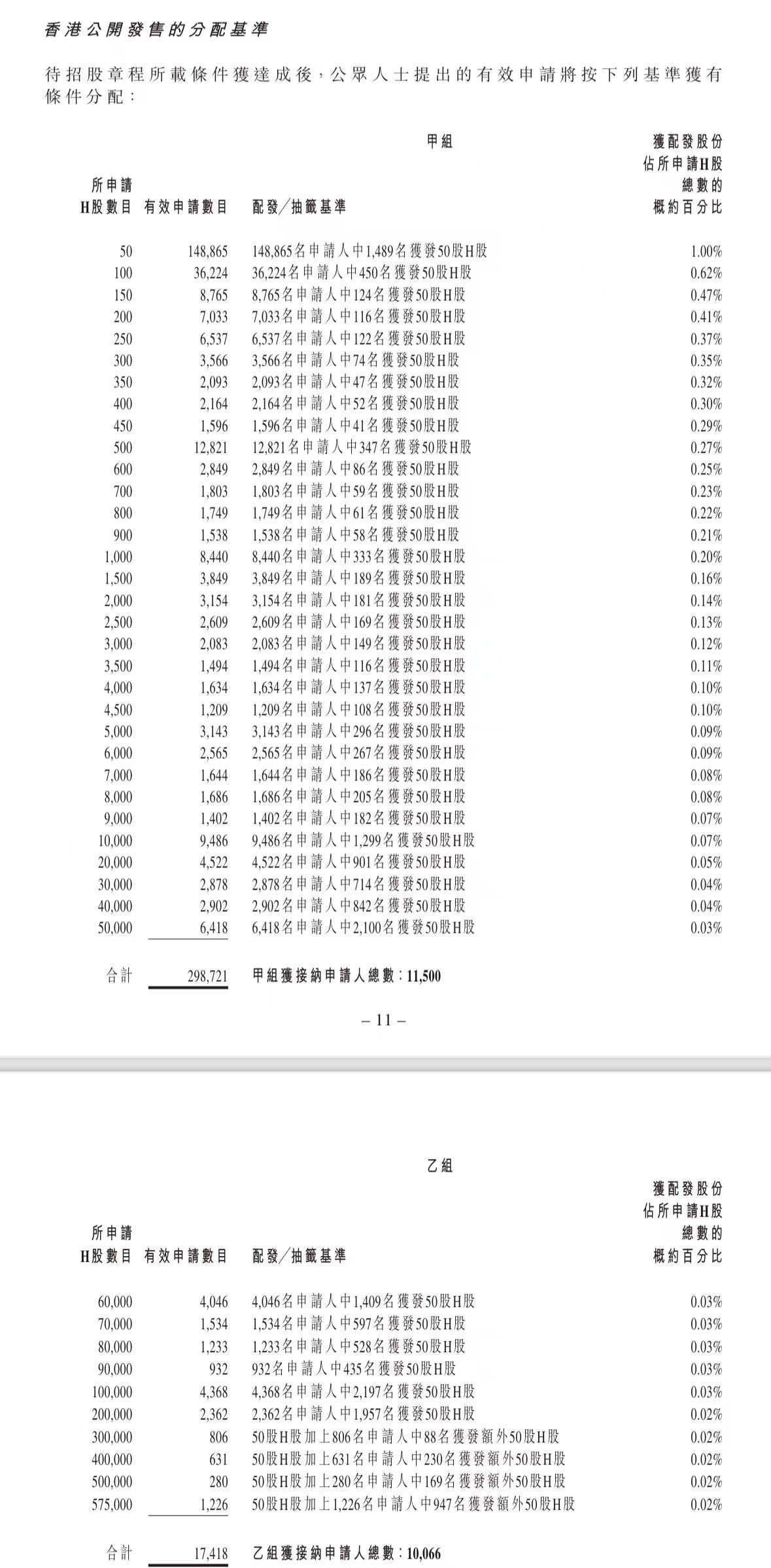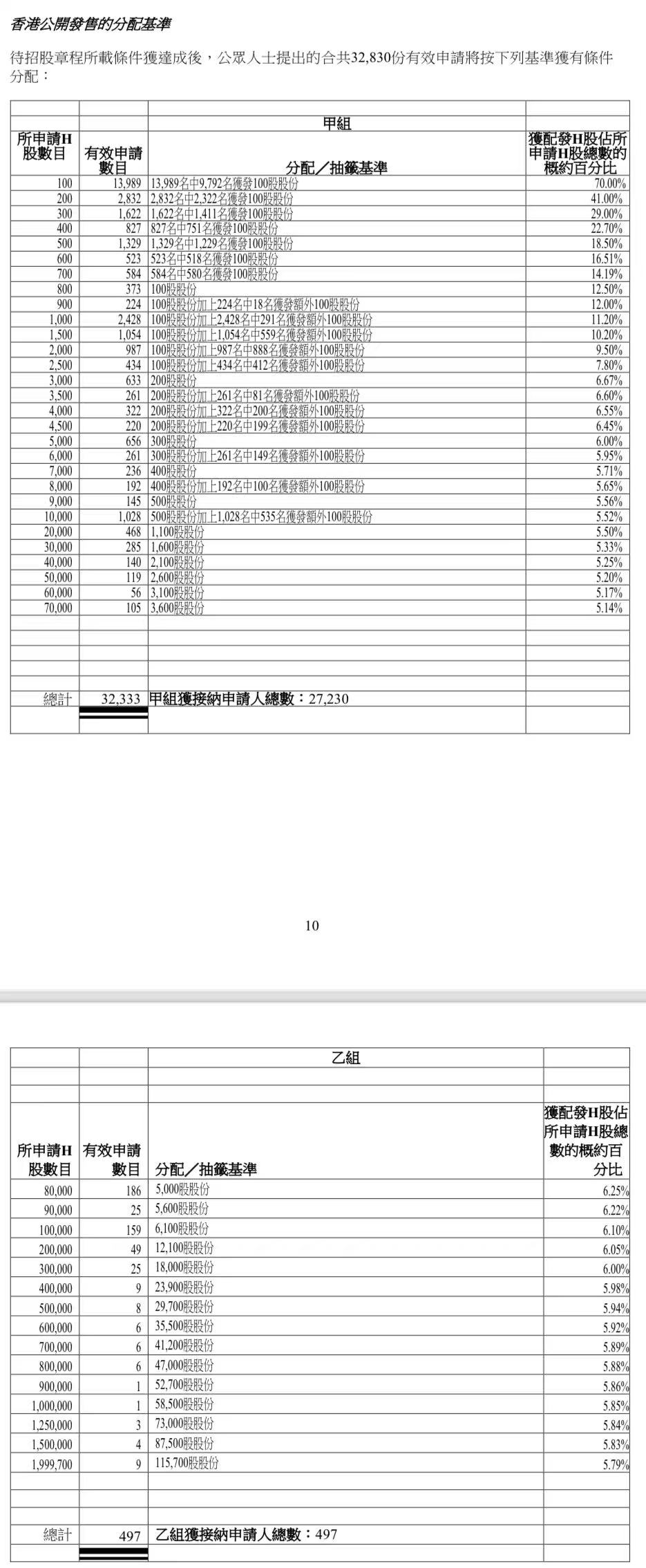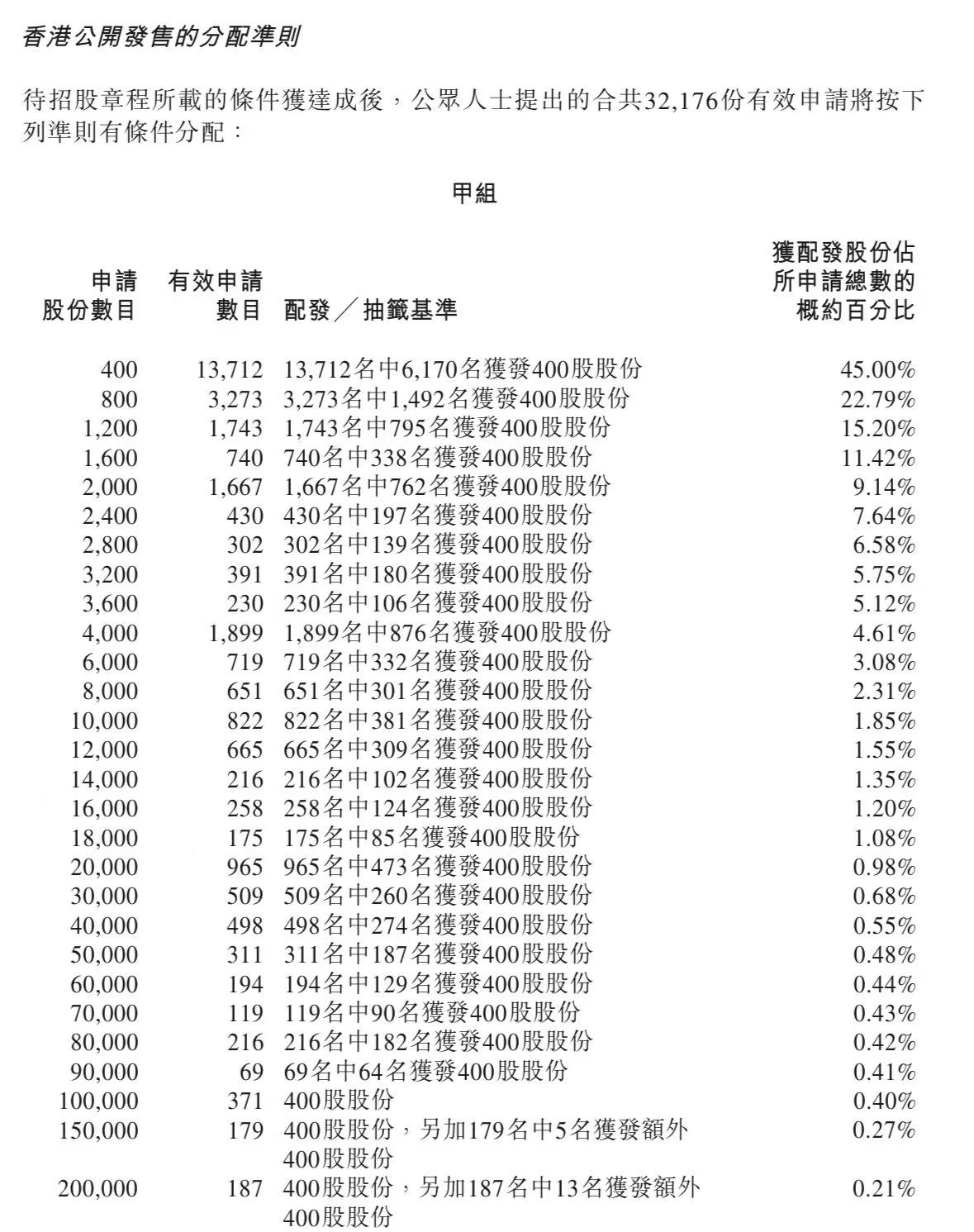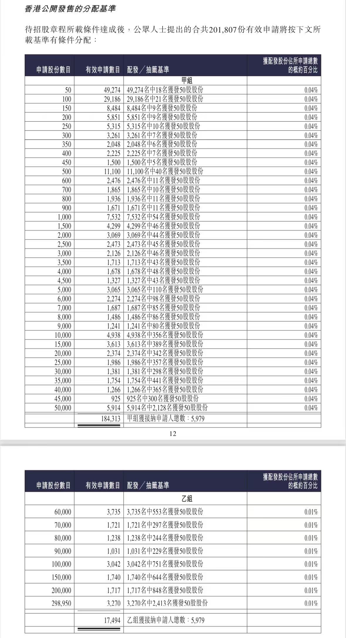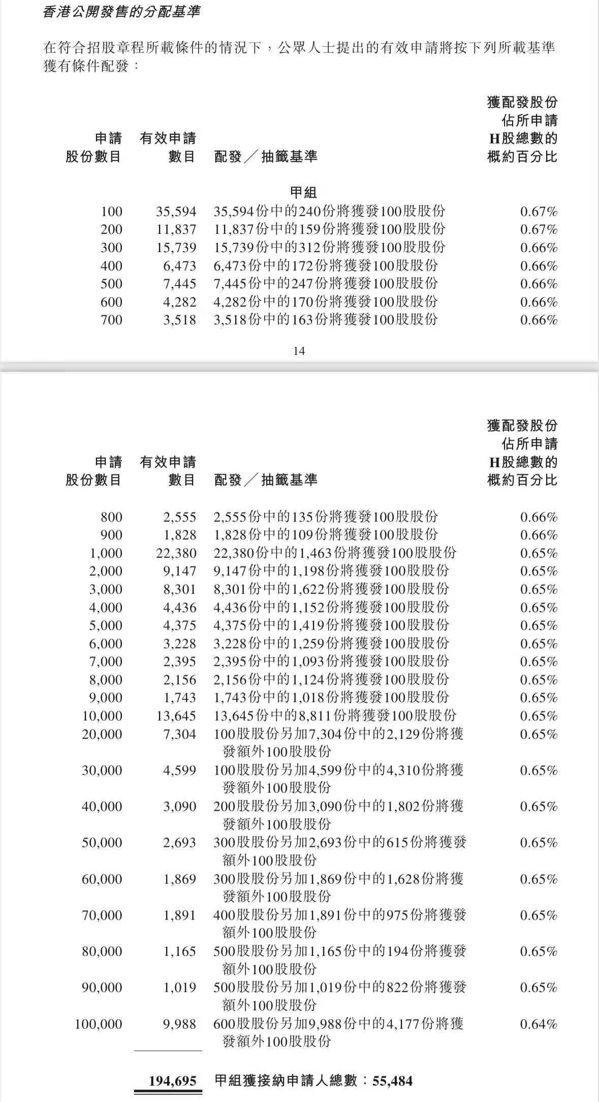 蜜雪集团打新认购人数264,992人,其中甲组226,091人,甲尾中签率70%;乙组38,901人,乙头中签率30%。