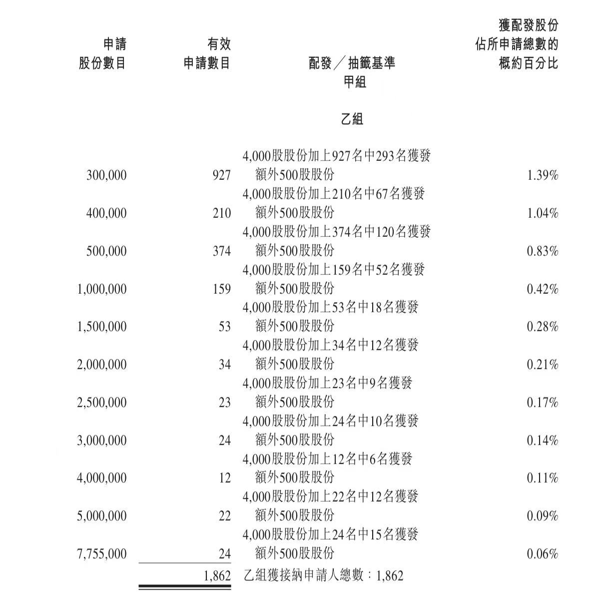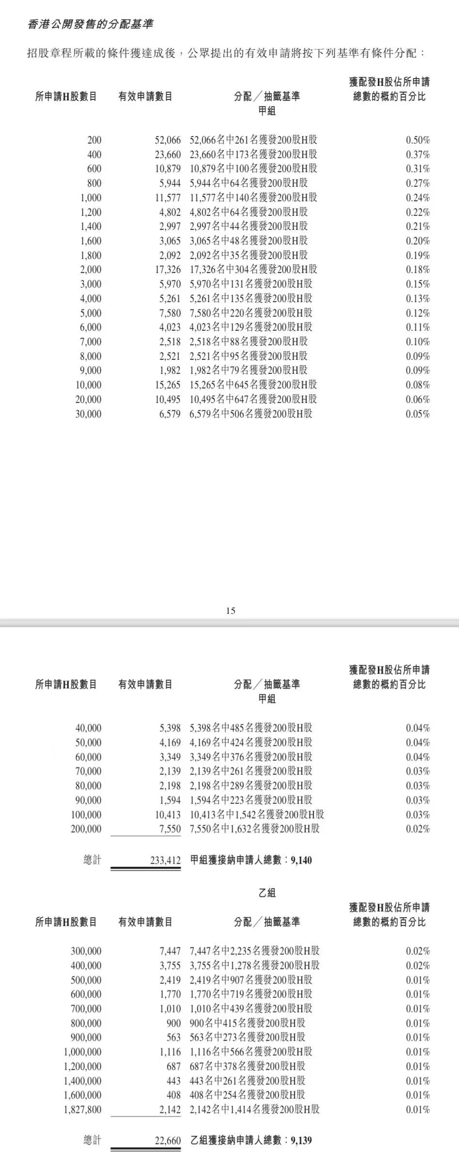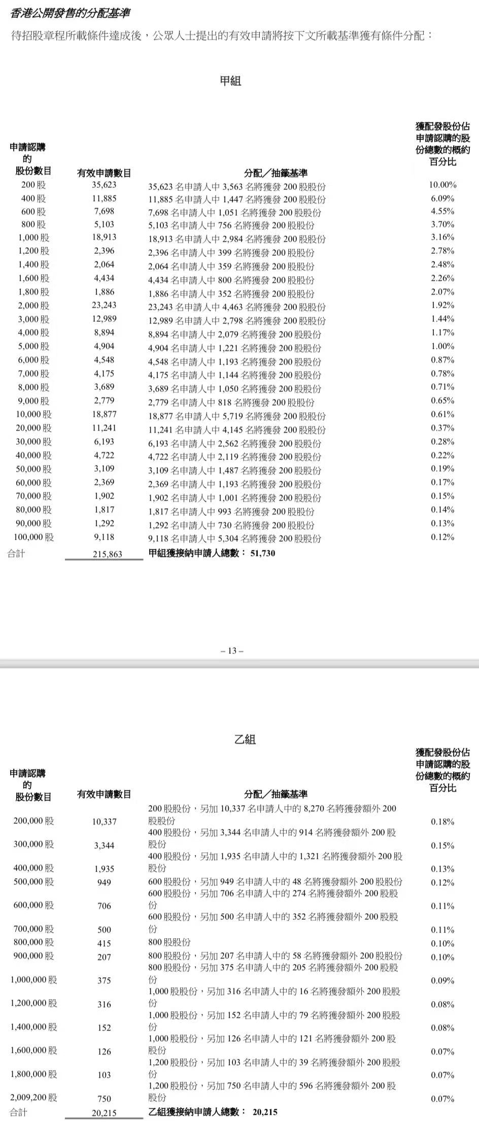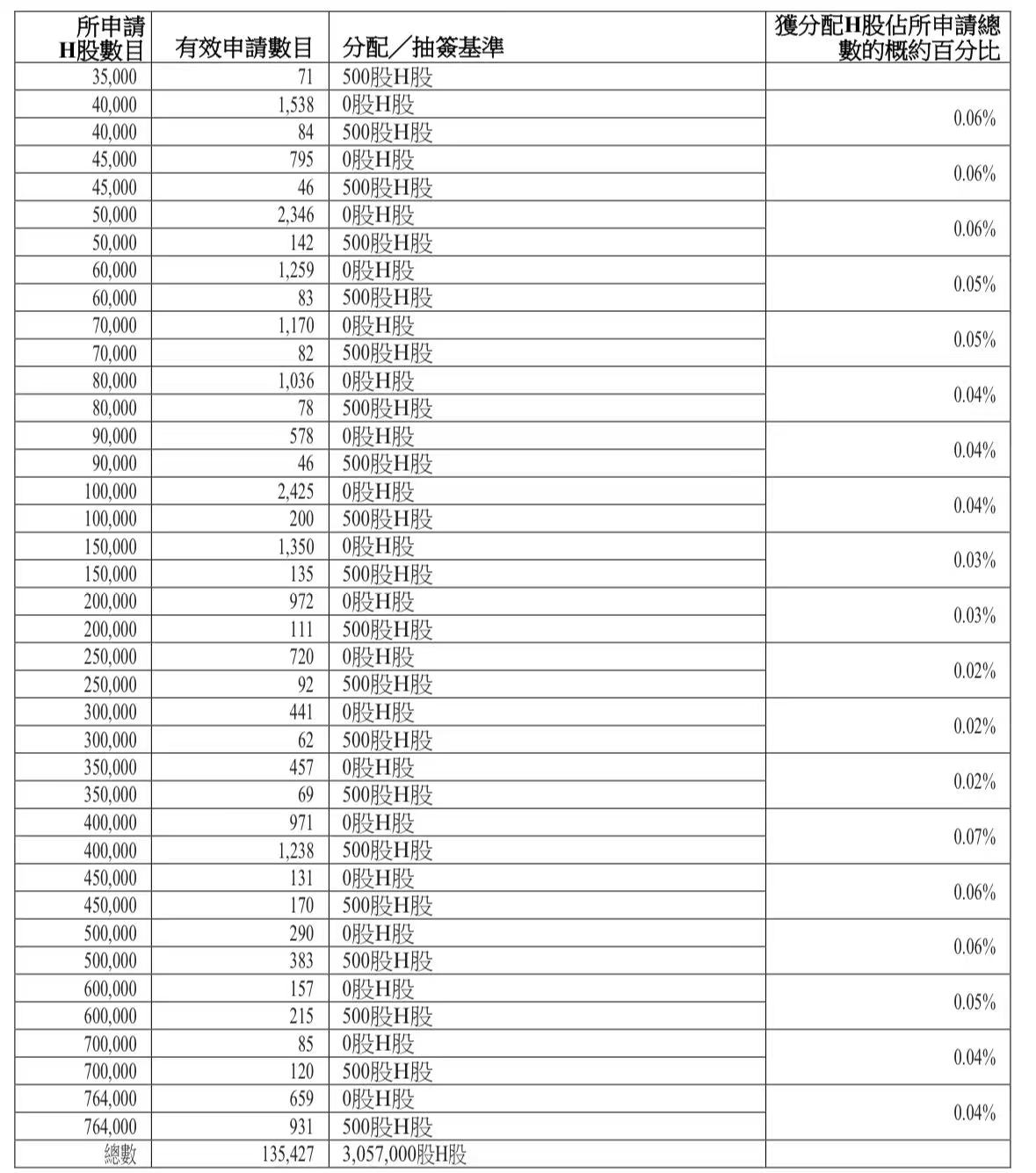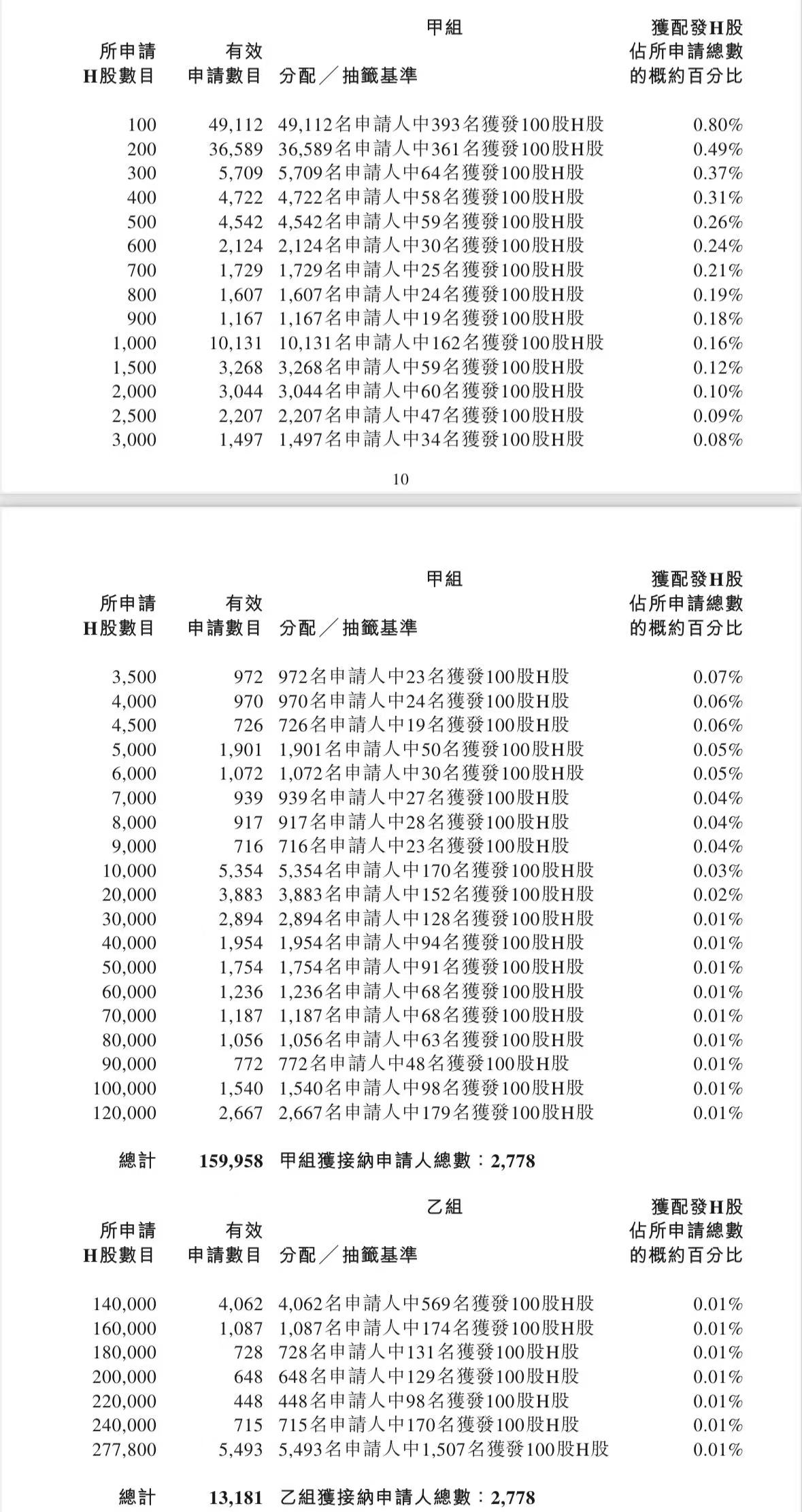 蜜雪集团打新认购人数264,992人,其中甲组226,091人,甲尾中签率70%;乙组38,901人,乙头中签率30%。
