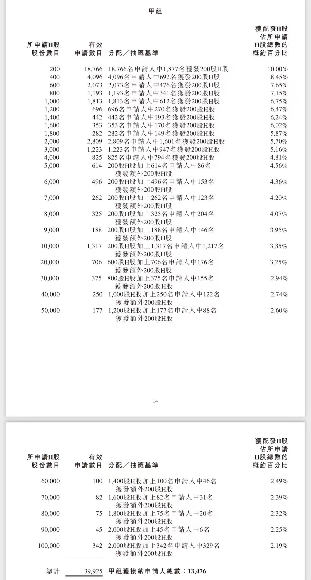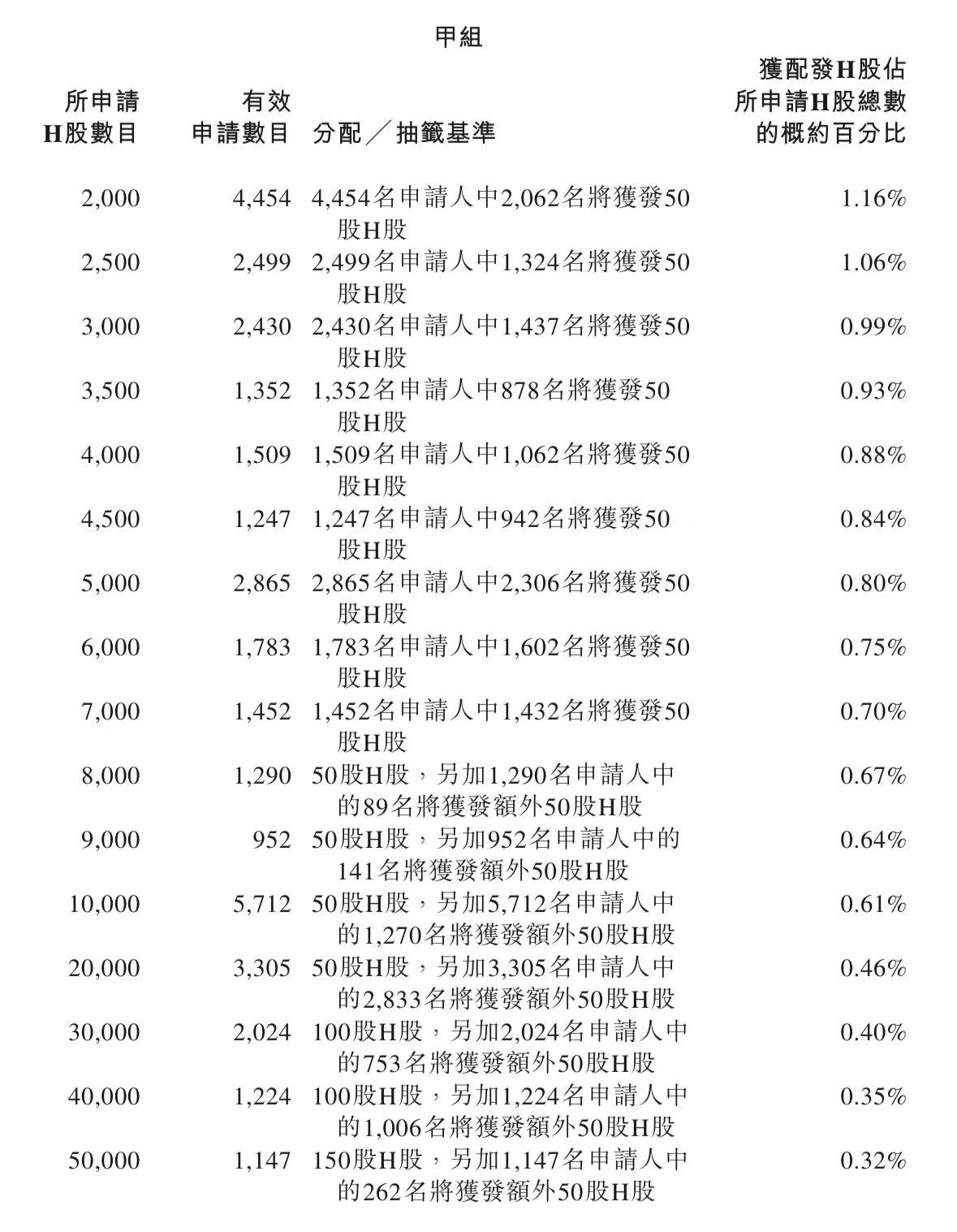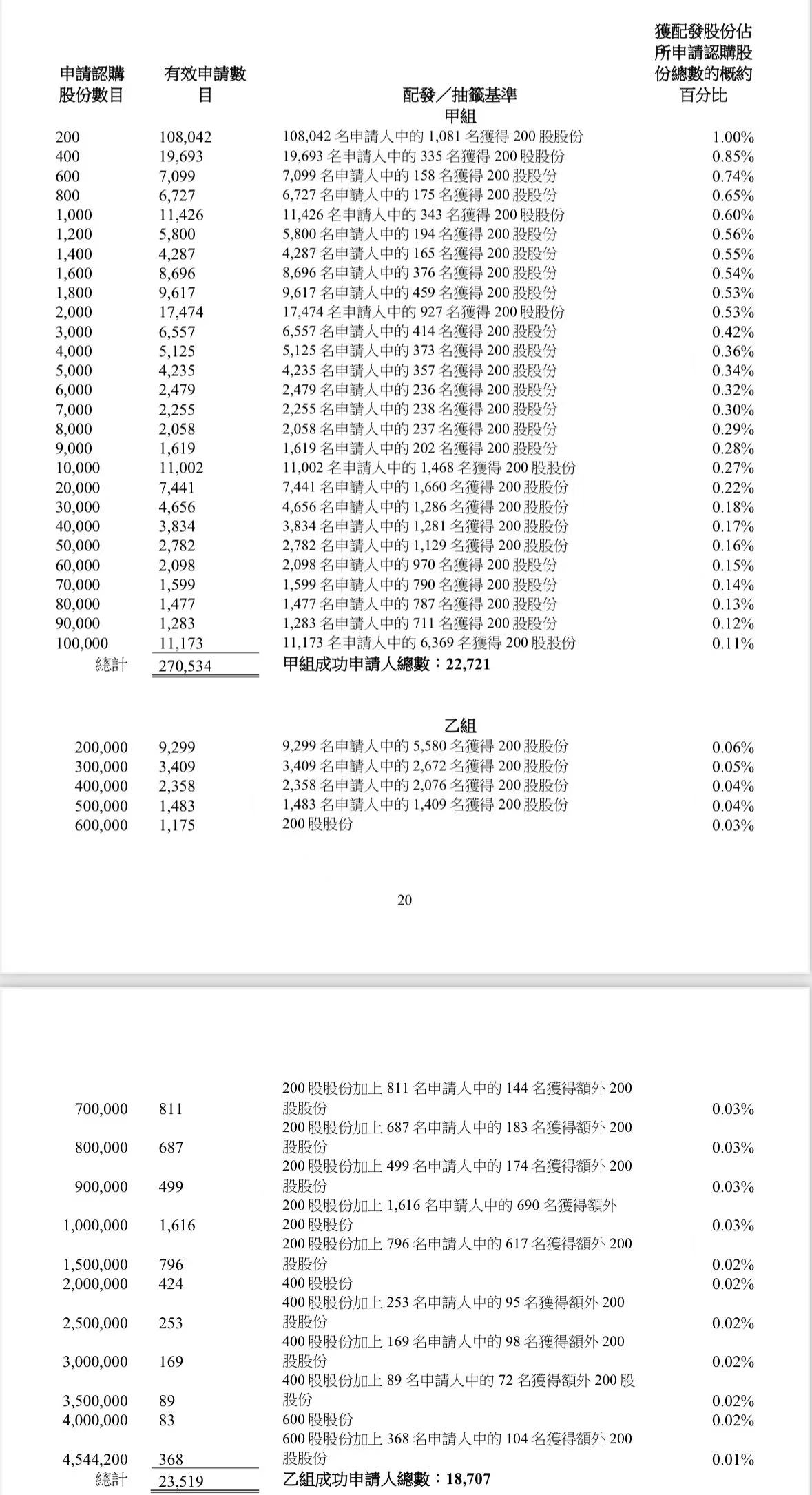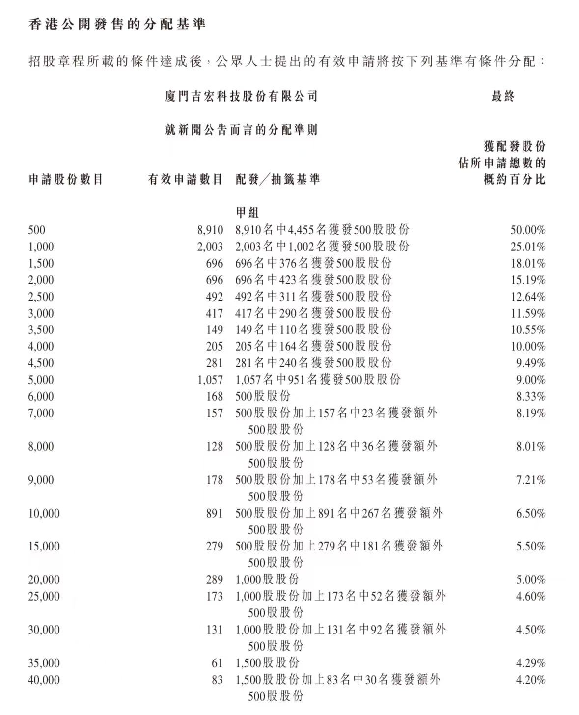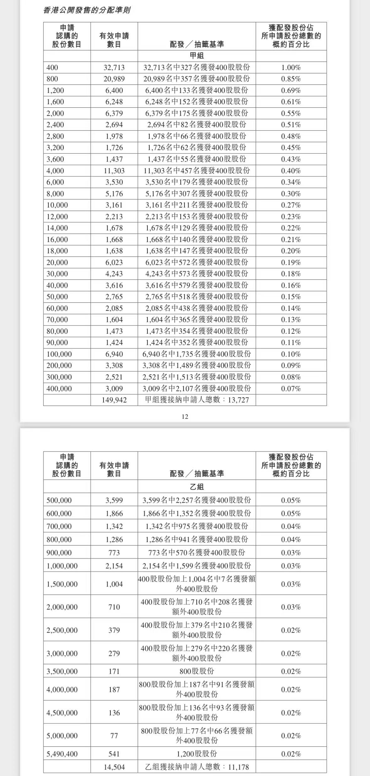 蜜雪集团打新认购人数264,992人,其中甲组226,091人,甲尾中签率70%;乙组38,901人,乙头中签率30%。