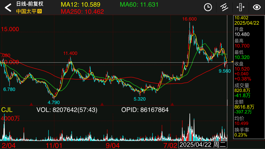 最近一直在看黄金股,赤峰黄金,山东黄金,招金黄金...黄金期货一直在牛市,也看到润哥十分看好黄金股,但基于安全性考虑,最后选择 517520.最近刚好回调到 250 均线附近,今天 1.18 买入仓位 8% 左右(另一个帐户)