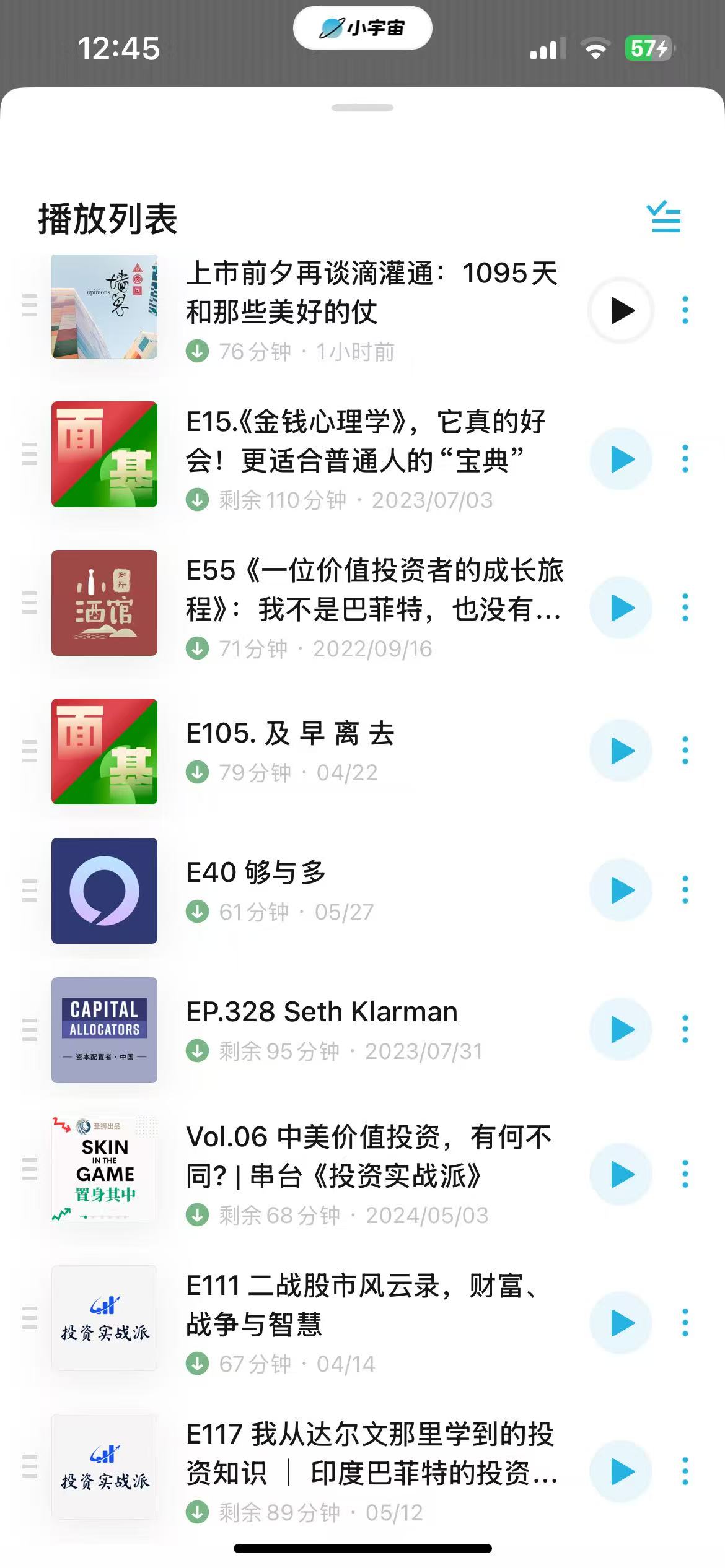 花了大半个月时间,终于把播客列表清了,大概是近百期。除了最上面那期是早上新加入的,最下面2期是准备读原书之后再来听,剩下的都是听过之后准备再次重温的。