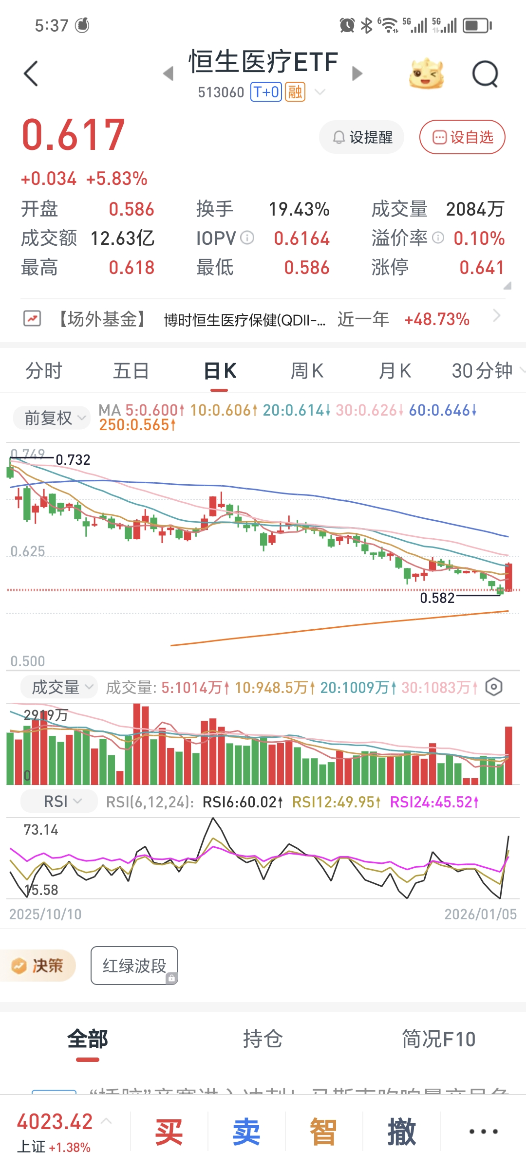 万万没想到今天帐户创了新高,原本只想三四月不亏太多就行,主要还是得益于昨天把20%的股票清仓换成了ETF,20%ETF贡献了帐户1.6%的涨幅,持仓的双低转债就有点难看,还有4个下跌的,算是踏空了大好行情!
