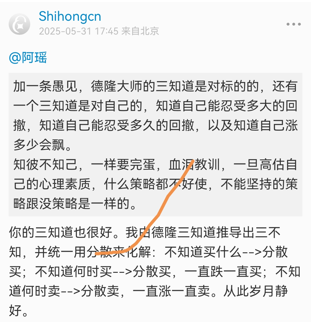 每一年,我的策略都会迭代,研究过定投,分享过技术分析,真正有价值的是策略思路的分享。如果一个人始终无法突破和成长,最大的束缚往往来自他的底层认知,本质上是见识还不够。底层认知,大多源于成长环境的塑造。要打破这种束缚,往往需要外力,也就是高人的点拨或者读书。