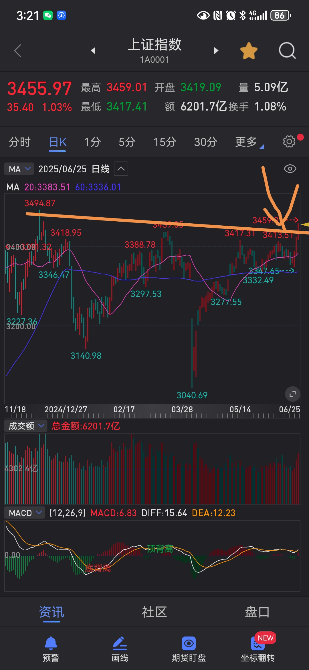 6. 不逃顶:一生只需暴富一次的真正敌人,不是错过行情,而是提前下场。在趋势面前一切技术分析都是渣渣,上涨趋势就是上涨回调再上涨,再回调再上涨,放量缩量再放量再缩量,金叉死叉再金叉再死叉,可能有压力但不知道是终结还是暂停,所以不能逃顶。