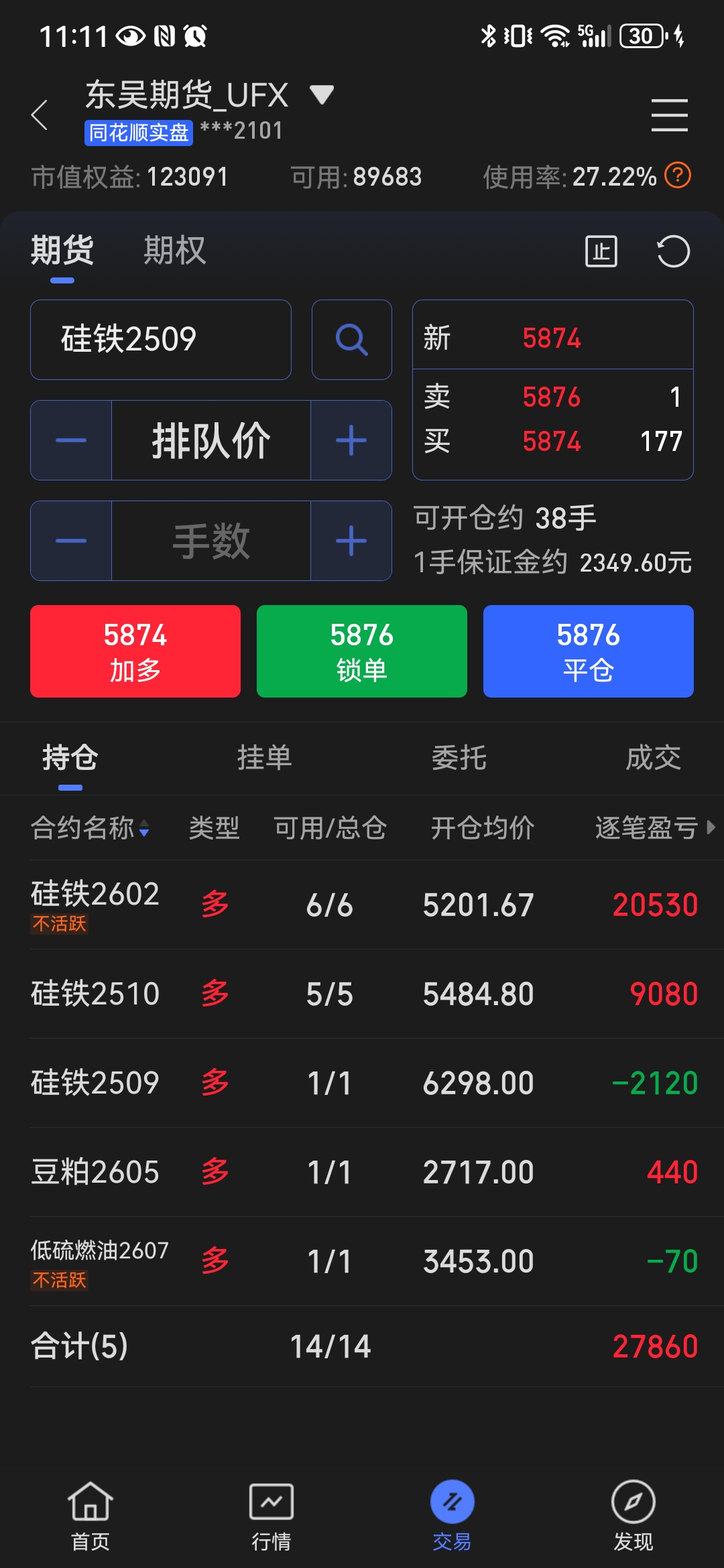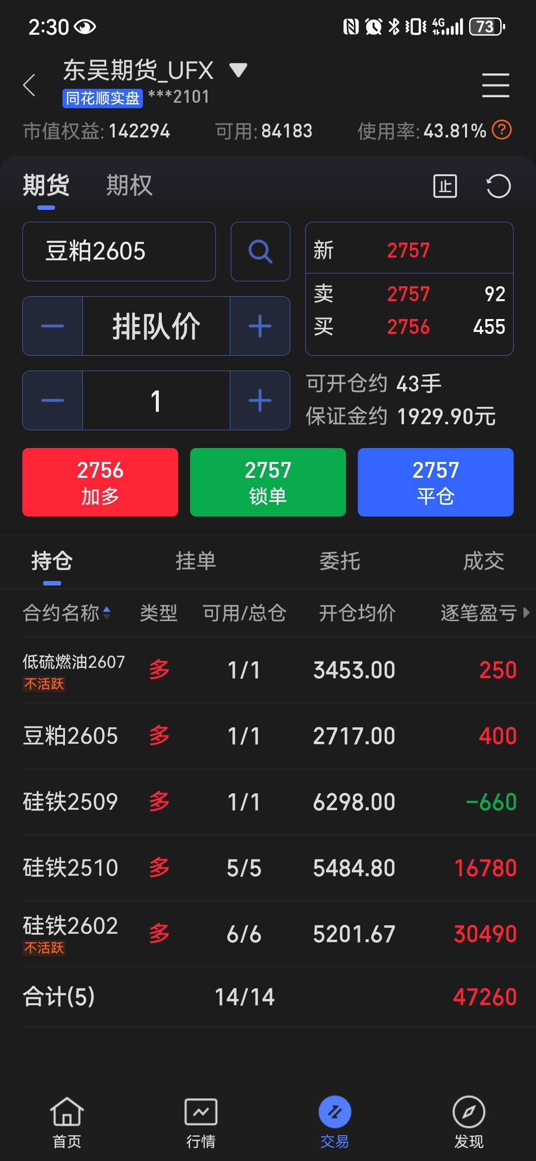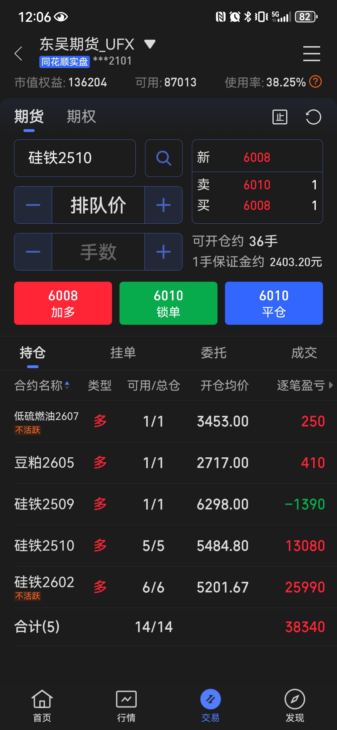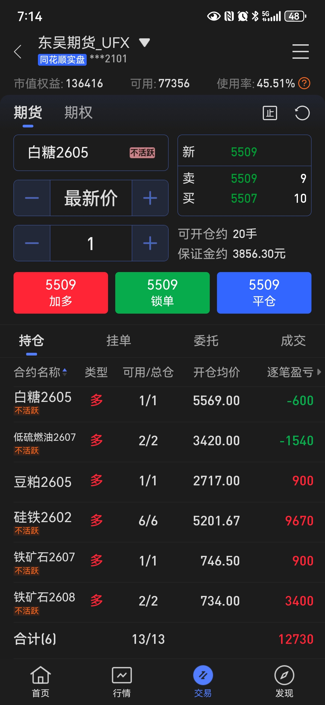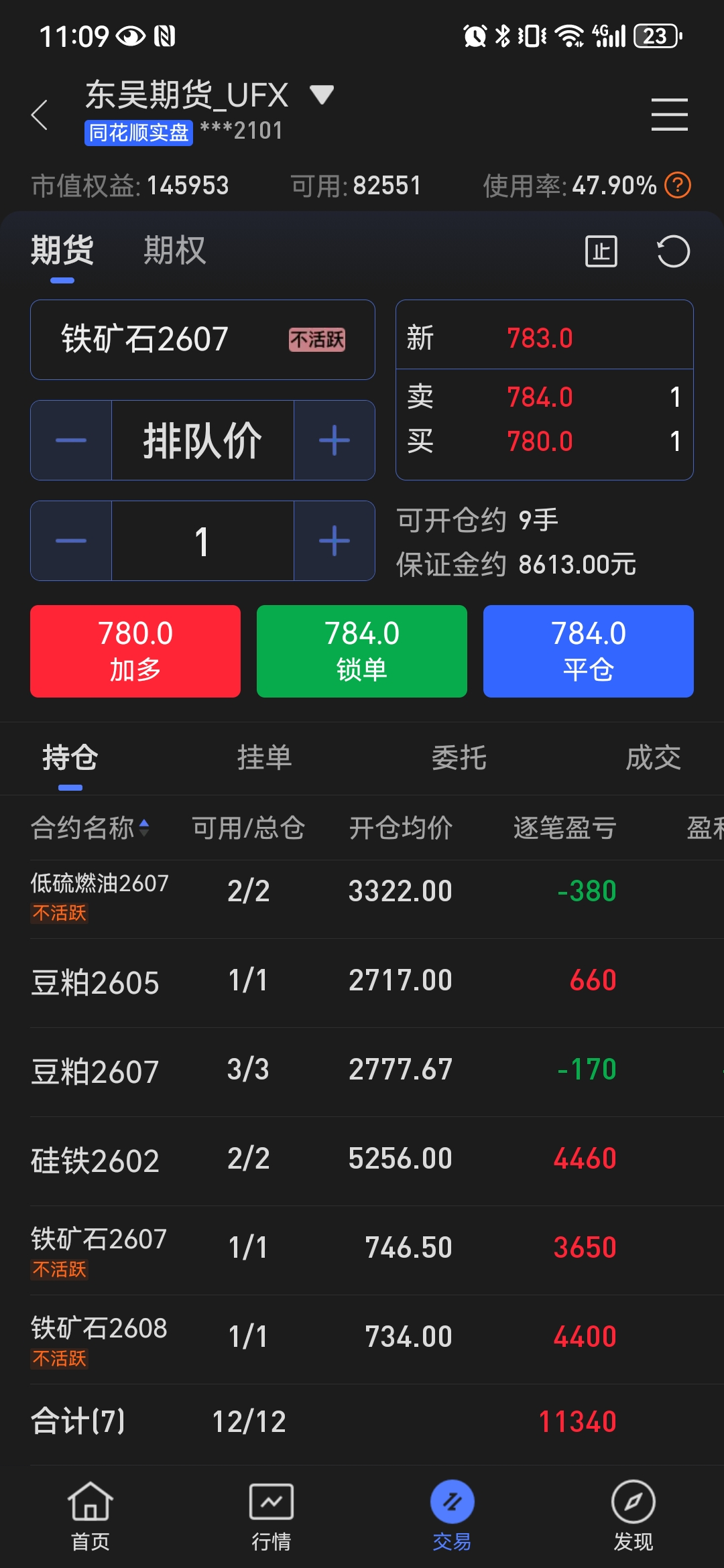在低位移仓换月时应该先买后卖,一手一手地移仓。你先买一手2606,如果价格上涨则趁机卖出2602,实现移仓换月;如果价格下跌,则相当于补仓一手硅铁,反正现在硅铁处于底部区域,多买一两手风险也不大。如果先卖,卖飞了就是在底部愚蠢地割肉了。