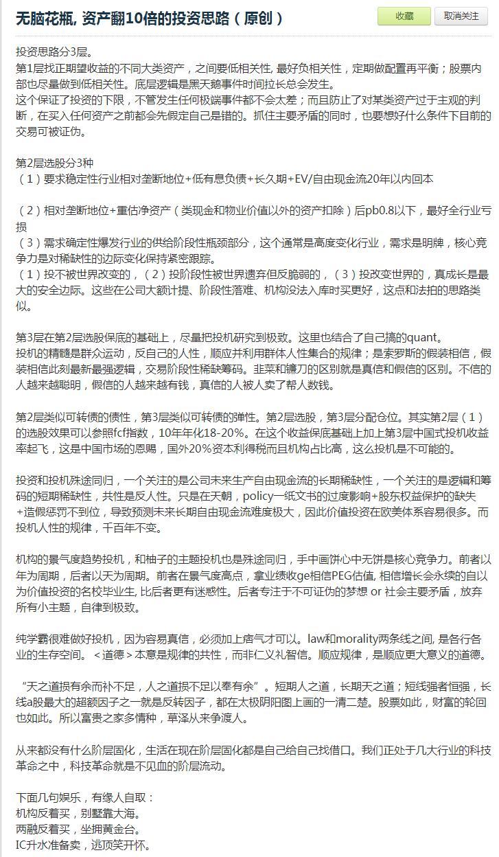 我这两年最推崇的是多元化、分散化、多策略、大类资产配置。投资就像软件升级,从1.0升级到2.0,你能说1.0没用吗?