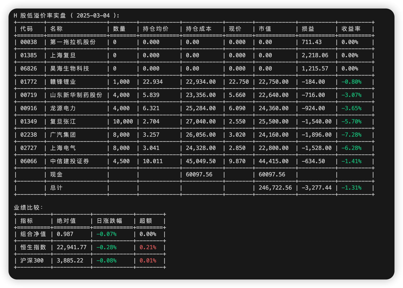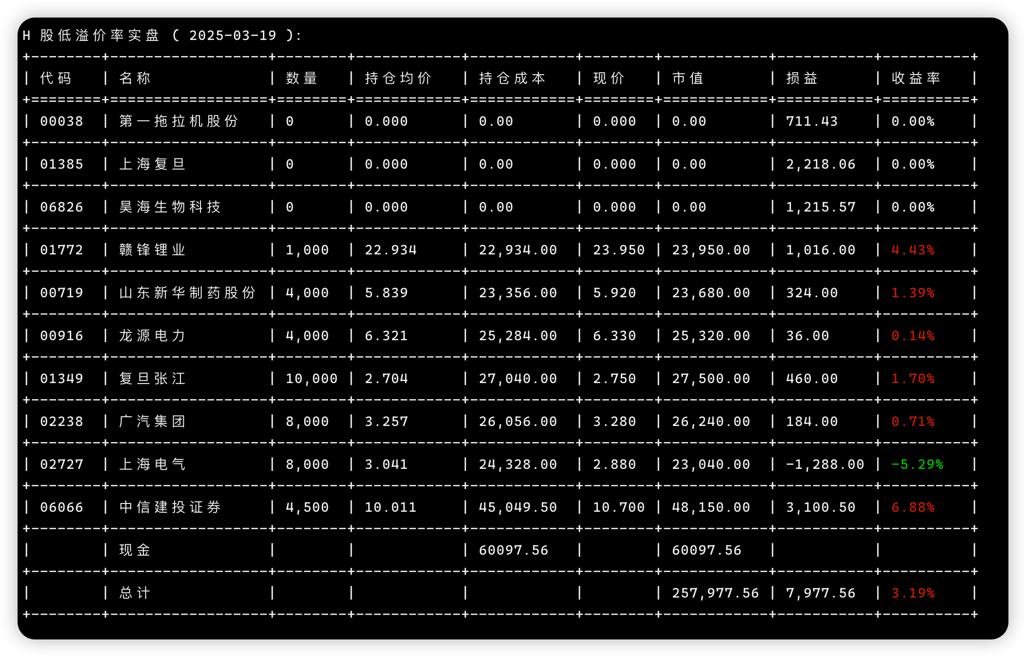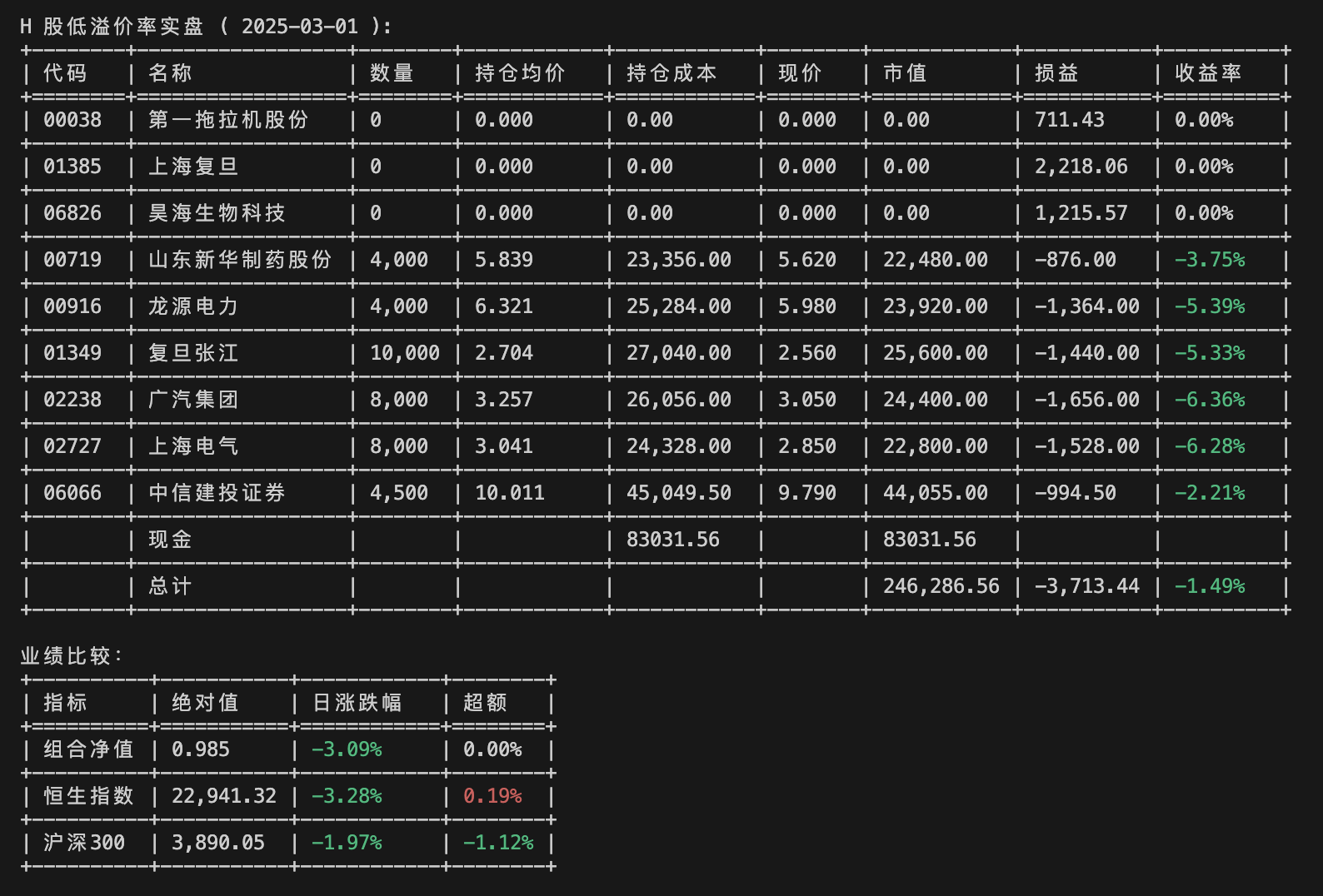 实践下来,单纯的低溢价因子并不是一个好策略,一是入场时机已经是后半场,二是港股的波动比较大,有些票流动性比较差,持仓体验不太好。微盈清盘了,再优化一下策略,等一个好时机再来。