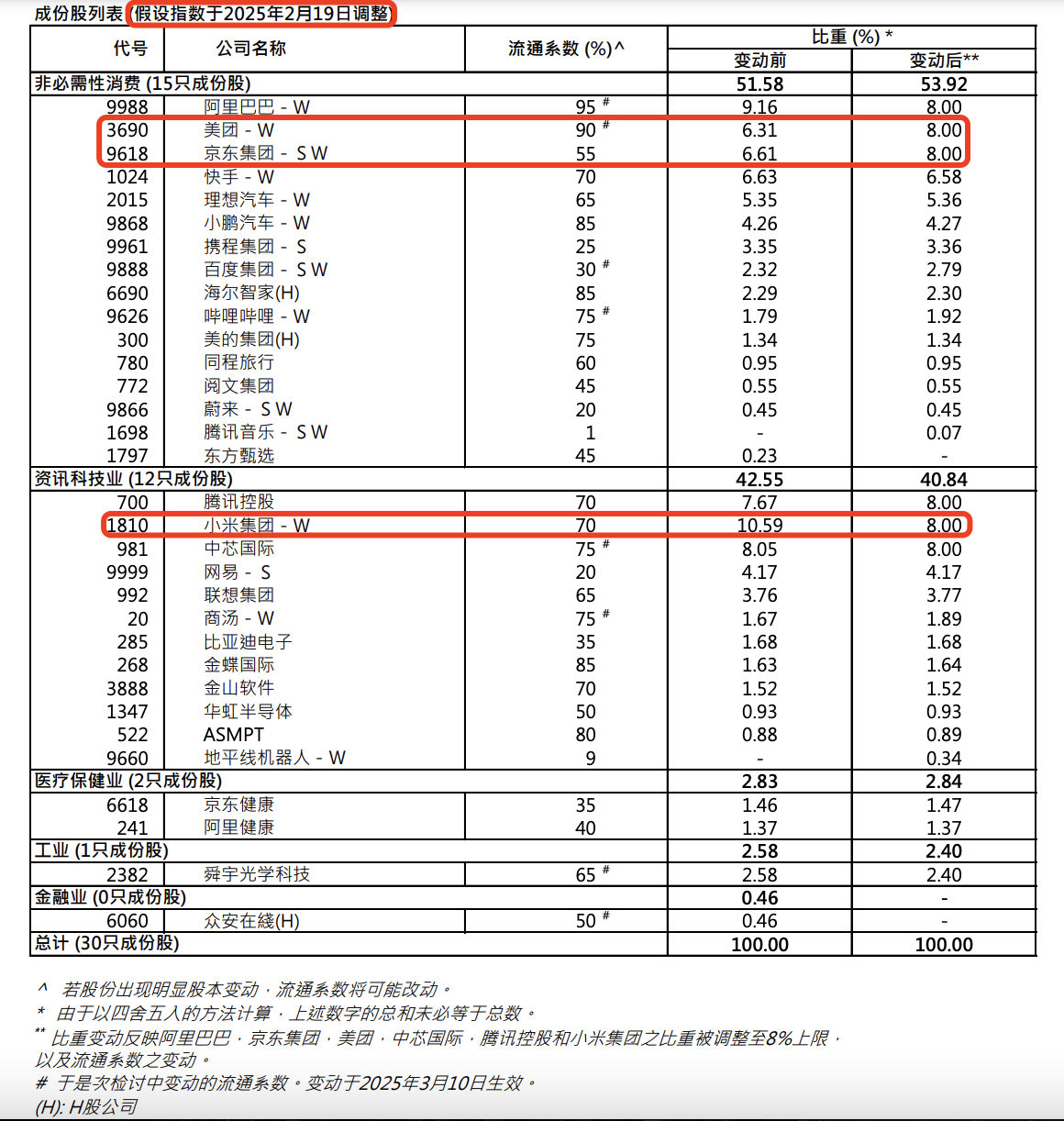 我思路是小米涨多了,并且一直也没正经调整过,一年涨了近5倍,单单一季度小米就上涨了60%+,叠加恒科调整成分股比例时会将超出8%的部分抛出,单小米超出部分就在60亿以上。小米平日交易额在150亿以下,60亿是相当大的抛压。既然大家知道小米面临抛售,为何不提前抛出等待恒科调仓落地再买回来,根据市场的反身性原理,我认为会加速自我实现的预言,还请指正