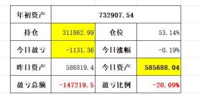 可转债轮动,每天记录账户盈利状况,本金732907.54,目前收益率-20.09%,年终目标20%